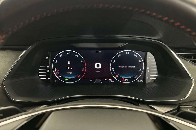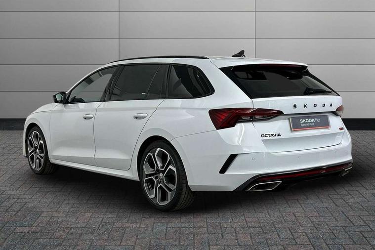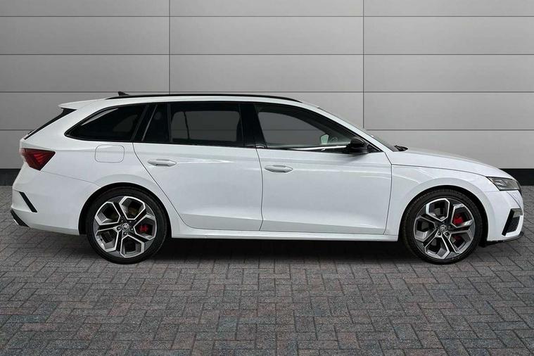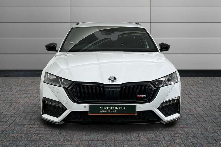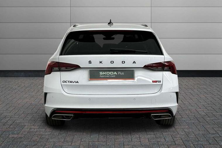 1x USB Type C port in rear view mirror (charging only), 2x USB Type C ports in rear of front centre armrest (charging only), Bluetooth system, Columbus satellite navigation with 10" touchscreen display, eCall emergency system, Front and rear parking sensors with manoeuvre assist, Front assist system, Progressive dynamic steering, Smartlink (includes android auto and mirrorlink), Speed limiter, Turn Assist, Virtual Cockpit - 10.25" digital display, Voice control system, Wireless SmartLink for Apple Car Play, Electronically controlled limited slip differntial, Front and rear stabilizers, 2x USB Type C ports (for charging and data transfer), 8 speakers, DAB Digital radio, Aero front windscreen wipers with intermittent function, Auto dimming rear view mirror, Black roof rails, Body colour door handles, Chrome exhaust tailpipes, Door sills with vRS logo, Electric front and rear windows, Exterior gloss black sports styling including front grille, side strip, window surrounds, door mirror and badging, Full LED Matrix headlights with AFS and cornering front fog lights, Headlight washers, Heated rear windscreen, High level third brake light, Ice scraper in fuel cap, LED daytime running lights, Rain and light sensors, Rear fog light on one side, Rear privacy glass, Rear side wing doors, Rear spoiler, Rear window wiper, 3 seat bench in 2nd row, 4 foldable roof handles, Aluminium pedals, Black headlining, Black microsuede padded dash panel with red contrast stitching, Chrome inner door handles, Front centre armrest, Front head restraints, Heated front seats, Illuminated air conditioned glovebox, Leather trimmed gearshift lever, Luggage compartment lighting with two side lamps, Mechanical rear seat release, Parcel shelf - rolling, Single front passenger seat, Sunglasses storage, Textile floor mat set, Three spoke leather sports multifunction steering wheel with paddles, Ticket holder, Umbrella in door panel, Unsplit rear bench seat and split folding backrest, LED interior light pack - Octavia, 3 point front/outer rear seatbelts+pre-tensioners, Alarm with interior monitoring, tilt sensor and back up horn, Automatic door unlocking in case of crash, Automatic fuel cut off in case of crash, Automatic warning lights in case of emergency braking, Curtain airbags and front side airbags, Driver and front passenger airbags, Drivers knee airbag, Electronic parking brake, Emergency call and proactive services, ESC including ABS, EBV, MSR, ASR, EDS, HBA, DSR, Front and rear disc brakes, Hill hold control, Hill start assist, ISOFIX on front passenger seat and outer rear seats, Manual rear child locks, Passenger airbag deactivate switch, Red brake calipers, Two tone horn, Tyre pressure monitor, Visual and acoustic seat belt reminder, Warning reflectors in front door, Door locks with immobiliser, Keyless entry and start/stop including rear doors, Remote central locking, Carbon optic decorative inserts, Gloss black air vent surrounds, 19" Altair anthracite alloy wheels,