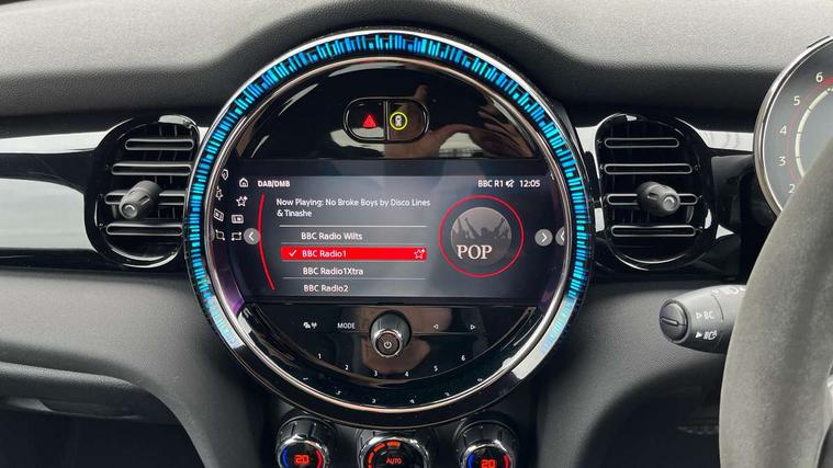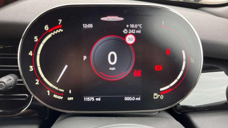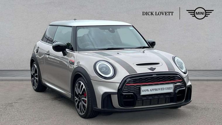 Apple CarPlay, Automatic start/stop function with brake energy recuperation, Compatible mobile phone bluetooth with audio streaming, Cruise control with brake assist, Electro-mechanical speed dependant steering assistance, Flexible car sharing preparation, Instrument cluster, MINI Driving Modes - centre toggle switch to control driving setting (sport, mid and green), Mini E-call, MINI TeleServices, On board computer, Rear park distance control, Service interval indicator, Double Vanos system, Eight speed steptronic sport transmission, with gearshift paddles, Fully variable valve control, High precision injection, Performance Control, 8.8" touchscreen with LED ring, FM tuner and DAB digital radio, 3rd brake light, Automatic headlight activation switch, Bonnet scoop, Dynamic brake lights, Electric front windows, Heated rear window, Heated windscreen washer jets, JCW Aerodynamic kit - Front and rear bumpers with sporty JCW styling and part-painted side sills with MINI John Cooper Works door sill finishers, John Cooper Works logo above an individual grille strut in Chilli Red, John Cooper Works rear spoiler, LED headlight with closed ring and daytime driving lights, Radiator grille piano black border with honeycomb structure in black matt, Rain sensor window wipers, Rear fog lights, Rear LED lights with union jack design, Rear window wiper, Side scuttle panel with integrated indicator, Side scuttle with MINI John Cooper Works logo in black high-gloss with red border, Sun/heat protection glass, Two central exhaust tailpipes with chrome finisher, White indicator lenses, 12V Accessory socket in centre console, 2 seat bench in 2nd row, 4 lashing eyes in luggage compartment, 60/40 split folding rear seat, Anthracite headliner including grab handles and clothes hooks, Carbon black colour line - Knee roll and door armrest, Chrome interior highlights, Cupholders, Front and rear isofix with front passenger airbag deactivation, Front floor mats in velour, Glove compartment, Height and length steering column adjustment, Interior lighting with 12 different colours across the dashboard, underneath door bezel with illuminated laser-engraved design on central display, JCW Sport seats with integrated headrests, adjustable thigh support and John Cooper Works logo, Leatherette gearshift lever and handbrake gaiters, LED reading lights, vanity mirror lights, front foot well light and spotlight on front seats, Manual air conditioning, Mechanical seat adjustment - forward/back & backrest for front seats and driver seat height adjust, Multifunction steering wheel, Passenger seat height adjuster, Rubberised stainless steel pedals, Single front passenger seat, Storage compartments in doors, Storage pocket on back of front seats, Sunvisors with vanity mirrors, Walknappa leather steering wheel with grey seam and John Cooper Works badge on Piano Black lower steering wheel spoke, Navigation pack without Apple Carplay - Mini Hatchback, Piano black exterior pack - JCW, 3 point seatbelts on all four seats, 4-piston fixed-calliper brakes front, 6 Airbags - front, side, head and seat belt tensioners, Anti-lock braking system (ABS), DSC - Dynamic Stability Control, Front and rear disc brakes, Red brake callipers with John Cooper Works logo, Single tone fanfare horn, Tyre pressure monitoring system, Alarm system with tilt sensor, monitoring doors, bonnet interior and tailgate, Electronic vehicle immobiliser, Start/stop toggle with keyless go, Tool kit,