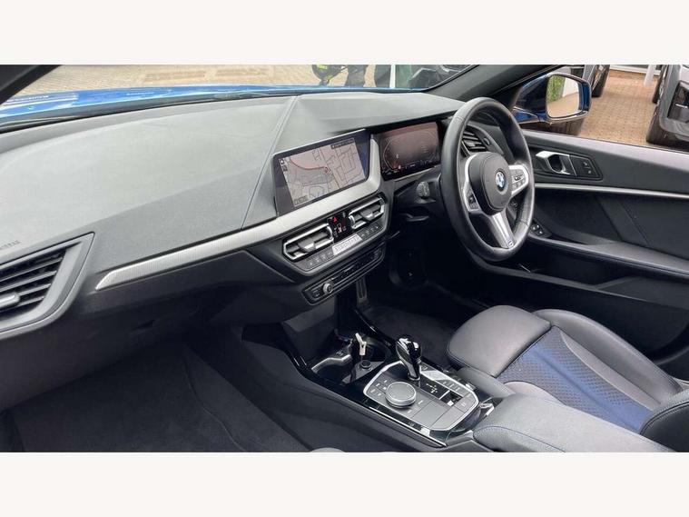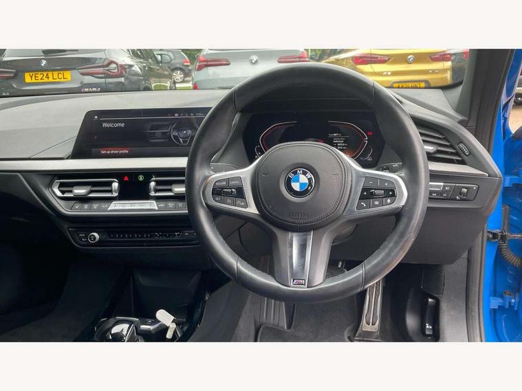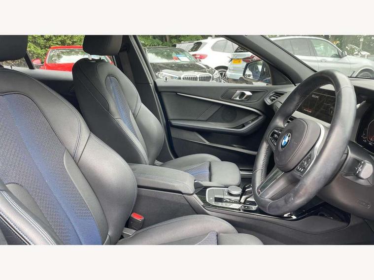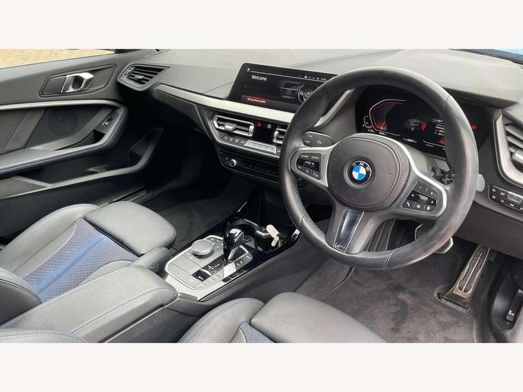 Active guard plus, Attentiveness assist, BMW ConnectedDrive online services, BMW Teleservices, Check Control warning system for monitoring of lights and door/luggage compartment open warning, Cruise control with speed limiter, Eco pro mode, Front axle single joint with specific axle kinematics to minimise drive influences on steering + provide increased rigidity agile driving behaviour, Integrated owners handbook, Lane departure warning system, Oil sensor for level and grade, On board computer, Optimum shift indicator, Personal Profile, Pull away assistant, Rigidly mounted rear subframe - Multi link construction with separate spring / damper configuration and excellent driving characteristics, Speed limit Info including no-overtaking indicator, Aluminium lightweight construction, Anti roll bar front and rear, Balancer shaft, Double VANOS twin scroll turbocharging system, Drive Performance Control, Electronic differential lock, High precision injection, M sport suspension, Petrol Particulate Filter, Twin tube gas filled shock absorbers with degressive characteristic curve, VALVETRONIC engine management, DAB Digital radio, Auto dimming rear view mirror, Automatic headlight beam throw control, Automatic windscreen wipers and automatic headlight, Body colour door handles, Body colour mirror caps, Body colour roof trims, Chrome 'M' logo side designation, Chrome exhaust twin tailpipes round 90mm in left, Chrome kidney grille frame with Satin Aluminium struts, Direction indicator side lights in exterior mirrors, Electrically adjustable exterior mirror with mirror adjustment switch on drivers armrest and aspheric on driver side, convex on passenger side, Fading support, Folding side mirrors with auto dimming/folding wing mirrors with auto dimming, Follow me home headlights, Front and rear bumper system with replaceable deformation elements, Front and rear electric windows with open and close fingertip control, anti trap facility and comfort closing, Front door sill finishers in black plastic with M designation in metallic look, Green tinted heat protection glazing, High gloss shadowline window frame, Recess cover mirror frames and B/C pillar embelisher trim, High level third brake light, Integrated front windscreen with washer jets, LED daytime running lights, LED eyebrow turn indicators, LED front fog lights, Lightweight engineering, Matt black air guide grilles, Matt black wheel arch trim, Model designation on electric bootlid, Nearside reverse light in rear light cluster, Preparation for high beam assistant, Rear fog lights, Rear side wing doors, Rear window wiper, Shark fin antenna, Trailer stabilisation logic, Visible VIN plate, Welcome lighting, 12V power socket in front centre console with blanking plug, 3 rear seat head restraints, 3 seat bench in 2nd row, 3 spoke sports leather steering wheel with black leather and stitching, pearl chrome decorative finish, specific M Badge, Anthracite headlining, Black boot net with lashing eyes, Cargo function on 2nd seat row, Child seat ISOFIX attachment for two outer rear seats and front passenger seat with anchorage points, Conditioned based service, Driver and front passenger backrest net on rear, Driver and front passenger seat heating, Driver side folding compartment in instrument panel, Folding rear clothes hook, Four grab handles integrated in roof lining, Front and rear door pockets with bottle holders, Front and rear side armrest integrated into door trim, Front armrest, Front sports seats, Glove compartment, Height adjustable front head restraints, Luggage compartment for bag hooks on left and right, foldable luggage compartment liner and four lashing eyelets, Manual adjust steering wheel, Multi-function controls for steering wheel, Single front passenger seat, Storage compartment in centre console, Storage compartment in luggage compartment, Stowage of the parcel shelf in luggage compartment trim, Sun visors with vanity mirrors and insert tab, Two front centre console cupholders, Two zone automatic air conditioning, Type C two USB ports in rear centre console, Velour floor mats, Additional interior lighting pack - 1 Series, BMW live cockpit professional pack- 1 Series, Connected pack professional - 1 Series, Interior lights pack - 1 Series, M Sport exterior styling aerodynamics pack - 1 Series, 2 tone horn, 3 point seatbelts on all seats, front pyrotechnic belt tensioners, stopper and belt force limiters, rear coded belt buckles, Airbags - Front driver/passenger, front and rear curtain head protection, front side, manual deactivation of front passenger airbag, Anti lock braking system (ABS) with brake assist, BMW emergency call, Brake drying, Braking readiness, Child proof locking system in rear door, City braking function, Comfort modes, Cornering brake control, Crash sensor activating of airbags, Unlocking doors, hazard warning lights, fuel cut off, interior lighting+activation of safety battery terminal clamp, Driver and front passenger seat belt security check, Dynamic stability control + (DSC+), Dynamic Traction Control - DTC, Electrically operated hand brake including automatic hold function, Front and rear disc brakes, Seatbelt warning, Side impact protection, Tyre pressure monitoring system, Warning triangle and first aid kit, Central locking switch for all doors, fuel filler cap and luggage compartment, Deadlocking function system to all doors, Drive away locking system on all doors and luggage compartment with de-activated in iDrive settings, Locking wheel bolts, Remote control with integrated key with High-gloss Black inlay and M designation and 1 button for open/ close lock, window, open luggage compartment, Start/stop button illuminated in centre console with keyless engine start and auto start stop deactivation button, Thatcham Cat.1 alarm and immobiliser, Wheel slip limitation close to the actuator (ARB), Contrast stitching on instrument panel, 18" Burnished M double spoke bi-colour alloy wheels finished in orbit grey - styl