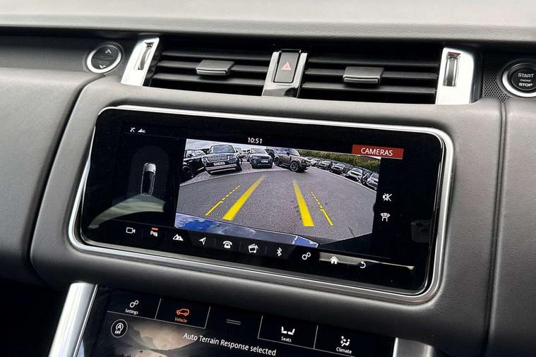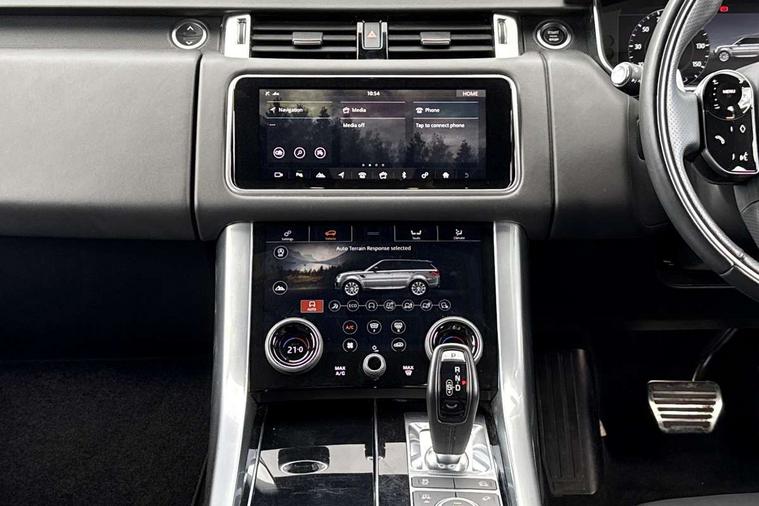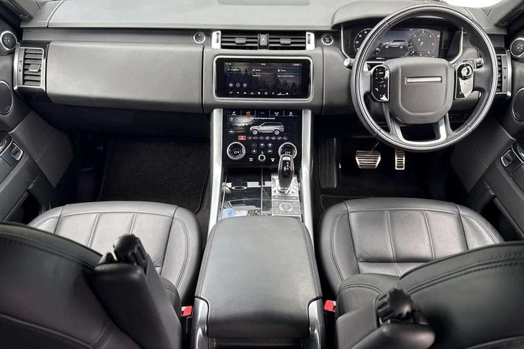 All Terrain Info Centre, Android Auto, Apple car play, Bluetooth connectivity, Electric power assisted steering (EPAS), Incontrol apps in vehicle touchscreen, Interactive Driver display instrument cluster, Mist sensor, Navigation pro system with 10" touch screen, app interface and media storage, Pro services and wifi hotspot, Push button start, Remote premium - Upgraded Incontrol remote app including remote climate control (engine dependent), remote lock + Unlock and remote beep + flash, TFT Virtual Instrument Panel, Touch pro duo system, Trip computer, Adaptive dynamics, All terrain progress control, Electronic active differential with brake torque vectoring, Electronic air suspension with dynamic response (active roll control), Gradient release control (GRC), Terrain Response 2 with dynamic program, Twin speed transfer box, Bluetooth audio streaming, DAB Radio (Digital Audio Broadcasting), Incontrol protect - SOS emergency call with automatic collision detection, optimised assistance call and Incontrol remote app essential, USB/aux input socket, Acoustic front and toughened rear side glass, Acoustic laminated front windows, Adaptive brake lights, Auto dimming interior rear view mirror, Automatic headlights, Body coloured side sills and bumpers corners, Centre high mounted stop light, Electric windows with one touch open/close and anti trap, Electrical towing preparation, Engine cover, Follow me home lighting, Front and rear recovery eyes, Front fog lights, Headlight power wash, Heated rear window, Heated windscreen includes heated washer jets, Illuminated metal treadplates with brand name script, LED rear lamps, Privacy glass (Tinted glass rear of B pillar), Rain sensing windscreen wipers, Rear fog lights, Rear side wing doors, Rear wash/wipe, Remote window closing, Side repeater indicators in mirror, Sport Badge in black, Standard bonnet, Trailer stability assist, Twin bright tailpipes, 2 way active front head restraints, 2 way rear head restraints, 3 seat bench in 2nd row, Auto air recirculation, Bright metal foot pedals, Centre console with armrest, Climate control memory, Customer configurable single point entry, Driver's footrest, Extended leather upgrade includes door top rolls and leather instrument panel mid section, Front and rear cupholders, Front door storage space, Front map lights, Front seat back map pockets, Front stowage pocket, Front/rear passenger grab handles, Heated steering wheel, Isofix child seat preparation, Leather steering wheel with Atlas inserts, Loadspace light, Loadspace mounting provisions, Lockable glovebox, Multifunction steering wheel, Perforated Windsor leather upholstery, Pollen filter, Power socket, Reach/rake electric adjustable steering column + entry/exit tilt away, Rear centre armrest, Rear ISOFIX, Roller blind loadspace cover, Satin chrome gearshift paddles, Single front passenger seat, Sports pedals, Three 12V accessory power outlets, Black Exterior pack - Range Rover Sport Dynamic, Smartphone pack - Range Rover Sport, 3 point seatbelts on all seats, Anti-lock braking system (ABS), Brake pre-fill technology, Cornering brake control (CBC), Curtain airbags, Customer configurable autolock, DSC - Dynamic Stability Control, Dual stage driver/passenger airbags, EBD - Electronic brakeforce distribution, Electric parking brake, Electronic traction control, Emergency braking includes city, urban AEB and pedestrian, Front seatbelt pretensioners, Gradient acceleration control, Grey anodised brake calipers, Height adjustable front seatbelts, Hill descent control, Hill launch assist, Low traction launch, Passenger seat occupant detector with front airbags, Power operated child locks, Roll stability control, Seatbelt warning, TPMS (Tyre pressure monitoring system), Immobiliser, Intrusion sensor, Keyless entry, Locking wheel nuts, Perimetric and volumetric anti theft alarm, Remote locking, Grand black veneer,