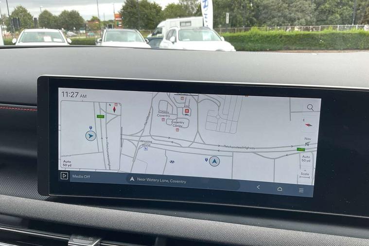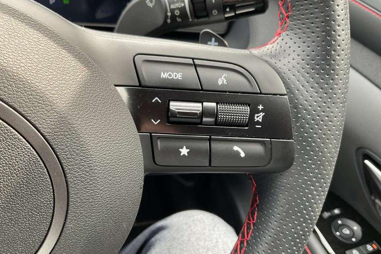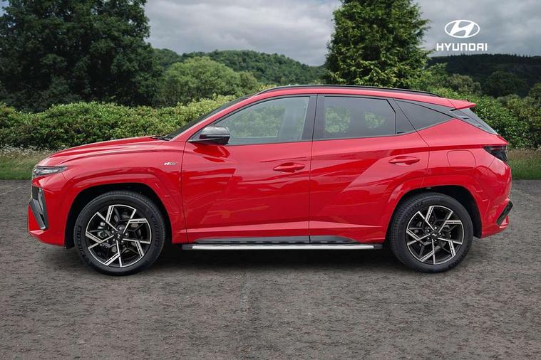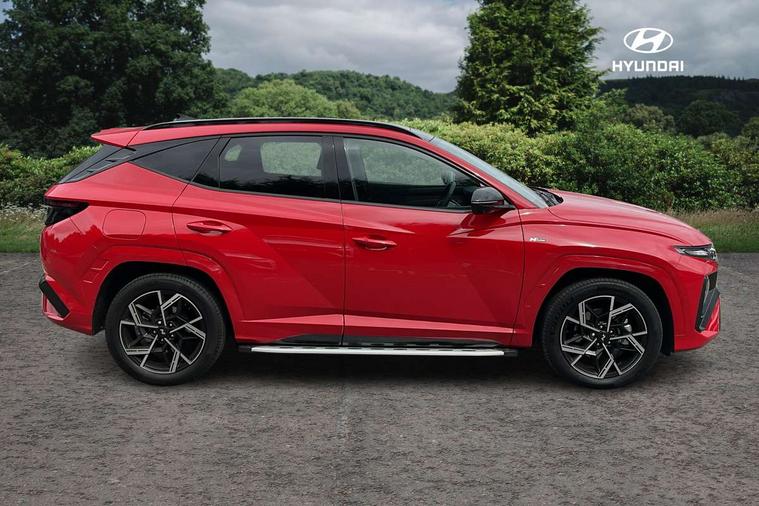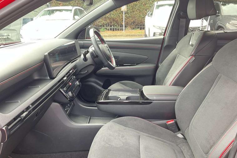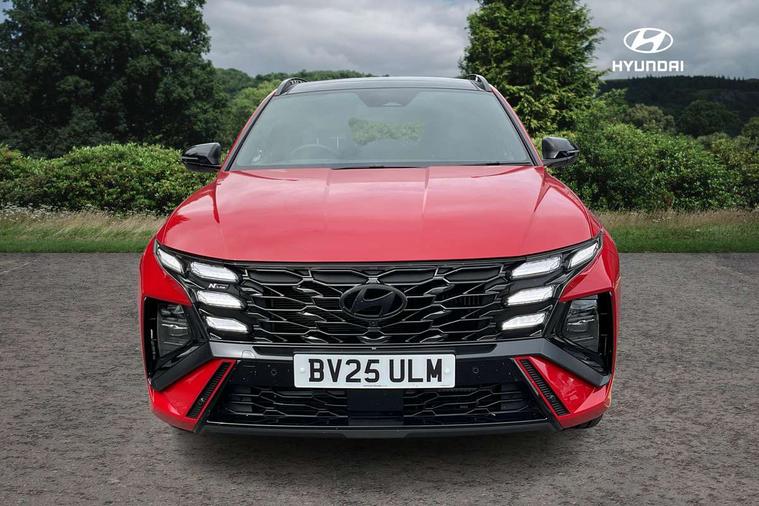 12.3" LCD display with driver's supervision instrument cluster, 12.3" widescreen navigation with bluelink and mapcare, Blind spot view monitor, Bluetooth system, Cruise control - smart adaptive speed control with stop and go function, Digital clock, Drive mode selector, Driver attention warning, E-call, Emergency stop signalling system, Forward Collision Avoidance Assist (FCA) - Car, Pedestrian and Cycle, Forward Collision Avoidance Assist Junction Turning (FCAJX), Front and rear parking sensors, Front, rear and side parking distance warning, Head up Display, Highway Driving Assist (HDA), Hyundai road side assistance, Intelligent speed limit assist, Lane follow assist, Lane keep assist, Over the air updates(OTA), Parking collision avoidance assist (PCA), PAS, Rear camera and guidance parking system, Rev counter, Smart power tailgate, Surround view monitor, Tailgate open warning light, Trip computer, Trip odometer, Voice recognition, Water temperature gauge, Windscreen washer fluid sensor and warning indicator, Wireless Apple CarPlay/Android Auto, Wireless phone charging pad, Charging cable - 7 pin type 2, Charging cable - Emergency 3 pin connector mode 2 (ICCB), 2 front and 2 rear USB-C ports, DAB Digital radio, Krell premium audio system with 8 speakers and subwoofer, Steering wheel mounted audio/phone controls, Adjustable intermittent front windscreen wipers with aero wiper blade, Auto dimming rear view mirror, Automatic defog system, Automatic headlights with dusk sensor, Automatic windscreen wipers with rain sensor, Body colour bumpers, Body colour door mirrors with integrated indicators, Body colour exterior door handles, Body coloured wheel arches, Electric tilt/slide panoramic sunroof, Electrically adjustable, heated and power folding door mirrors, Follow me home headlights, Front and rear electric windows with anti-trap mechanism and one touch control, Front fog lights, Glossy black bumper mouldings, LED 3rd brake light, LED daytime running lights, LED rear lights, Matrix LED headlights, Positioning Lights - LED, Privacy glass - Rear windows and tailgate, Rear side wing doors, Rear wash/wipe with intermittent wipe setting, Roof rails, Soft touch rear door paneling, Tinted glass with windscreen shade band, Trailer stability assist, 12V power outlets in front console and luggage compartment, 3 seat bench in 2nd row, 40/20/40 split folding rear seat, 64 colours interior ambient lighting, Adjustable head restraints (Up and down), Cupholders in rear armrest, Door courtesy lights, Driver and passenger sunvisors with illuminated LED vanity mirrors, Driver's seat electric adjustments, Front and rear door pockets, Front armrest with storage box, Front centre console and door bottle holders, Front passenger's seat electric adjustments, Heated front seats, Heated rear seats, Heated steering wheel, Height/reach adjustable steering column, Illuminated/air conditioned glove compartment, ISOFIX child seat anchorage points attached on outer rear seats, Leather wrapped steering wheel and gear knob, LED interior lighting, Luggage compartment lighting, Luggage cover, Luggage hooks, Luggage net, Map and reading lights, Metal pedals, N Line Leather/faux textile suede upholstery, Rear seat remote folding function, Rear side window sunblind, Reclining rear seats, Retractable load cover, Single front passenger seat, Sunglasses holder, Three zone climate control, Touch sensitive climate controls with temperature dials, TUCSON branded metal door scuff plate, Underfloor boot compartment, Ventilated front seats, N Line design package - Tucson, N Line interior design package - Tucson, Trailer wiring package - Tucson, 3x3 point rear seatbelts, Active bonnet, Airbag - Front, front side, curtain and centre front airbags, Anti-lock brake system (ABS), Brake assist function, Childproof rear door locks, Curtain airbag roll over sensor, Downhill brake control, Electric parking brake, Electronic stability control, Front and rear seatbelt reminder, Front passenger airbag deactivation switch, Front seatbelt pretensioners, Hill start assist control (HAC), Multi-Collision braking, Outer rear seatbelt height adjustment, Seatbelt height adjustment for front seats, Traction control, Tyre pressure monitoring system with individual tyre pressure display - TPMS, Vehicle stability management, Deadlocks, Immobiliser, Locking wheel nuts, Remote control central locking, Smart key with keyless entry and engine start/stop button, Speed sensitive auto door locking, Thatcham category 1 alarm, 19" Alloy wheels, Tyre repair kit,