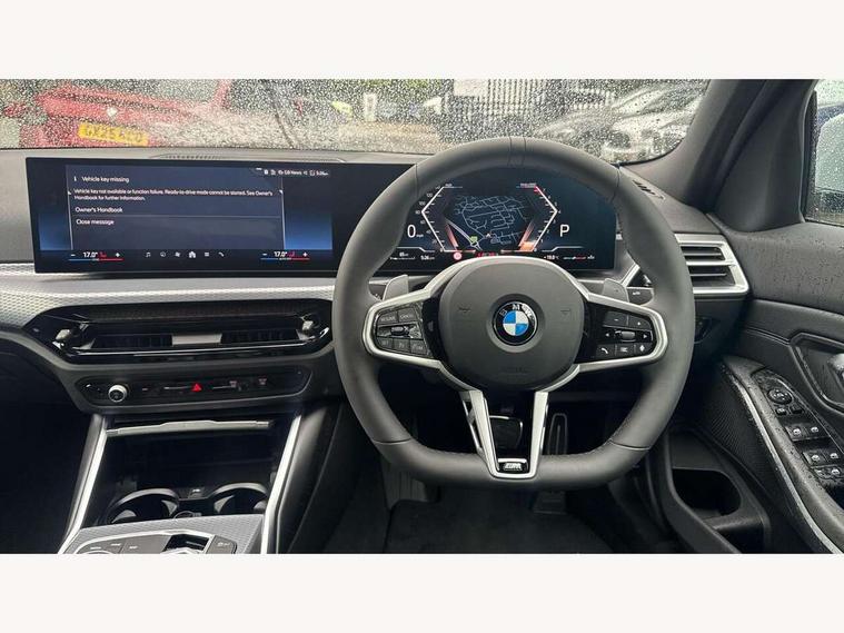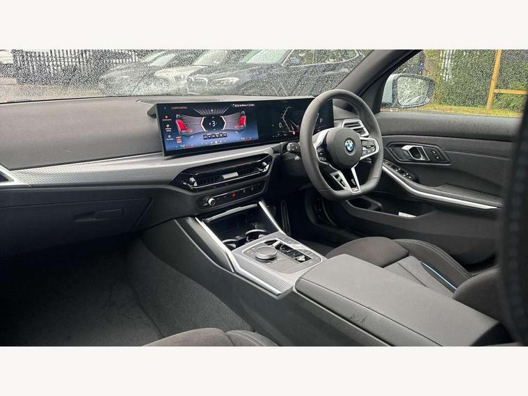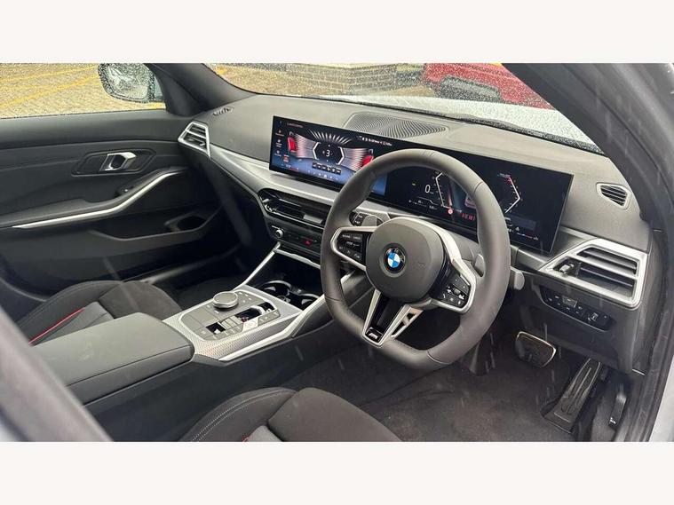 Active guard plus, Attentiveness assist, Automatic Start/stop button, Bluetooth Wi-Fi interface, BMW iDrive, BMW Teleservices, ConnectedDrive Services - last state call, Live cockpit plus with Navigation + 12.3" instrument display + 14.9" display, Intelligent voice assist, 2 USB, 4G LTE connect, Oil sensor for level and grade, Personal e-SIM, Shifting point display, Variable sport steering, Double joint spring strut front axle, Fuel tank breather system, Steptronic Sport automatic transmission with steering wheel mounted gearshift paddles launch control and xtreme drive lever control, DAB tuner, 3rd brake light, Auto dimming rear view mirror, Automatic headlight beam throw control with load dependent regulating reaction, dynamic compensation of braking dive and acceleration squat, Bi-LED Low and high beam headlights, BMW emblem, engine compartment lid and tailgate, Body colour roof fin, Door sill strips, Electric windows - front and rear, with open/close fingertip control, anti-trap facility and comfort closing, Fading support, Folding wing mirror with auto dimming, Follow me home headlight function, Front and rear bumper system with replaceable deformation elements, Front apron plastic in body colour, Fuel filler flap - right rear in body colour, Heat protection glazing on front windows and windscreen, Heated washer jets, High gloss chrome kidney frame with high gloss black kidney struts, LED daytime running lights, LED rear lights, LED turn indicator, Licence plate panel integrated into front bumper and tailgate, M high gloss shadow line exterior trim, Matt black B-pillar finsher, Matt black window recess cover, Model designation on right side of tailgate, One piece front bumper cover including towing eye cover in body colour, Rain sensor with automatic headlight activation, Rear boot, Rear side wing doors, Reversing lights, Side frame decorative moulding black matt, Trailer stabilisation logic, Visible exhaust tailpipe finisher, Welcome lights in interior and door handle area, 12V power socket in front storage compartment, 2 front cupholder in centre console with clamping elements and matt black inlay, 3 seat bench in 2nd row, 3 spoke M Sport multifunction flat bottom leather steering wheel, 3 zone automatic air conditioning, 40:20:40 split folding rear seat with loading system, Anthracite headlining, Armrest integrated in front and rear door trim + front centre console armrest, BMW ID, Cruise control operation in steering wheel, Driving experience mode switch, Folding rear centre armrest with 2 cupholders, Front and rear headrests, Front and rear velour floor mats, Front reading light, Heated front seats, Height adjustable mechanically and infinitely variable steering column, Illuminated armrest storage compartment, Illuminated glove compartment, Illuminated luggage compartment, Lashing eyelets in luggage compartment, Single front passenger seat, Sunvisors with illuminated vanity mirrors and ticket pocket, Toolkit located in luggage compartment, Connected pack professional - 3 Series Saloon/Touring, Interior and exterior mirror pack - 3 Series Touring/Saloon, M sport exterior styling pack - 3 Series Saloon/Touring, Parking assistant pack - 3 Series, 3x3 point rear seatbelts, BMW emergency call, Child locks on rear doors, Crash sensor activating of airbags, Unlocking doors, hazard warning lights, fuel cut off, interior lighting+activation of safety battery terminal clamp, Drive-off assistant, Driver and front passenger with seat occupancy detection for driver's and passenger side, Driver and passenger side airbags, body protection at side and airbags deploy from seat backrests, Dry braking, Dynamic brake control, Dynamic stability control + (DSC+) - Anti-lock Braking System (ABS) with brake assist and cornering brake control + Automatic Stability Control (ASC), Dynamic Traction Control - DTC, Electric parking brake including automatic hold function and automatic release of the parking brake when driving off, Electronic differential lock control (EDLC), Front airbag deactivation, Front airbags for driver and front passenger, Head airbags in 1st and 2nd row, head protection at side, curtain airbags open from headliner above 1st and 2nd row, Plastic fuel tank, Side impact protection, Tyre pressure sensors, Ventilated front and rear disc brakes, Warning triangle and first aid kit, Alarm system, Centre lock switch, Closing system with central locking, Electronic vehicle immobiliser, Locking wheel bolts, Tyre repair kit,