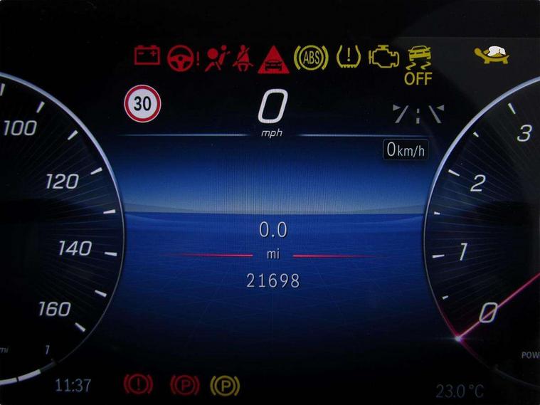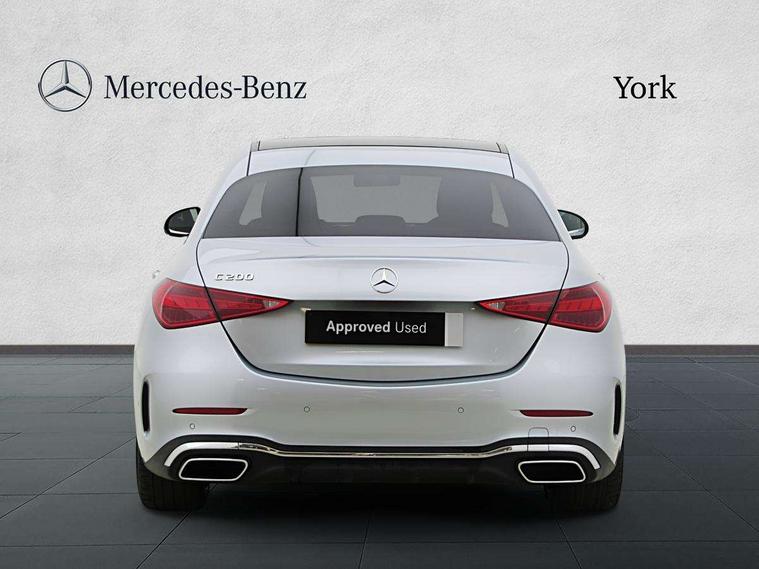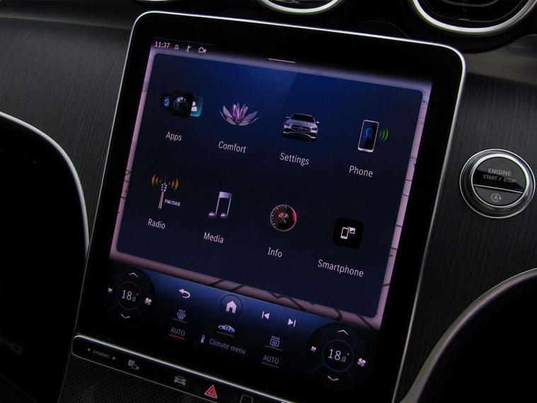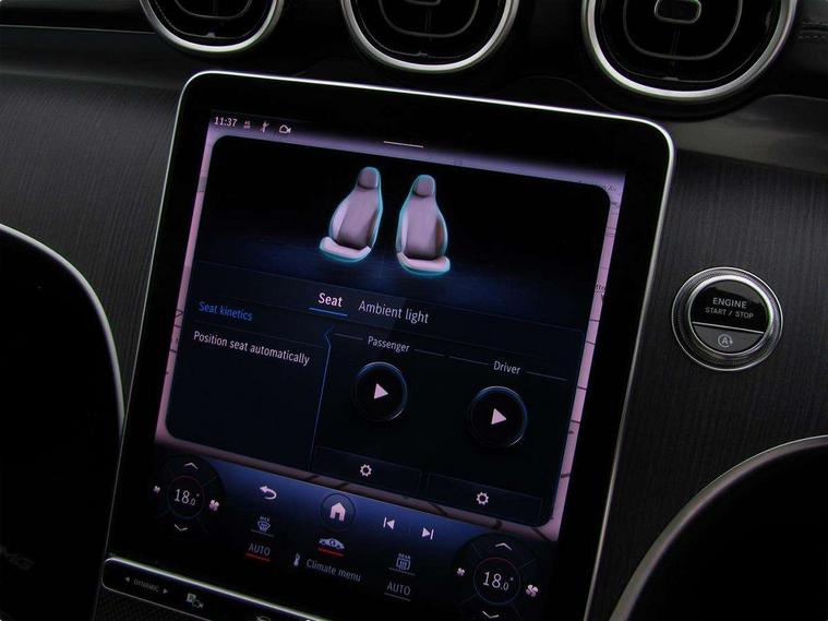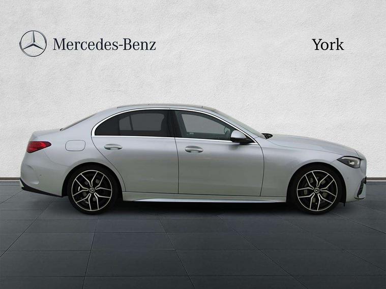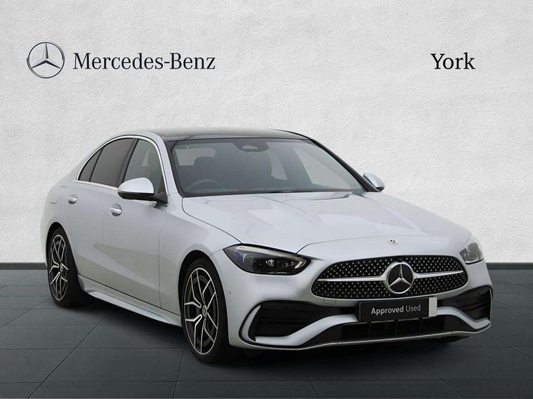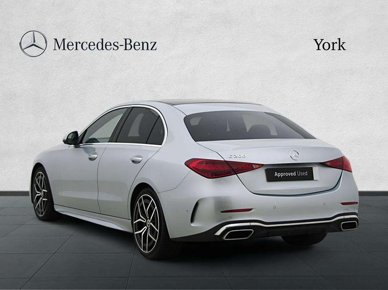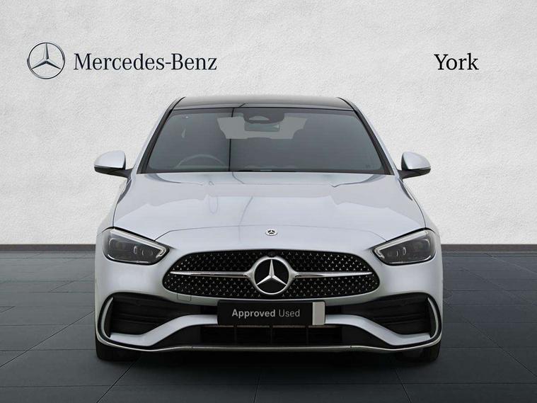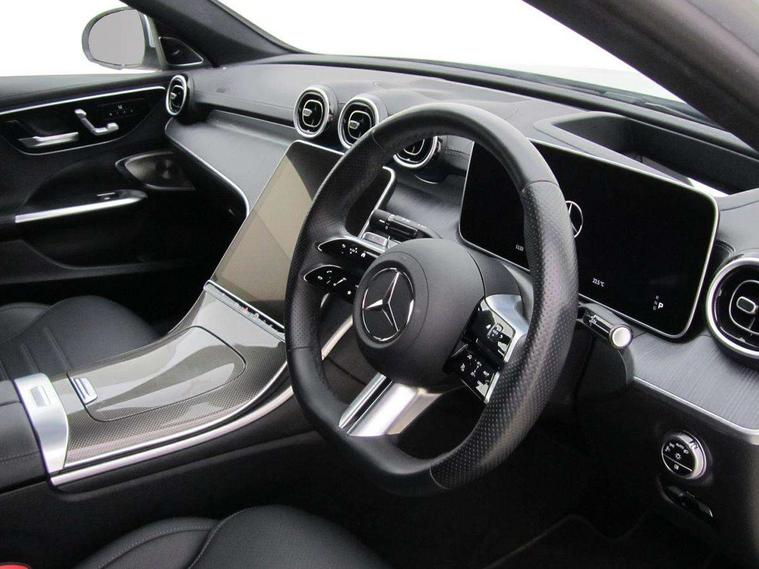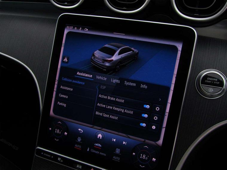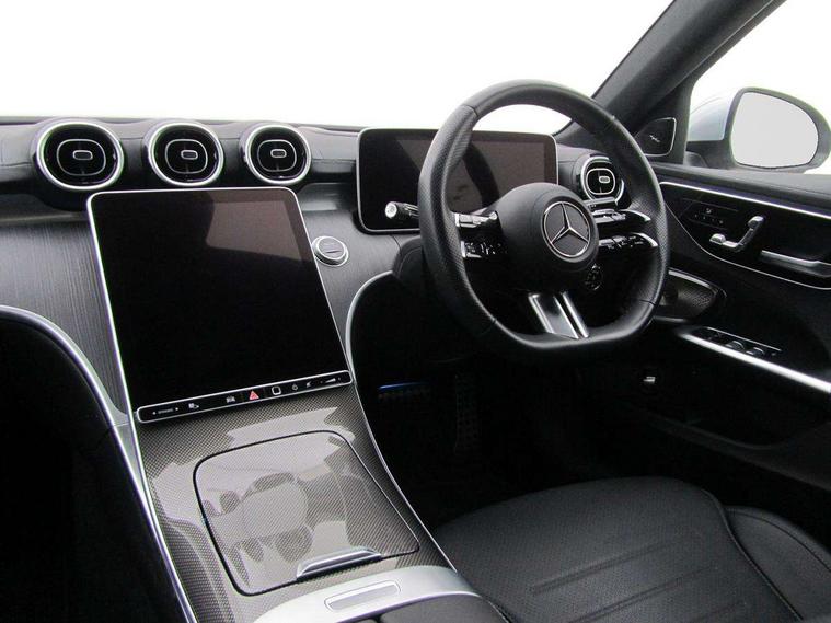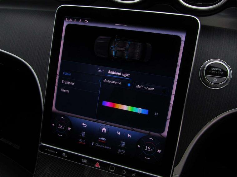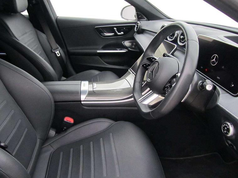 11.9" high resolution multimedia colour display, 12.3" digital instrument cluster display, Active parking assist with PARKTRONIC, Attention assist, DYNAMIC SELECT with a choice of driving modes (Comfort, ECO, Sport, Sport+, Individual), E-call, Extended MBUX functions, Finger print sensor, Fluorescent jacket for driver, Hard disc navigation, Head up Display, MBUX navigation premium, Mercedes me remote services, Outside temperature gauge, Service indicator (ASSYST), Smartphone integration, Sports direct steer speed sensitive steering, Status display for rear seat belts in instrument cluster, Traffic sign assist, Wireless charging system for mobile devices, 9G TRONIC 9 speed automatic transmission, Petrol Particulate Filter, Sport suspension, Burmester 3D surround sound system, DAB Digital radio, MBUX multimedia system, Adaptive brake lights, Adaptive high beam assist plus, AMG body styling front apron, rear apron and side skirts, AMG Line exterior, Body coloured bumpers, Body coloured door mirrors, Digital light LED headlamps, Electric panoramic glass sunroof, Electric windows with one touch opening/closing and obstruction sensors, Electrically adjustable and heated door mirrors, Heat insulating dark tinted glass, LED daytime running lights, LED Indicators, LED tail lights, LED third brake light, Noise acoustic glass, Radiator diamond grille with integrated Mercedes Benz star and louvre silver with chrome pins, Rain sensor with automatic windscreen wiper activation, Rear boot, Rear side wing doors, Two visible exhaust pipes integrated into rear bumper, 3 seat bench in 2nd row, 40:20:40 split folding rear bench seat, Ambient lighting premium, Ambient lighting with projection of brand logo, AMG floor mats, AMG line interior, Artico man-made leather upholstery, Auto Mercedes-Benz child seat recognition sensor, Black roof liner, Boot lid convenience closing feature, Comfort seats, Double cupholder in centre console, Electrically height/reach adjustable steering column, Folding rear seat backrest, Front and rear head restraints, Gearshift paddles on steering wheel, Illuminated door sills with Mercedes Benz lettering, Illuminated glove compartment stowage, Multifunction sports steering wheel in nappa leather, Rear top tether child seat ISOFIX attachment, Single front passenger seat, Sunvisors with illuminated vanity mirrors, THERMATIC 2 zone automatic climate control, AIR BALANCE Package - C Class, Energizing package plus - C Class, Interior light package - C Class, Keyless go comfort package - C Class, Memory package - C Class, Mirror package - C Class, Parking package with 360 degree camera - C Class, Stowage space pack - C Class, USB package plus - C Class, 3 rear 3 point seatbelts, Active bonnet pedestrian safety measure which detects an impact and raises bonnet, Adaptive brake system with HOLD function and brake drying in the wet, Anti-lock braking system (ABS), Black seat belts, Brake calipers with Mercedes-Benz lettering + perforated front brake discs, Child proof door locks, Drivers knee airbag, Drivers pelvis airbag, Dual stage driver/passenger airbags, Electric parking brake, Electronic Stability Programme (ESP), Front centre airbag between driver and front passenger seats, Front side airbags, Tyre pressure monitoring system, Warning triangle and first aid kit, Window airbags for driver, front passenger and rear passenger, Antitheft alarm system, Interior monitoring system and Increased antitheft protection, Central locking with interior switch, automatic locking and crash sensor with emergency opening function, Chrome surround electric key, Urban guard vehicle protection plus, Black open pore aluminium lines wood trim with centre console in metal structure finish, Dashboard, instrument panel and beltlines in ARTICO man made leather in nappa look, 19" AMG multi spoke light alloy wheels painted black with high sheen finish, TIREFIT with tyre inflation compressor,
