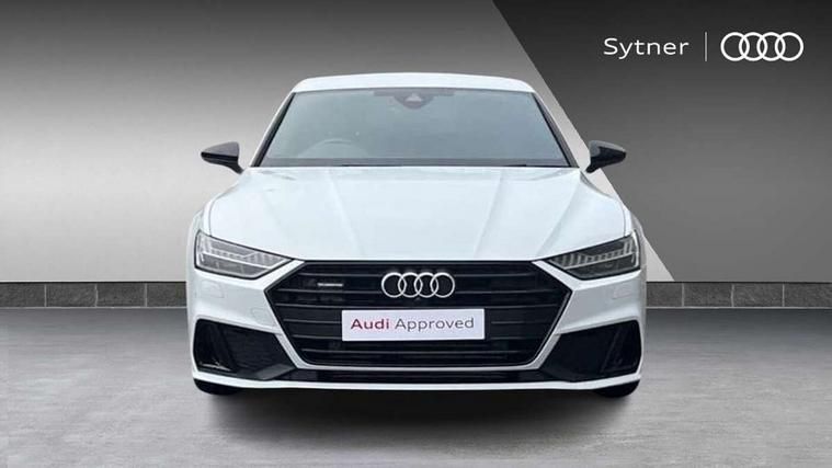 Audi connect safety and service (e-call), Audi connect with Amazon Alexa Integration, Audi drive select, Audi parking system plus - acoustic and visual park assist system for front and rear, Audi smartphone interface, Audi virtual cockpit - 12.3" high resolution LCD digital instrument cluster display, Automatic start/stop system with coasting functionality, Bluetooth interface, Colour driver's information system display, Electric boot lid release, Lane departure warning system, MMI nav plus with MMI touch + 10.1" and 8.6" HD haptic touch screen/3D city models/country information/online map/route info and personal route assist, Operating buttons in black, glass look with haptic feedback, Power operated tailgate, Progressive steering, Rear view camera, Service indicator, Voice control system, Sports suspension, Audi music interface - 2 USB ports with charger and data functions, Audi sound system with 6 channel amplifier, 180 watt amplifying capacity and 10 loudspeakers including subwoofer, Auxiliary input socket, DAB digital radio module, Coming/leaving home animations in front, Frameless auto dimming interior rear view mirror, Front and rear electric windows, Gloss black highlights on the exterior area of the Audi Single frame, Gloss black highlights on the front and rear bumpers, Gloss black highlights on the radiator grille, Gloss black highlights on the side windows trim strips, HD Matrix LED headlights with dynamic front and rear indicators, Headlight washers, Heat insulating glass in side and rear windows, LED rear lights, Rain and light sensors, Rear side wing doors, Rear wiper, Retractable rear spoiler, S line air inlet design with inlay in high gloss black, S Line badge on front fender, S line badge on front grille, S Line Black rear diffuser with chrome inlays and rear grille, S Line side skirts, Signature LED daytime running lights, Third brake light, Towbar preparation, Windscreen with heat-insulating glass, 2 zone deluxe electronic climate control, 4-way electric lumbar support, 40/20/40 split folding 3 seater rear seat bench with rear centre armrest, Black cloth headlining, Electrically adjustable front seats - driver seat with memory, Front and rear headrests, Front centre armrest, Heated front seats, Height/reach adjust steering wheel, Illuminated door sill trims with S logo, Illuminated sun visors with vanity mirrors, ISOFIX child seat mounting and top tether in front and outer rear seats with front passenger airbag deactivation, Leather gear knob, Leatherette upper instrument panel and door shoulders, Luggage compartment floor, S line front and rear floor mats with contrast stitching, Single front passenger seat, Stainless steel pedals and foot rest, Tool kit and car jack, LED interior ambient lighting pack - A7, Non smoking pack - A7, 3 point seatbelts on all seats, Audi pre-sense front, Driver and passenger airbags, Electromechanical parking brake, Electronic stabilisation control including ABS, ASR and EDL, Extended pedestrian protection measures, Hill hold assist, Manual child lock in rear doors, Seatbelt monitoring, Tyre pressure warning light, Warning triangle and first aid kit, Anti theft alarm with tow away protection, Anti-theft wheel bolts and wheel loosening detection, Immobiliser, Keyless Go, Preparation for tracking system, Remote central locking, Carbon twill inlays, 20" 5 double arm design Audi sport cast aluminium high seen matt titanium look alloy wheels,
