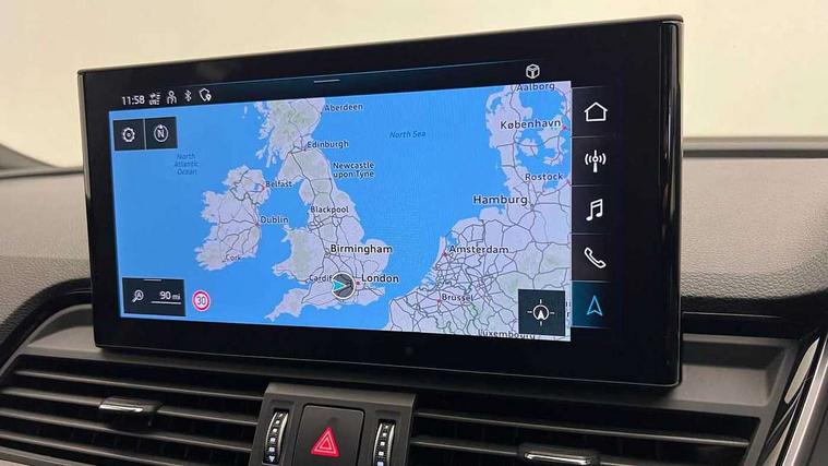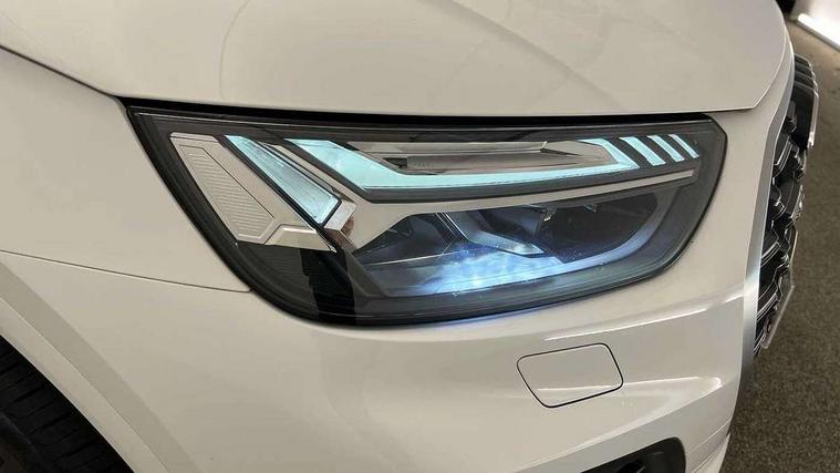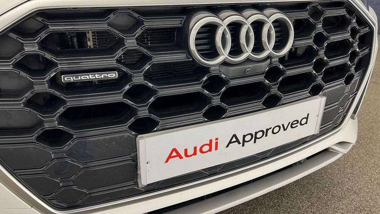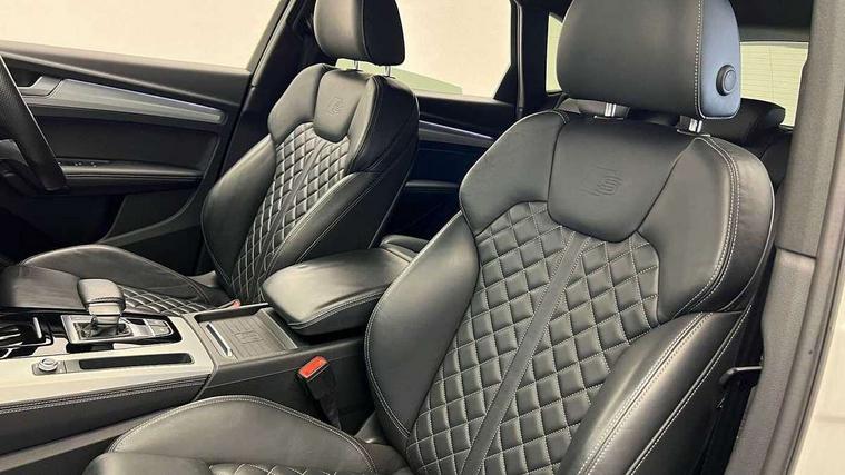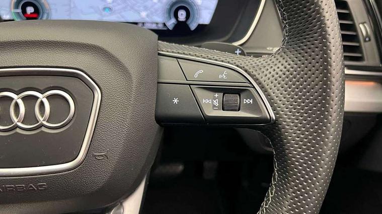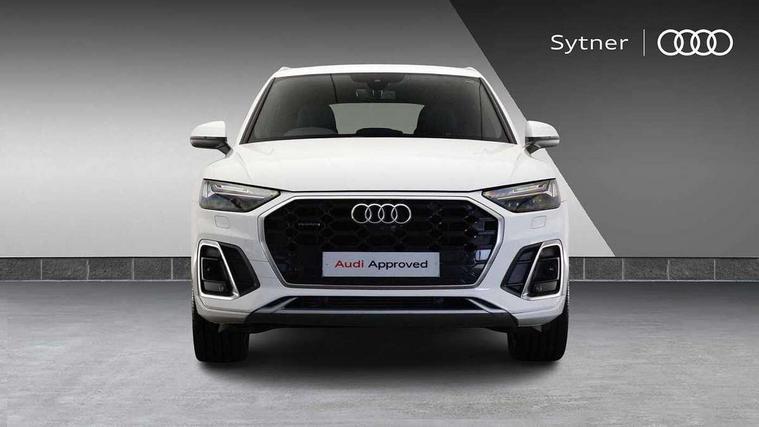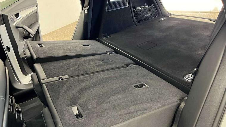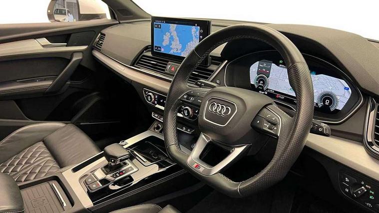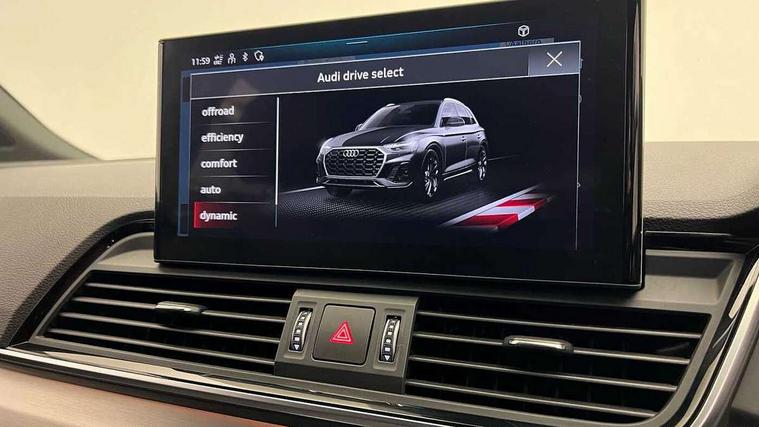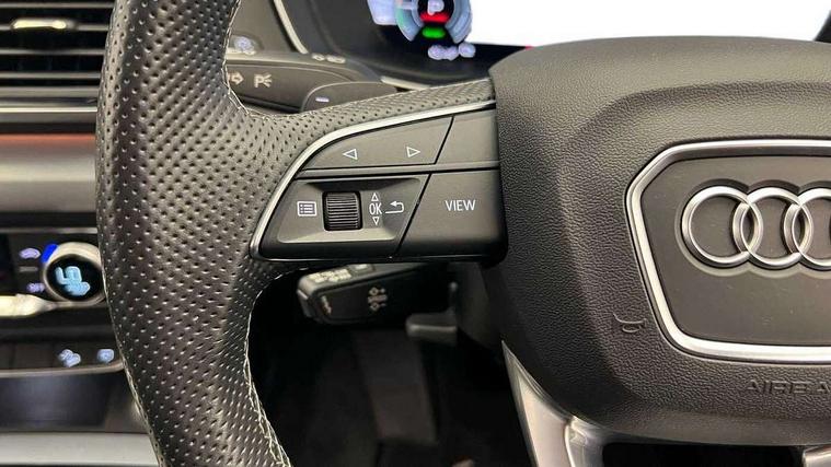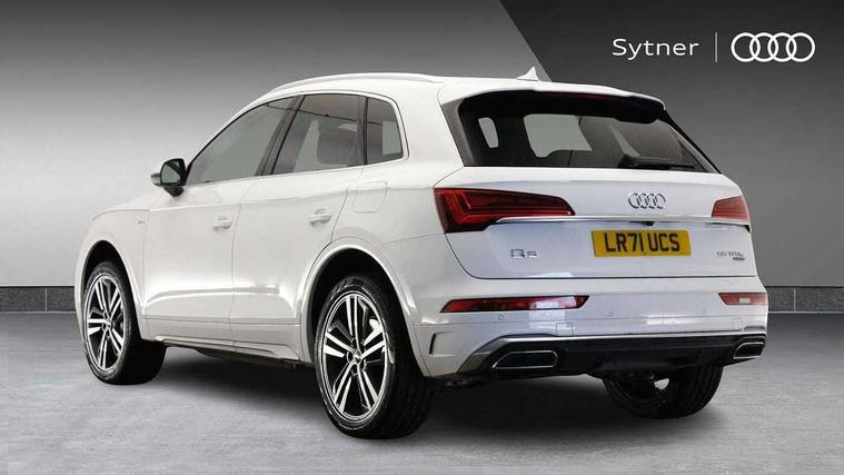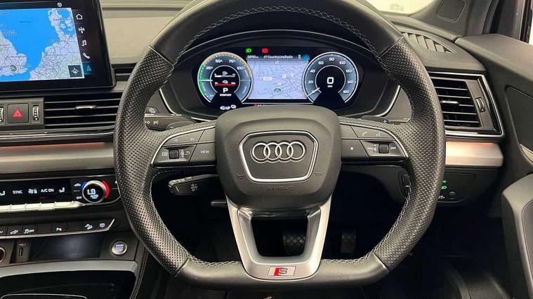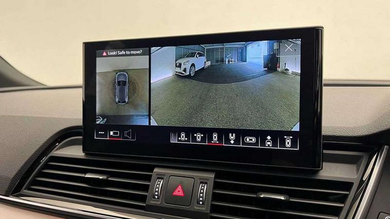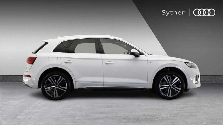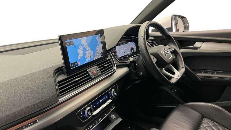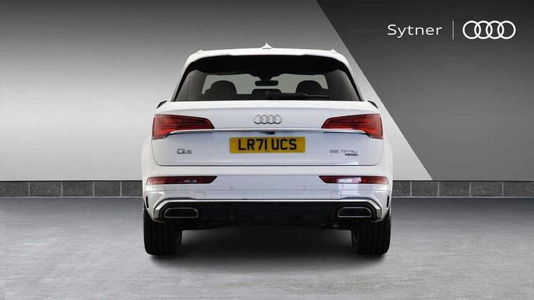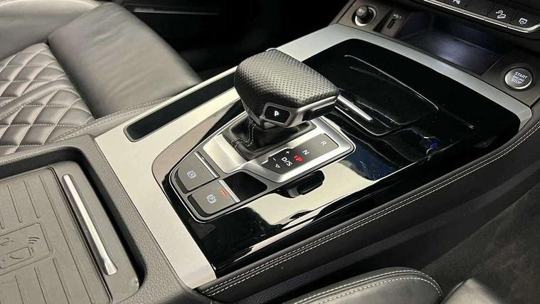 Advanced key with electric hands free boot opening system, Audi connect safety and service (e-call), Audi connect with Amazon Alexa Integration, Audi drive select, Audi virtual cockpit plus with 12.3" screen and three different layout designs, Audi wireless smartphone interface, Automatic start-stop system with coasting functionality and efficiency programme, Bluetooth interface, Electro - mechanical power assisted steering, MMI navigation plus with 10.1" touch screen, Power tailgate, Reversing camera, Service interval indicator, Voice control system with Audi hotword activation "Hey Audi", 3 pin 10 amp domestic charging cable, Dynamic suspension, Quattro on demand, Type 2 mode 3 22kW 32 amp charging cable, Type 2 socket for AC charging, Audi sound system, DAB Digital radio, Acoustic glass for front and door windows, Aluminium roof rails, Audi beam, Audi matrix LED headlights with dynamic front and rear indicators, Auto dimming rear view mirror, Automatic headlights and windscreen wipers, Body colour bumpers, Body colour door mirrors, Body colour rear diffuser with matt aluminium silver surrounds, Body colour underbody protection, Chrome plated exhaust trims, Door sills in Selenite silver, Electric adjustable/heated/folding door mirrors, Front air inlet surrounds in aluminium, Front and rear electric windows, Front radiator grille in honeycomb design, Headlight washers, Lower bumpers painted in contrast Manhattan grey, Rear chrome trim strip below lights, Rear diffuser strip in selenite silver, Rear privacy glass and rear side windows, Rear spoiler, Rear wiper, Roof bars, 2 x USB charging port with aux input socket, 3 rear headrests, 40:20:40 split folding rear seat with rear centre armrest, Black cloth headlining, Comfort front centre armrest, Contrast stitching on seats, steering wheel and gear lever gaiter, Deluxe 3 zone electronic climate control, Fine Nappa leather upholstery with diamond pattern contrast stitching + front sport seats with S embossed logo, Front/rear floor mats, Fully electrically adjustable seats, Gear lever in black leather, Heated front seats, Height adjustable front head restraints, Height/reach adjustable steering column, Illuminated door sill trims with S logo, ISOFIX child seat mounting and top tether, Massage function for front seats, Rear seat bench plus, Sunvisors with vanity mirrors, Tool kit, Trunk roller cover, Extended interior upholstery pack - Q5, High gloss pack - Q5, LED interior light pack - Q5, 3 point seatbelts on all seats, 6 airbags - Driver, front passenger, curtain and side airbags, Electrically operated child locks on rear doors, Electromechanical parking brake, Electronic stabilisation control including ABS, ASR and EDL, Front passenger airbag deactivation, Hill descent control, Hill hold assist, Multi collision brake assist, Pop-up bonnet for pedestrian protection, Pre sense city, Seat belt force limiter, Seatbelt monitoring, Tyre pressure warning, Warning triangle and first aid kit, Anti theft alarm, Anti-theft wheel bolts, Keyless Go access/ignition system, Matt brushed aluminium inlays, 20'' 5 segment spoke design alloy wheels in contrasting grey with diamond cut finish, Tyre repair kit,