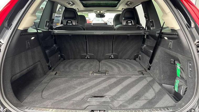 12.3" Progressive Driver Display, 360 degree surround view parking camera with side proximity sensors, 9" centre console portrait touch screen, Adjustable steering wheel force, Bluetooth hands free telephone connection, Drive mode settings, Driver alert control with lane keeping aid, Driver assistance (pilot assist and adaptive cruise control), Driver awareness - Blind spot information system with steer assist, cross traffic alert with autobrake and rear collision warning and mitigation, Emergency call service, Front and rear park assist, Google Automotive Services - Navigation with Voice recoginition and google assistant, Handsfree power tailgate opening and closing, Oncoming Lane Mitigation, Power operated tailgate, Service interval indicator, Speed limiter, Speed sensitive steering, Trip computer, Volvo on call, Wireless Mobile Phone Charger, 3.7 kW monophase on board charger, 6m 3 phase 16amp Type 2 / mode 3 charge cable, 7m 10amp charge cable with 3 pin plug, 8 speed automatic transmission with start/stop + manual change functions, Active four C chassis - four corner adaptive dampers with electronic air suspension, Electric rear axle drive, Lithium-ion battery, On board charger - 6.4 kW 2 phase/3.7kW single phase, Recharging port located in nearside front wing, DAB Radio (Digital Audio Broadcasting), Low speed exterior sound speaker, Premium Sound by Bowers and Wilkins, dirac live, dolby pro logic II surround sound, 18 speakers/1400W output and fresh air subwoofer, Steering wheel remote infotainment controls, Active bending headlights with adaptive shadow technology, Adaptive brake lights with high level LED brake lights, Auto dimming interior + exterior mirrors, Auto folding and heated power door mirrors, Automatic headlight levelling system, Automatic LED Headlights + Active high beam incorporating daytime running lights, Body colour bumpers, Dark tinted windows - rear side windows and rear screen, Front and rear power windows, Headlight cleaning system, High gloss black door mirrors and window surround, High gloss black front and rear bumper deco, High gloss black mesh front grille with surround, Home safe and approach lighting, Integrated roof rails in high gloss black, Power glass tilt and slide panoramic sunroof with sun curtain, Puddle lights, Rain sensor with automatic windscreen wiper activation, Rear side wing doors, Rear wash/wipe with intermittent wipe setting, Roof antenna, Roof spoiler, Visible VIN plate, 12V socket front tunnel console, rear passenger compartment and cargo area, 2 seat bench in 3rd row, 2nd Row centre armrest with and cupholders, 3 seat bench in 2nd row, 4 zone electronic climate control with Clean zone air quality system + pollen filter, A-pillar parking ticket holder, Advanced interior air cleaner PM2.5, Air conditioning for 3rd row of seats, Ambient door and instrument panel lighting, B Pillar ventilation, Bright metal luggage threshold, Centre console cupholders and storage, Floor mats, Front and rear door pocket and front cupholder illumination, Front and rear reading lights, Theatre lighting and centre armrest storage illumination, Front footwell and side step illumination, Front headrests, Front seat cushion extensions, Heated front seats, Heated rear seats, Heated steering wheel, Height/reach adjustable steering column, Illuminated front and rear tread plates, Illuminated luggage compartment, Illuminated tailgate, Illuminated vanity mirrors + ticket holder, Illumination lockable glovebox compartment, Integrated sun curtains in rear doors, Isofix outer rear child seat preparation in 2nd row, Load protection net, Luggage compartment divider with grocery bag holder, Outboard armrest with cupholder and storage for third row passengers, Power driver seat with multi directional lumbar support and memory for seat and exterior mirrors, Power folding 2nd row headrests, Power passenger seat with multi directional lumbar support and memory, Rear footwell and side step illumination, Rear headrests, Recharge aluminium tread plates, Semi automatic load cover, Single front passenger seat, Underfloor luggage compartment storage, 7 three point seatbelts, City safety with steering support includes pedestrian, cyclist and large animal detection and front collision warning with full auto brake, Drivers knee airbag, Dual stage driver/passenger airbags, First aid kit, Front seats SIPS airbags, Hill descent control - off drive mode, Hill start assist, IC (Inflatable Curtains) - Full Length, Passenger airbag cut-off switch, Power child locks on rear doors, Power parking brake with auto hold function, Road sign information display, Run off Road Mitigation, Run off Road Protection, Seatbelt reminder and pretensioners for all seats, SIPS (Side Impact Protection System), Slippery road and hazard light alert, Stability and Traction Control with Spin control, Engine Drag Control and Corner Traction Control, Tyre pressure monitoring system, Vehicle deceleration control with Anti-lock Brake System, Electronic Brake Distribution and Emergency Brake Assist, Warning triangle, WHIPS whiplash protection system - front, Anti-theft alarm including immobiliser/volume sensor + level sensor, Care key with user defined top speed, Key integrated remote control central locking + fuel flap with deadlocking system and auto open/close power windows, Keyless drive includes keyless entry and keyless start, Locking wheel nuts, Private locking for glovebox and tailgate, Tailored Instrument Panel and Door Tops with Contrast Stitching, Tyre sealant kit and compressor,