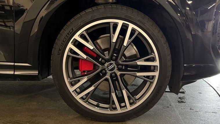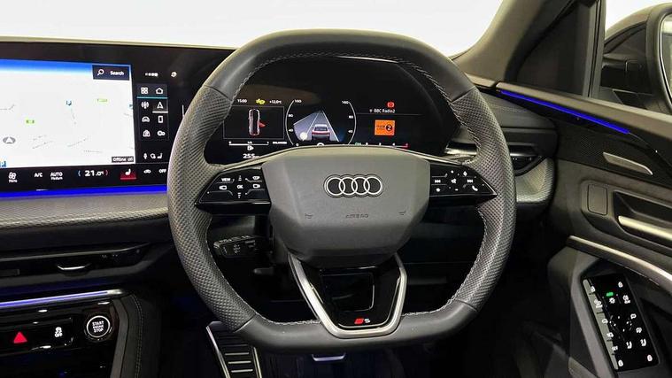 Adaptive cruise control, Advanced driver attention alert, Audi application store, Audi connect emergency call and service, Audi drive select, Audi smartphone interface, Audi virtual cockpit plus with 11.9" OLED colour display, Camera based traffic sign recognition, Fatigue monitor, Front cross traffic intersection assist, Lane change assistant with exit warning system, rear cross traffic alert and rear turn assist, Lane departure warning with emergency assist, MMI 10.9" front passenger touch display, MMI navigation plus with high resolution 14.5" OLED touchscreen colour display, Park assist plus, Parking system plus with 360 display, PAS, Reversing camera, Swerve assist and turn assist, Top view camera, Traffic sign based speed limiter, 2 USB-C ports in both the front and rear, Audi sound system impressive sound with 10 loudspeakers including centre speaker and subwoofer, 6-channel amplifier with a total output of 180 watts, DAB Digital radio, Smartphone compartment with wireless charging, Active digital light signatures - Six additional combinations of active daytime running light signature, Auto dimming rear view mirror, Black roof rails, Coming/leaving home lighting function, Electrically adjustable heated and folding + automatically dimming exterior mirrors, Exhaust tailpipes in dark chrome, Front and rear electric windows, Front door sill trims with aluminium inlays, illuminated with 'S' logo, Full body paint finish, Headlight cleaning system, Heated rear window, High beam assist, High gloss window surrounds, Inlay and front air inlets in matt anthracite chrome, LED rear lights pro incl. dynamic rear indicators and illuminated light strip with animated coming and leaving home function, Logo projection light in exterior mirrors, Matrix LED headlights, Memory function for door mirrors, Privacy glass, Projection light for rear window, Radiator grille in phantom black, Rear and side windows with heat insulating glass, Rear honeycombe grille in matt black with inlay in matt anthracite chrome, Rear side wing doors, Rear wash/wipe, S Line badge on the front wings, Towbar preparation, Windscreen with acoustic glazing, 3 rear head restraints, 3 seat bench in 2nd row, 3 spoke leather steering wheel with multi-function buttons with touch control, flattened on top and bottom, with S badging and contrast stitching, 4 way electric lumbar support for driver and front passenger, 40:20:40 split folding rear seat bench with centre armrest and cup holders, Comfort centre armrest, Deluxe 3 zone electronic climate control, Dinamica microfiber/leather upholstery, Electrically adjustable front seats with memory function for driver's side, Front and rear floor mats, Front sport seats with integrated head reastrains, Headlining in black cloth, Heated front seats, i-Size child seat mounting on the front passenger side and outer rear seats, i-Size and top tether on the outer rear seats, Interior trim in aluminium look, Luggage compartment lid, electrically opening and closing, Manual steering column adjustment, Single front passenger seat, Softwrap in Dinamica, Stainless steel pedals and footrest, Steering wheel grips in perforated leather and shift paddles, Ambient lighting package plus - Q5, Black styling package plus - Q5, Storage and luggage compartment pack - Q5, 3x3 point rear seatbelts, ABS, Acoustic vehicle alerting system, Convenience key with safelock, Driver and front passenger airbag with passenger airbag deactivation, Electric child safety locks, First aid kit with warning triangle and high visibility vests, Front emergency brake assist, Front side airbags with head airbag system and front interaction airbag, Hill hold assist, Occupant detection in rear seat area, Proactive passenger protection system for front, sides and rear, Red brake calipers, Side airbags in front and rear with head airbag system and front interaction airbag, Tyre pressure loss indicator, Anti theft alarm, Anti-theft wheel bolts, Remote control key with SAFELOCK and keyless go, Accent surfaces and control buttons in gloss black, Black dashboard with contrast stitching, Steel grey seat stitching, Upper and lower interior elements in dinamica microfiber, Tyre repair kit,