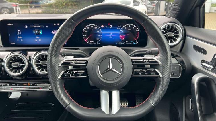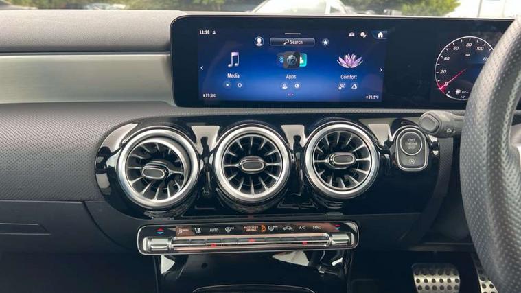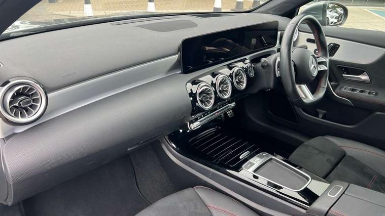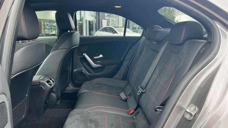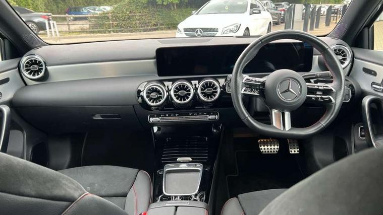 10.25 inch touchscreen central media display, 10.25" Digital instrument cluster display screen, Attention assist, Brake pad wear indicator warning light, Car wash mode, Direct steering, Direction indicators with lane change function, Dual bluetooth interfaces, DYNAMIC SELECT with a choice of driving modes (ECO, Comfort, Sport and Individual), ECO start/stop function, Engine start/stop button, Fingerprint scanner, Fluid level warning indicator for fuel, oil, coolant and washer fluid, Fluorescent jacket for driver, Hard-disk navigation, Head up Display, Hey Mercedes Voice activation, Lamp failure indicator, Mercedes me connect including emergency call system, accident recovery, breakdown and maintenance management, Mercedes me remote services, Outside temperature gauge, Owners manual in English, Pre-installation of private car share, Preinstallation for Mercedes Benz link, Remote boot closing, Service indicator (ASSYST), Smartphone integration with Apple CarPlay and Android auto, Speed sensitive power steering, Traffic sign assist, Trip computer in multifunction display with current consumption indicator, Wireless charging, Lowered comfort suspension, DAB Digital radio, MBUX multimedia system, Mercedes Benz advanced sound system (225 W) with 10 speakers, 1 central speaker, speakers on doors, a tweeter on door, one sub woofer + boost amplifier, 4 Electric Front and Rear windows, Adaptive brake lights, AMG body styling - AMG front apron with front splitter and AMG rear apron and visible exhaust tailpipe trim elements, Body colour bumpers, Body colour door handles with chrome inserts, Body colour side skirt, Chrome beltline strips, Diamond radiator grille with pins in fine star pattern, Electric adjustable and heated door mirrors with integrated LED side indicators, Exhaust system with 2 visible tailpipe trim elements and rear apron, Headlamp assist automatic headlamp activation, Heat insulating dark tinted rear and rear side windows, Heated glass rear windscreen + timer control, LED daytime running lights, LED tail lamp, Multibeam LED headlamps with adaptive highbeam assist and cornering function, Panoramic sliding sunroof, Privacy glass, Radio aerial, Rain sensing windscreen wipers with two sensitivity settings, Rear boot, Rear fog lights, Rear side wing doors, Third brake light featuring LED technology, 3 seat bench in 2nd row, 3 Spoke flat bottom leather multi function steering wheel with perforated leather in grip area, 40:20:40 split folding rear seats, Air conditioning - Two zone thermotronic luxury automatic climate control with display, AMG floor mats, Automatic child seat recognition sensor, Black air vents with surround in silver chrome, Black roof lining, Brushed stainless steel sports pedals with rubber studs, Electrically adjustable front memory seats including lumbar support and backrest inclination, Front centre armrest with stowage, Front seat backs luggage nets, Galvanished gear shift paddles on steering wheel, Height/reach adjustable steering column, Illuminated Mercedes Benz lettering front door sills with changeable cover, Interior lighting - 64 colour Ambient lighting, Interior mirror with reading lamps in black and frameless, Rear armrest with 2 cupholders, Seat occupancy sensor for front passenger seat, Single front passenger seat, Sports seats with adjustable head restraints, Stowage compartment in centre console with retractable cover, Sunvisors with illuminated vanity mirrors, Twin front cupholders, Keyless go comfort pack - A Class, Light and sight package - A Class, Mirror package - A Class, Night pack - A Class Sport, Parking pack with 360 degree camera - A Class, Seat comfort pack - A Class, USB pack plus - A Class, Winter pack - A Class, 3 rear 3 point seatbelts, ABS with Brake Assist, Active bonnet, Adaptive brake assist with hold function and hill start assist, Black seatbelts, Bonnet with power domes, Childproof locks manually operated for rear doors and electrically operated for rear power windows, Crash responsive emergency lighting, Driver and passenger head and side airbags, Drivers knee airbag, Dual stage driver/passenger airbags, Electronic parking brake, ESP curve dynamic assist, ESP with ASR, Exit warning, Front and rear seatbelt reminder, ISOFIX and top tether child seat fixing points in two outer rear seats, Tyre pressure monitoring system, Warning triangle and first aid kit, Window airbags, Alarm system/interior protection/immobiliser, Guard 360 degree vehicle protection, Remote central locking and crash sensor with emergency opening function, Light longitudinal grain aluminium trim, 19" AMG multi-spoke light alloy wheels, aerodynamically optimised, painted in black with high sheen rim flange, Summer tyres, Tirefit sealant kit,