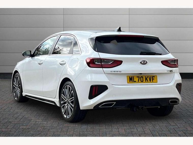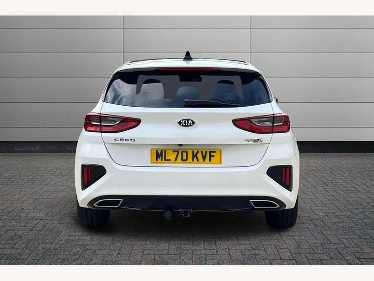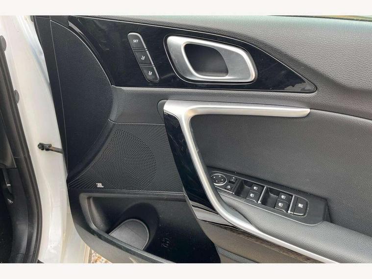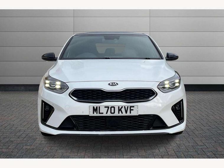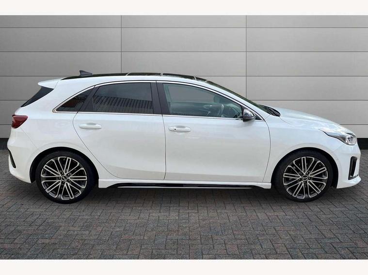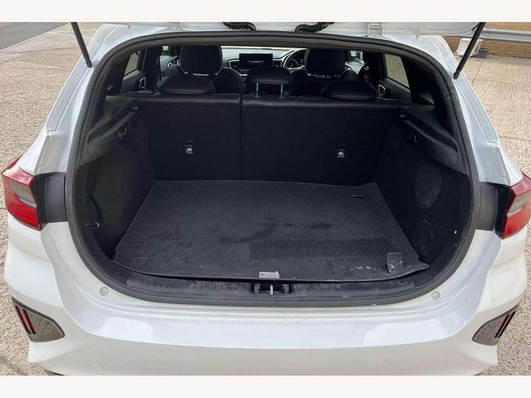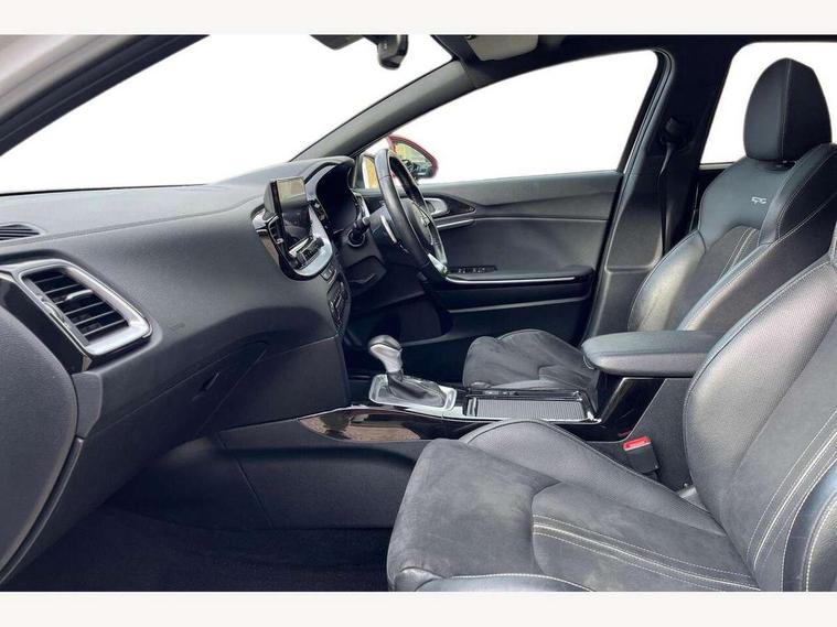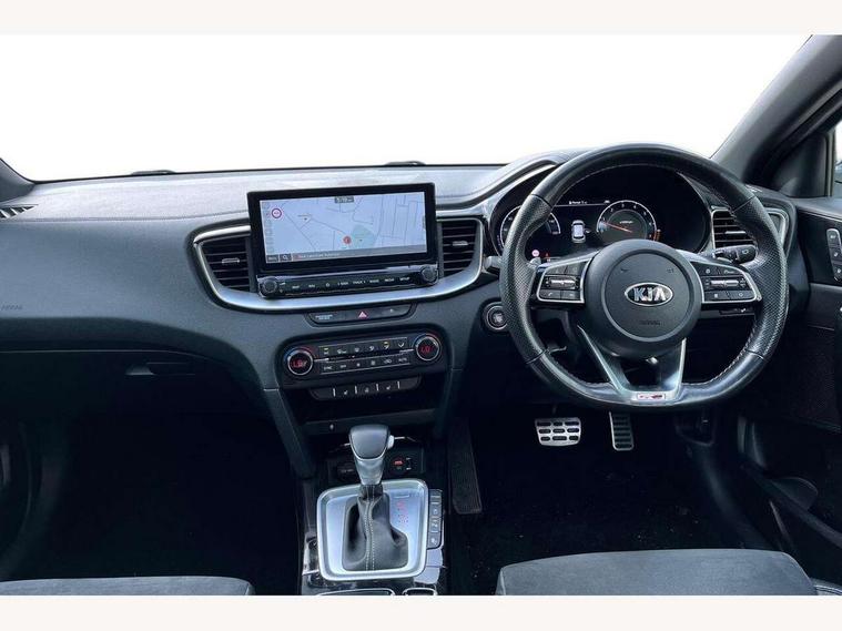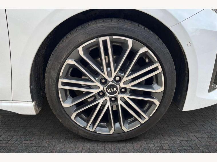 10.25" touchscreen satellite navigation including telematics, 12.3" TFT supervision cluster display, 4.2" supervision colour cluster display, Apple car play/Android Auto with voice control, Blind spot collision warning, Bluetooth with Voice Recognition & Music Streaming, Drive mode selector, Driver attention warning, Emergency stop signalling system, Kia connected services featuring TomTom live, Lane Following Assist (LFA), Lane keep assist, Motor driven power steering, Outside temperature gauge, Reversing camera with dynamic guide lines, Service interval indicator, Smart park assist system (SPAS) with parallel/perpendicular/reverse with front/rear parking sensors, Speed limit information function (SLIF), Trip computer, Wireless Mobile Phone Charger, Intelligent Stop and Go, DAB Radio with MP3, Illuminated USB & aux ports, JBL Premium sound system with 8 speakers, Steering wheel mounted controls, USB & AUX Ports for Connection of a Media Device, USB Fast Charger in Front Centre Console, Air intake with black accent lower lip, All-round Electric Windows with Auto Up & Down Function, Auto dimming rear view mirror, Automatic defog system, Automatic headlights, Body colour bumpers, Body colour exterior door handles, Body coloured rear roof spoiler with high gloss black trim, Chrome window surround, Electric adjustable/heated/folding door mirrors with LED Indicators and Kerbside Lights, Front fog lights, Front wiper de-icer, Heated rear window with timer, High beam assist, High Gloss Black and Satin Chrome Radiator Grille, High gloss black door mirrors, High gloss black side sill mouldings, Illuminated front door handles, LED Bi-Function headlights, LED daytime running lights, LED High-mounted Brake Light, LED rear fog light, LED rear lights, Privacy glass (rear side windows and rear screen), Rain sensing front wipers, Rear bumper with dual exhaust, Rear wash/wipe, Tinted glass, Wide panoramic sunroof with tilt/slide function and automatic electric roll blinds, Wide view drivers door mirror, Windscreen Washer Level Warning, 10 way power adjustable drivers seat with memory function, 12V socket in luggage compartment, 3 x passenger assist grips, 60/40 split folding rear seat, All-round height adjustable headrests, Aluminium pedals, Black headlining, Cupholders in centre console, Cupholders in rear armrest, Dash illumination dimmer switch, Driver & Front Passenger Sunvisors with Vanity Mirror Illumination & Ticket Holder, Driver + front passenger electric lumbar support, Driver's seat height adjuster, Dual Height Luggage Area Floor, Dual zone automatic air conditioning, Faux leather door trim, Front and rear door storage, Front cabin LED map light with sunglasses case, Front Passenger Seat Height Adjuster, Front seat and rear pockets, Gear shift indicator, Heated front seats, Heated outer rear seats, Heated steering wheel, Interior door lock/unlock function, ISOFIX Child seat top tethers and anchor fixings, Leather D-Cut steering wheel with grey stitching, Leather steering wheel and gearshift, Leather/Faux suede upholstery, Luggage area light, Luggage area parcel shelf, Luggage hooks, Paddle shift controls, Premium centre console with sliding cupholder cover, Rear Air Ventilation, Rear centre armrest, Rear coat hooks, Satin chrome interior door handles, Tilt/telescopic adjustable steering wheel, Advanced Driver Assistance Pack - Ceed 3/GT Line/GT Line S, ABS with Electronic Brakeforce Distribution (EBD) and Brake Assist System (BAS), All round 3-point seatbelts, Dual front side airbags, Dual horn, Electronic stability control (ESC) and vehicle stability management (VSM), Front passenger airbag deactivation, Height adjustable front seatbelts, Hill start assist control (HAC), Impact sensing auto door unlocking, Rear door child safety locks, Seatbelt reminder warning, Traction control, Twin curtain airbags, Twin front airbags, Tyre pressure monitoring system, Alarm system, Engine Immobiliser & Deadlocks, Engine Start/Stop Button with Smart Entry System, Locking wheel nuts, Speed sensitive auto door locking, Black high gloss front console tray garnish & door trim, Satin Chrome Fascia Trim, 18" Alloy wheels with grey centre cap, 18'' Alloy Wheels with grey centre cap, Tyre mobility kit,