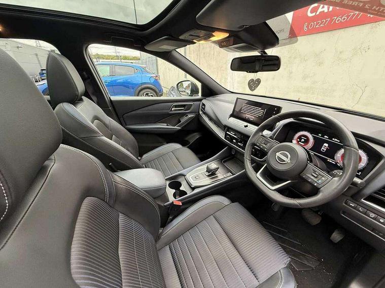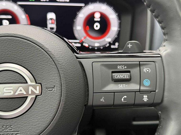 Advanced windscreen head up display, Android auto/Apple CarPlay (Wired), Blind spot warning, Drive modes (sport, normal, eco), Electric speed sensitive power steering, Emergency and breakdown call, Front and rear parking sensors, Full Digital 12.3" TFT Digital Combimeter, Google maps services - search, weather, 3D maps and Google street view, Hands free power tailgate, Idle stop/start system, Intelligent around view monitor, Intelligent Cruise control (ICC), Intelligent driver alert system, Intelligent forward collision warning, Intelligent lane intervention, Lane departure prevention, Lane departure warning system, Lane keep assist, Moving object detection, Nissan connect 12.3 inch touchscreen infotainment system, Nissan connect navigation, ProPilot, Push button starter, Rear cross traffic alert, Rear view camera, Remote control services - door locks, lights, horn and car locator, Telematics - notifications and connectivity services, TomTom live traffic services, Traffic jam pilot, Traffic sign recognition with legal speed adjustment, Trip computer, Virtual personal assistant and firmware over the air capability, Wireless apple carplay, Wireless charging pad, 6 speakers, AM/FM audio system with DAB, Bluetooth audio streaming, Front USB connections (Type-A and Type-C), Rear USB charging only ports (Type-A and Type-C), Auto dimming rear view mirror, Auto rear wiper when reversing, Automatic hazard signal with emergency stop signal, Body colour mirror caps, Body coloured door handles, Bodyside mouldings, Chrome side window finisher, Door handle with button, Electric auto folding door mirrors, Electrically adjustable and heated door mirrors with LED turn indicator, Follow me home headlights, Front and rear LED turning signals, Headlights auto levelling system, Intelligent auto headlights, LED daytime running lights, LED headlights with adaptive driving beam, LED rear lights, One touch front and rear electric windows with remote opening and closing, Partially body coloured bumpers, Privacy glass, Rear bumper with graphite insert, Rear reversing light (bulb lighting), Rear roof spoiler, Rear side wing doors, Rear styling plate, Shark fin antenna, Splash free rain sensing wipers, Super UV and infrared cut glass, Thermaclear heated windscreen, Three blink turn signal, 12v power socket in dashboard and luggage, 2x Rear coat hooks, 3 bench rear seats in 2nd row, 3 rear headrests, 4 folding assist grip, 6 Luggage hooks - 4 on floor, 2 on side, 60/40 split folding rear seat bench, Ambient lighting around centre console, Ambient lighting in front doors, Centre console storage tray, Chrome interior door handles, Cloth/syntech leather monoform upholstery, Dark black/blueish PVC wrapping, Dark headlining, Driver and front passenger sunvisors with illuminated vanity mirrors, Driver seat back pocket, Dual zone automatic climate control with pollen filter, Electrically adjustable driver seat, Electrically adjustable lumbar support for driver, Front and rear door storage, Front centre console and armrest, Front cupholders x 2, Front door with bottle holders, Glovebox with light, Hard trunk cover, Heated front seats, Heated steering wheel, Height adjustable driver's seat, Height adjustable front headrests, Height adjustable passenger seat, Leather steering wheel, Luggage board system, Luggage space lighting, Manual lumbar support on passenger seat, Manually adjustable passenger (slide recline + lifter), Multifunction steering wheel, Passenger seat back pocket, Rear armrest with 2 cupholders, Rear door bottle holders, Single front passenger seat, Soft PVC kneepad, Steering wheel gearshift paddles, Steering wheel switches, Tilt/telescopic adjustable steering wheel, Two rear isofix child seat anchorage points with top tether, Welcome light and doors with console tray ambient lighting, Glass roof pack with roof rails - Qashqai, 3x3 point rear seatbelt pretensioners + load limiters, ABS with EBD and brake assist, Active brake limited slip, Auto hold function, Child locks on rear doors, Curtain and front side, far side airbags, Driver and passenger airbags, Driver, passenger and 2nd row rear seat belt reminder, Electronic parking brake, Front seatbelt pretensioners + load limiters, Height adjustable front seatbelts, Hill start assist, Intelligent blind spot intervention, Intelligent front emergency braking with pedestrian, cyclist recognition and junction assist, Intelligent rear automatic braking, Tyre pressure monitoring system, Vehicle dynamic control, Capless fuel filler, Engine immobiliser, Intelligent Key, Remote central door locking with deadlocking, Thatcham Cat.1 alarm, Interior instrumental panel C finisher, 19" Alloy wheels, Tyre puncture repair kit,