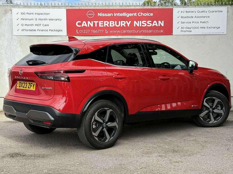 Android auto/Apple CarPlay (Wired), Blind spot warning, Drive modes (sport, normal, eco), Electric speed sensitive power steering, Emergency and breakdown call, Front and rear parking sensors, Full Digital 12.3" TFT Digital Combimeter, Google maps services - search, weather, 3D maps and Google street view, Idle stop/start system, Intelligent around view monitor, Intelligent Cruise control (ICC), Intelligent driver alert system, Intelligent forward collision warning, Intelligent lane intervention, Lane departure prevention, Lane departure warning system, Maximum speed limiter, Moving object detection, Nissan connect 12.3 inch touchscreen infotainment system, Nissan connect navigation, Push button starter, Rear cross traffic alert, Rear view camera, Remote control services - door locks, lights, horn and car locator, Telematics - notifications and connectivity services, TomTom live traffic services, Traffic sign recognition with legal speed adjustment, Trip computer, Virtual personal assistant and firmware over the air capability, Wireless apple carplay, 6 speakers, AM/FM audio system with DAB, Bluetooth audio streaming, Front USB connections (Type-A and Type-C), Rear USB charging only ports (Type-A and Type-C), Auto dimming rear view mirror, Auto rear wiper when reversing, Automatic hazard signal with emergency stop signal, Body colour mirror caps, Body coloured door handles, Bodyside mouldings, Chrome side window finisher, Door handle with button, e-POWER badging, Electric auto folding door mirrors, Electrically adjustable and heated door mirrors with LED turn indicator, Follow me home headlights, High beam assist, Intelligent auto headlights, LED daytime running lights, LED Headlights, LED rear lights, One touch front and rear electric windows with remote opening and closing, Partially body coloured bumpers, Privacy glass, Rear bumper with graphite insert, Rear reversing light (bulb lighting), Rear roof spoiler, Rear side wing doors, Rear styling plate, Shark fin antenna, Splash free rain sensing wipers, Super UV and infrared cut glass, Three blink turn signal, 12v power socket in dashboard and luggage, 2x Rear coat hooks, 3 bench rear seats in 2nd row, 3 rear headrests, 4 folding assist grip, 6-way manually adjustable driver's seat, 60/40 split folding rear seat bench, Ambient lighting around centre console, Centre console storage tray, Chrome interior door handles, Cloth monoform upholstery, Driver and front passenger sunvisors with illuminated vanity mirrors, Driver seat back pocket, Dual zone automatic climate control with pollen filter, e-POWER shifter, Front and rear door storage, Front centre console and armrest, Front cupholders x 2, Front door with bottle holders, Glovebox with light, Hard trunk cover, Height adjustable driver's seat, Height adjustable front headrests, Height adjustable passenger seat, Leather steering wheel, Luggage board system, Luggage space lighting, Manually adjustable passenger (slide recline + lifter), Multifunction steering wheel, Passenger seat back pocket, Rear armrest with 2 cupholders, Rear door bottle holders, Single front passenger seat, Soft PVC kneepad, Steering wheel switches, Sunglasses holder, Tilt/telescopic adjustable steering wheel, Two rear isofix child seat anchorage points with top tether, Welcome light and console tray ambient lighting, 3x3 point rear seatbelt pretensioners + load limiters, ABS with EBD and brake assist, Active brake limited slip, Auto hold function, Child locks on rear doors, Curtain and front side, far side airbags, Driver and passenger airbags, Driver, passenger and 2nd row rear seat belt reminder, Electronic parking brake, Front seatbelt pretensioners + load limiters, Height adjustable front seatbelts, Hill start assist, Intelligent blind spot intervention, Intelligent front emergency braking with pedestrian, cyclist recognition and junction assist, Intelligent rear automatic braking, Tyre pressure monitoring system, Vehicle dynamic control, Capless fuel filler, Engine immobiliser, Intelligent Key, Remote central door locking with deadlocking, Thatcham Cat.1 alarm, Interior instrumental panel B finisher, 18" Diamond cut alloy wheels, Tyre puncture repair kit,