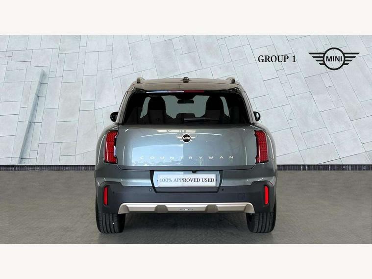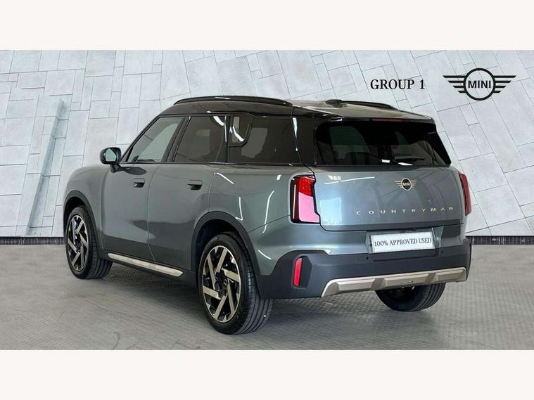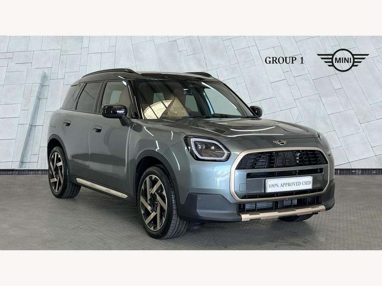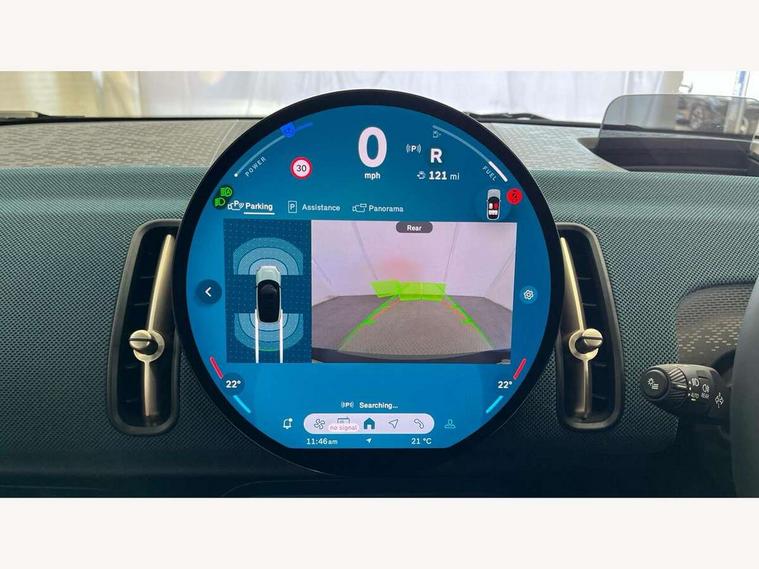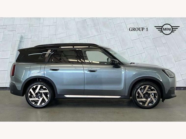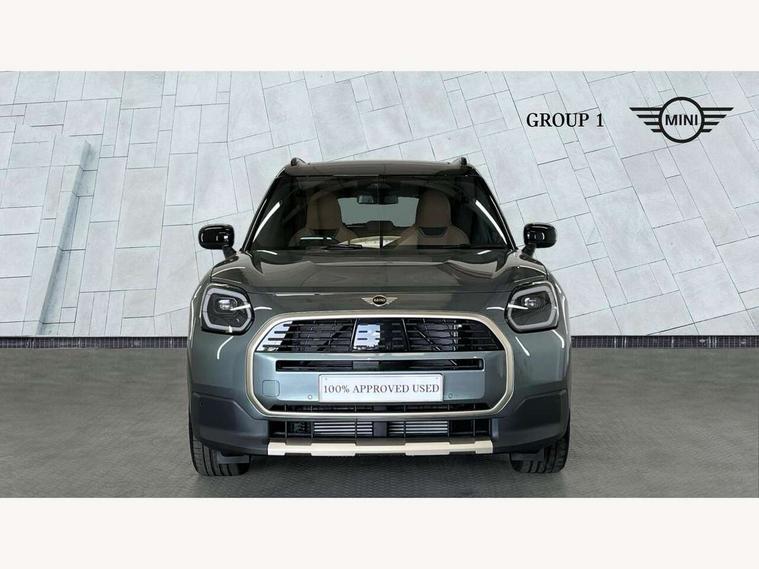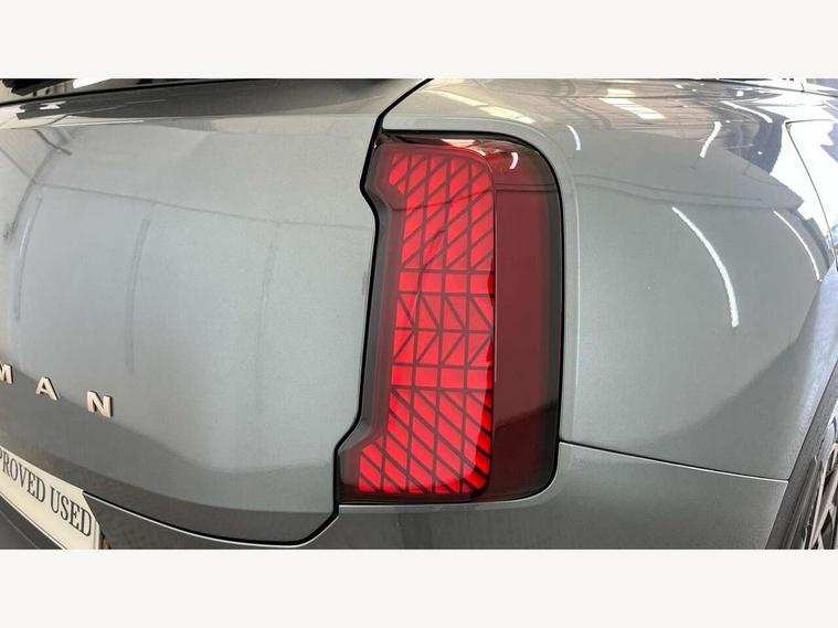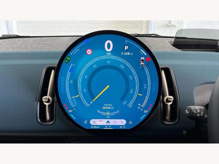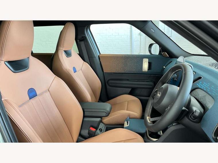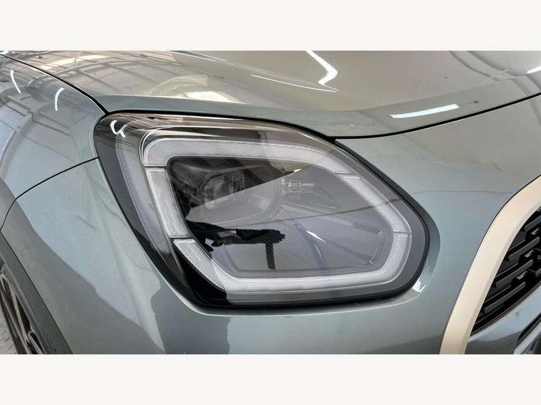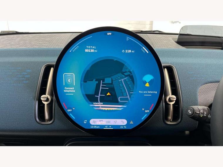 Bluetooth connection, Circular OLED Screen, Compatible mobile phone bluetooth with audio streaming, Cruise Control (DCC), Digital dashboard display, Driving assistant, E-call, Electro-mechanical speed dependant steering assistance, MINI Experience Modes, Mini navigation system, MINI TeleServices, Parking assistant in camera and ultrasound based assistance system, rear view camera, parking aid and distance control, Auto transmission with Paddles, Larger capacity fuel tank, 6 speakers, DAB Digital radio, Personal eSim, Auto tailgate, Electric adjustable heated door mirrors, Front and rear electric windows, Heated rear window, LED daytime running lights, LED Headlights, LED rear lights, LED third brake light, Logos in Vibrant Silver, Rain sensor with auto headlights, Rear side wing doors, Rear window wiper, Roof rails, Vibrant Silver Grill Surround, 3 seat bench in 2nd row, 60/40 split rear bench seat, Anthracite headliner, Auto air conditioning, Floor mats, Front armrest, Front headrests, Front sport seats, Heated steering wheel, Height and length steering column adjustment, Lidded storage box in Petrol knit, Rear headrests, Single front passenger seat, Sport Vescin Steering Wheel, Sunvisors with vanity mirrors, Vescin synthetic leather upholstery, Vibrant Silver sill inlay, 3x3 point rear seat belts, 6 Airbags - front, side, head and seat belt tensioners, ABS, DSC - Dynamic Stability Control, Electronic handbrake, Electronic Stability Programme (ESP), Front ISOFIX (iSize), Hill hold assist, Hill start assist, Manual rear child locks, Traction control, Tyre pressure monitoring system, Warning triangle, Alarm system with tilt sensor, monitoring doors, bonnet interior and tailgate, Auto drive away locking, Deadlocking function, Electronic vehicle immobiliser, Locking wheel bolts, Remote control locking, Start/stop toggle with keyless go, Petrol/Brown dashboard knit, MINI Mobility Kit,