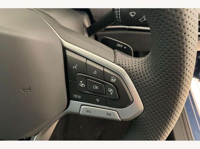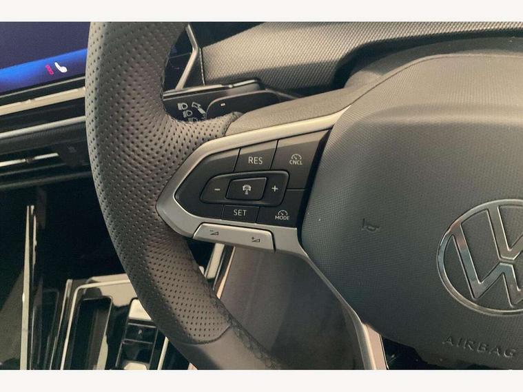 Activated carbon canister, Adaptive cruise control (ACC), Advanced driver attention and drowsiness monitor, Dynamic road sign display, Dynamic steering, E-Sim card for online connectivity, eCall emergency call system, Multi-color Digital cockpit pro, selection of different info profile possible, Multifunction front facing camera for distance control, Navigation system, Oncoming vehicle braking when turning including swerve support, Preparation for light assist system, Speed limiter, Speedo, rev counter, electronic odometer, trip, service interval display, exterior temperature and fuel gauge, Traffic jam assist, Voice enhancer and voice control, Warning signal and warning light for front and rear seatbelts not fastened, We connect plus preparation, We connect preparation, Wireless app connect, Diesel particulate filter, Start-stop system with battery regeneration (recuperation - energy recovery during braking), XDS electronic differential lock for improved traction and handling, 2 USB C ports in front, 2 USB charging sockets on the centre console in the rear charging capacity upto 45W, Digital radio reception (DAB), Diversity antenna for FM reception, Gaming platform via car app, Infotainment system with 12.9" display, Mobile phone interface with inductive charging feature, 3rd brake light, Automatic headlamp activation with Coming home and Leaving home feature, Body colored bumpers in R-Line style, Body colour door handles, Exterior mirrors convex on the left and aspherical on the right, Front and rear electric windows, Heat insulating windshield made of laminated glass, LED separate daytime running light, Rear exhaust tailpipe, Rear fog light on one side and reversing lights on both sides, Rear side wing doors, Rear windscreen washer and wiper with interval delay, Remote electrically foldable door mirrors, puddle lights and reverse activated passenger's door mirror, Welcome light with surround lighting, 12V socket in front centre console, 12V socket in luggage compartment, 3 rear head restraints, 3 seat bench in 2nd row, Ambient lighting with 30 colour including LED light unit in front footwell with selectable light colour, Black roof lining, Brushed stainless steel pedals, Chrome plated radiator grille inserts, air vent surrounds and light switch surrounds, Front + rear black carpet mats, Front centre armrest, Integrated front head restraints, ISOFIX anchors for child seats on outer rear bench seats and on front passanger seat compatible for i-Size, Luggage compartment lighting, Plastic gear knob, Premium sports seats in front, Rear cupholder and loadthough, Single front passenger seat, Split folding backrest with centre armrest and unsplit rear seat bench, Sun visors with illuminated vanity mirrors, Titanium black instrument panel, 3 point height adj front seatbelts + pretensioners, 3 rear three point seatbelts, ABS, Autonomous emergency braking front assist with pedestrian and cyclist monitoring, Child locks on rear doors, Driver and front passenger airbag with front passenger airbag deactivation, Electronic parking brake with auto hold, ESC (Electronic Stability Control), Extended pedestrian protection measures, Hill start assist, Rear disc brakes, Two tone horn, Tyre pressure loss indicator, Volkswagen roadside assistance, Anti theft wheel bolts, Preparation for alcohol interlock, Decorative inserts carbon grey for dashboard and front door trim panels, Tool kit for tyre mobility set, Tyre mobility kit Includes 12V compressor and tyre sealant,