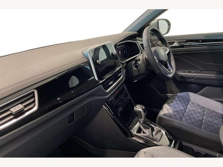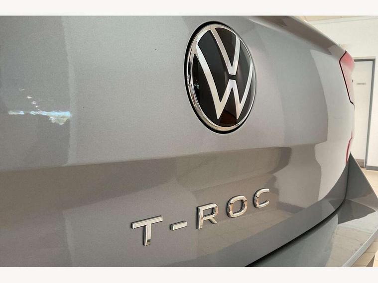 10.25" Digital cockpit pro, Advanced driver attention and drowsiness monitor, Emergency call service, Lane keeping system Lane Assist, Mobile phone interface, Modified key software - reduce switch off time for key status change to Long no motion, Online services, Park assist including front and rear parking sensors, Service interval indicator, Tailgate/trunk lid release from outside, Think blue trainer driver tips and journey analysis, Warning sound and light for front seatbelts unfastened, Wireless app connect, Battery regeneration during braking, Start/stop function with battery regeneration, DAB Digital radio, Diversity antenna for FM reception, Front and rear 6 speakers, Music playback - MP3, WMA and AAC files, Premium USB cable in choice of either Apple or Android smartphone compatibility, SD card slot, Simultaneous pairing of 2 compatible mobile devices, Title and cover art display, We Connect and We Connect Plus functionality, Auto dimming interior rear view mirror, Automatic hazard lights activation under emergency braking, Automatic headlight control with LED separate daytime running lights with coming/leaving home function, Body coloured exterior mirror housings and door handles, Electrically adjustable and heated door mirrors, Extended roof spoiler, Exterior mirrors aspherical on driver side, convex on front passenger side, External USB type C socket and charging sockets, Front windscreen wiper with intermittent wipe and 4 position delay, Heated rear window, LED 3rd brake light, LED rear combination lamps, LED rear number plate lights, Power windows with comfort operation and circuit breaker, Privacy glass for rear side windows and rear window, R-Line design body coloured bumpers, Rain sensor, Rear exhaust tailpipe, Rear fog light on one side and reversing lights on both sides, Rear side wing doors, Rear wash/wipe with intermittent wipe setting, Remote electrically foldable door mirrors, puddle lights and reverse activated passenger's door mirror, 12V power socket in centre console, 3 rear head restraints, 3 seat bench in 2nd row, 4 load lashing points in luggage compartment, Air care climatronic air conditoning system with active combination filter and 2-zone temperature control, Black roof lining, Chrome plated decorative trims, Chrome plated radiator grille inserts, air vent surrounds and light switch surrounds, Door and side trim panel with leatherette insert, Front + rear carpet mats, Front centre armrest, Front cupholders x 2, Front footwell illumination, Front reading light, Front scuff plates with R Line logo, Front seat back storage pockets, Glove compartment door with light, Instrument lighting, white adjustable panel illumination, Interior ambient lighting and surround lighting, Interior light delay, Isofix child seat preparation, Leather gearshift handle, Load-through provision with cup holder when folded down ('Unsplit rear seat bench, split folding backrest, with centre armrest), Luggage compartment lighting, Single front passenger seat, Stainless steel pedals, Storage compartment in left and right luggage area, Storage compartment in rear doors, Storage compartments in driver and front passenger doors, Sunvisors with illuminated vanity mirrors, Variable boot floor, height adjustable and removable, Driver assistance pack without proactive passenger protection - T-Roc, 3 point height adj front seatbelts + pretensioners, 3 point seatbelts in outer rear with ECE label, ABS, Child locks on rear doors, City emergency braking and pedestrian monitoring, Driver and front passenger airbag with front passenger airbag deactivation, Driver and front passenger safety-optimised head restraints, Drivers seatbelt reminder, Electronic parking brake, Electronic Stability Control (ESC) inc EDL (Electronic Differential Lock) and ASR (Traction Control), Front and rear passengers curtain airbag system including front side airbags, Hill start assist, Predictive pedestrian protection, Rear disc brakes, Two tone horn, Tyre pressure loss indicator, Volkswagen roadside assistance, Piano black decorative inserts in dashboard and front door trim panels, Trims for alloy wheels,