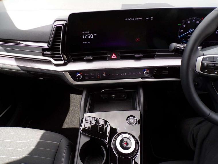 12.3" Driver display screen, 12.3" Touchscreen navigation system, 2 rear USB-C ports, Apple car play/Android Auto, Drive mode selector, Driver attention warning, E-call, Emergency stop signalling system, Forward collision avoidance assist (FCA) - city/pedestrian/cyclist/junction covering, Front and rear parking sensors, Highway Driving Assist (HDA), Intelligent speed limit assist, Kia Connect (UVO), Lane Following Assist (LFA), Lane keep assist, Low washer fluid warning, Motor driven power steering, Rear view monitor, Reversing camera system integrated into centre fascia screen, Smart cruise control with stop and go functionality, Speed limiter, Tailgate, Trip computer, Windscreen washer level indicator, Terrain mode select (Mud, Snow, Sand), 1x USB-C port in front, 6 speaker audio system, Bluetooth audio streaming, DAB Radio with MP3, Steering wheel mounted audio controls, USB C type charging ports on centre console, USB port for connection of a media device, All round electric windows with drivers and front passenger auto up/down function, Auto dimming rear view mirror, Automatic headlight control system, Automatic window defogger, Black bumpers with silver accents, Black radiator grille with silver surround, Black side sill and wheel arch body mouldings, Body colour door mirrors, Body colour exterior door handles, Electrically adjustable/heated/folding door mirrors with LED indicators, Heated rear window, High beam assist, Interior electrochromic mirror, LED daytime running lights, LED front fog lamps, LED headlamps (low and high beam - MFR type), LED High mounted stop light, LED rear combination lamp, Rain sensing wipers with aero blades, Rear fog lamp, Rear privacy glass, Rear side wing doors, Rear spoiler, Rear wiper, Satin finished beltline, Silver front and rear skid plate, Silver roof rack, Silver window surround, Tinted rear glass, Trailer stability assist, 12V power socket in front centre fascia and luggage compartment, 2nd row personal lamps, 3 seat bench in 2nd row, 3 x passenger assist grips, 40/20/40 split folding rear seat, All-round height adjustable headrests, Automatic air conditioning, Centre console storage box, Cloth/artificial leather upholstery, Cupholders in rear armrest, Door courtesy lamps, Drink holder at centre armrest, Driver and front passenger side sunvisors with illuminated vanity mirrors, Drivers seat power lumbar support, Electric height adjustable front seats, Front and rear door storage, Front Cabin, Rear & Luggage Compartment Lights, Front seat and rear pockets, Gear shift indicator, Glovebox illumination, Heated front and outer rear seats, Heated steering wheel, ISOFIX Child seat top tethers and anchor fixings outer rear seats, Leather steering wheel, Luggage area load cover, Luggage area parcel shelf, Luggage board, Luggage compartment under floor storage, Luggage net with hooks, Manual adjust steering wheel, Metal paint interior door handles, Overhead console lamp, Paddle shift controls, Rear air conditioning, Rear cabin light, Rear coat hooks, Single front passenger seat, Ventilation ducts to rear compartment, Active front headrests, All round 3-point seatbelts, Anti-lock braking system (ABS), Dual front side airbags, Dual horn, Dynamic brake control, Electronic parking brake with auto hold function, Electronic stability control with downhill brake control, Front passenger airbag cut-off switch, Front seatbelt pretensioners + load limiters, Height adjustable front seatbelts, Hill start assist control (HAC), Impact sensing auto door unlocking, Multi collision brake assist, Rear airbags, Rear door child safety locks, Rear seat alert system, Seatbelt reminder warning, Traction control, Twin curtain airbags, Twin front airbags, Tyre pressure monitoring system, Vehicle stability management, Customisable automatic door locking, Customisable automatic door unlocking, Door deadlocks, Engine Start/Stop Button with Smart Entry System, Locking wheel nuts, Smart key with motion sensor, Speed sensitive auto door locking, Thatcham category 2 security alarm and immobiliser, Visible vehicle identification number, Aluminium pattern finish centre fascia and door garnish, 19" Alloy wheels, Tyre mobility kit,