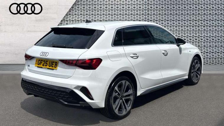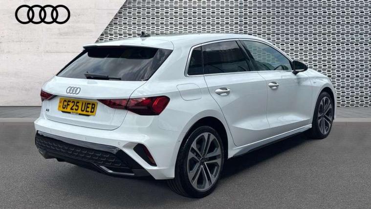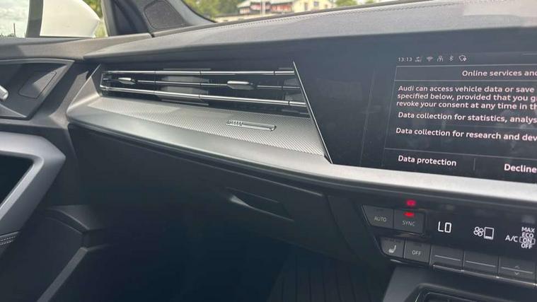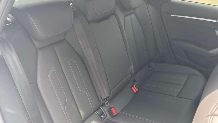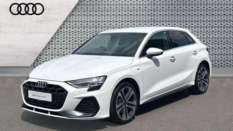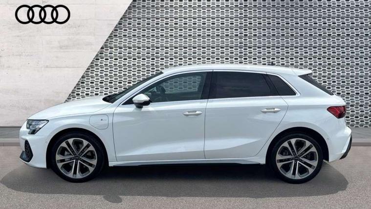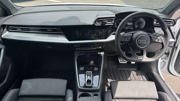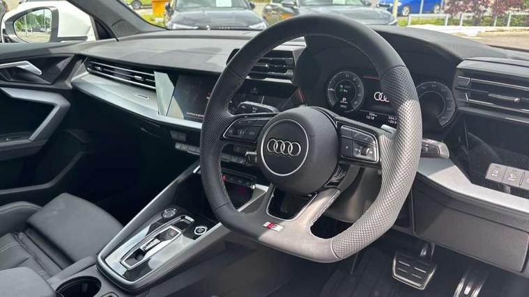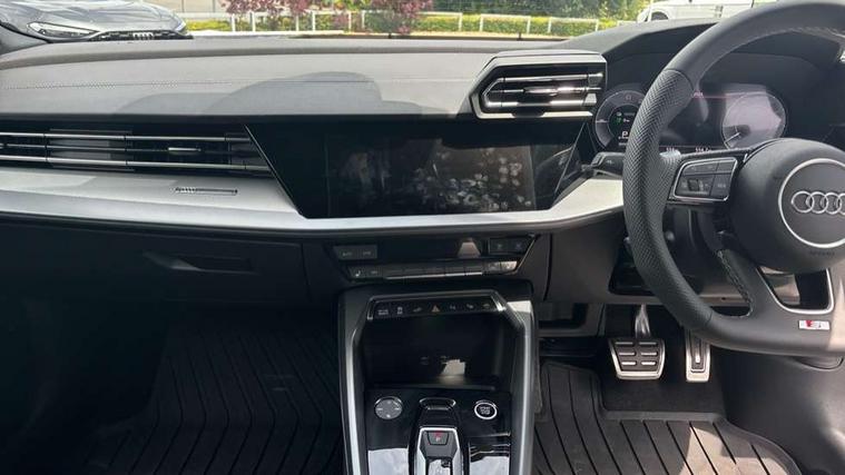 Adjustable speed limiter, Audi drive select, Audi smartphone interface with app store includes wireless Apple carplay, Android auto and Amazon alexa integration, Audi virtual cockpit plus - 12.3" full HD resolution dynamic digital instrument cluster, Automatic start/stop system with recuperation, Bluetooth interface, Camera based traffic sign recognition, Collision avoidance assistant, Cruise control, Distraction and Fatigue warning, e-Call (emergency call), Electromechanical power speed sensitive steering, Emergency assist, Lane departure warning system, MMI Navigation Plus with high resolution 10.1" colour touch screen display, Park Assist with parking system Plus, Service indicator, Trip computer, Voice control system with natural language interaction, 3 pin 10 amp domestic charging cable, CCS socket for DC charging, Charging cable for public charging, mode 3 (type 2), 32 A, Compact charging system, Industrial connector CEE 32 A, 230 V, length 1.6 m, Standard suspension, Type 2 socket for AC charging, Audi Phonebox light with wireless charging, Audi sound system - 10 loudspeakers including centre loudspeaker and subwoofer, DAB Digital radio, USB ports with charging function in the rear, Acoustic glass windscreen, All weather light, Aluminium window trim, Auto dimming frameless rear view mirror, Automatic dynamic range control, Body colour exterior mirrors, Chrome exhaust tailpipes, Dipped beam, main beam, position light and turning light, Electrically adjustable/heated/folding/auto dimming door mirrors with integrated LED indications + kerb view function for passenger side, Exterior model badging, Front and rear side air inlets in grained matt black with dark liquid chrome frame, Front electric windows, Front radiator grill in high gloss dark chrome, Heat insulating glass windscreen, Illuminated door sills with aluminium inserts at the front with S logo, Intersection light, LED 3rd brake light, LED brake lights, LED daytime running x3, LED headlights with LED rear lights and dynamic rear indicators, LED rear number plate lights, LED reverse light, LED tail lights, Light and rain sensors, Manoeuvring light, Motorway light, Privacy glass - dark tinted rear window, rear door and side windows, Rear diffuser and grill in grained matt black with inlay in dark liquid chrome, Rear electric windows, Rear side wing doors, Rear wiper, S line bumpers, S roof spoiler, Side S line emblems on front wings, Side sill trim in dark liquid chrome, Static Cornering lights, 12V socket and storage compartment in front centre console, 3 seat bench in 2nd row, 3 spoke flat bottomed leather multifunction sport steering wheel with gear shift paddles, 3-zone deluxe automatic air conditioning, 4 way electrically adjustable lumbar support for driver and front passenger, 40/20/40 split folding rear seat bench, Black cloth headlining, Black front and rear floor mats, Convenience auxiliary air conditioning, Front and rear centre armrest in artificial leather with contrasting stitching on armrests and instrument panel, Front and rear headrests, Heated front seats, Height and reach adjustable steering wheel, Manual boot compartment lid, Manually adjustable front seats, Rear centre armrest with cupholder, S badging on the steering wheel, Seat side bolsters, Single front passenger seat, Stainless steel pedals and front footrest in black, Twin leather upholstery with front sports seats S embossed logo, Aluminium interior elements pack - A3, Multi-coloured LED interior lighting package with Multi-coloured contour lighting of instrument panel - A3, 3x3 point rear seat belts, Acoustic vehicle alerting system, Driver and front passenger airbag with passenger airbag deactivation, Electronic Stabilisation Control (ESC) including ABS, ASR and EDL, First aid kit with warning triangle and 2 safety vests, Front side airbags with head airbags and interaction airbag, Hill hold assist, Pre-sense front with pedestrian and cyclist detection, Seatbelt monitoring, Tyre pressure loss indicator, Anti theft alarm, Anti-theft wheel bolts, Electronically operated child locks, Immobiliser, Remote central locking with safelock, Black dashboard, Inlay in dark aluminium spectrum, Tyre repair kit,