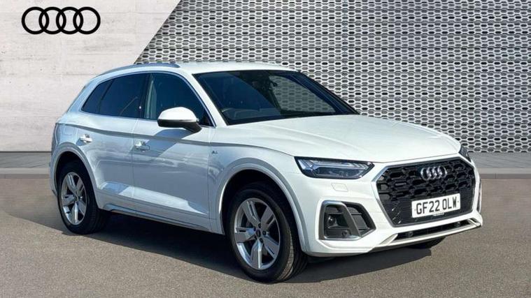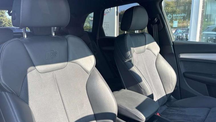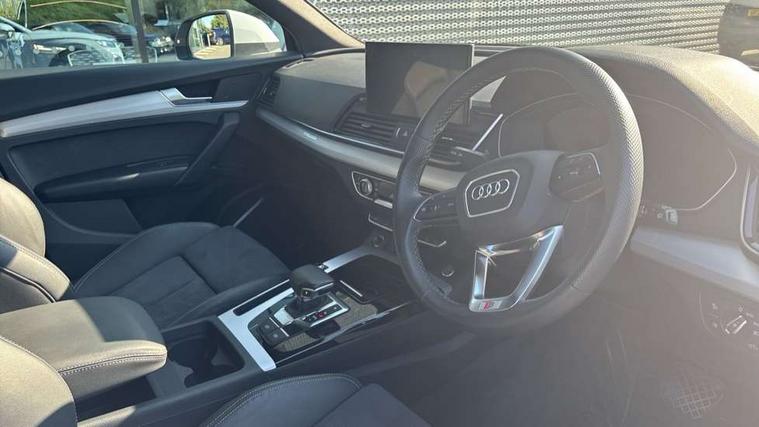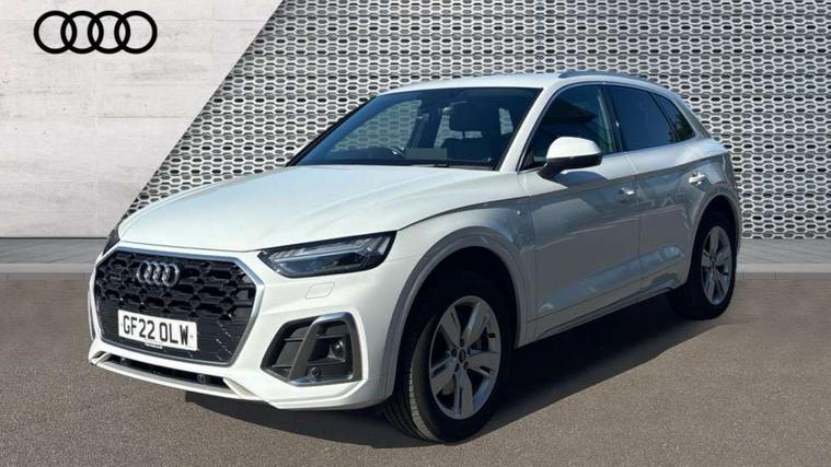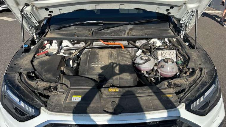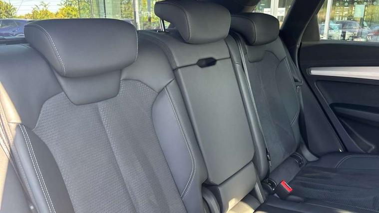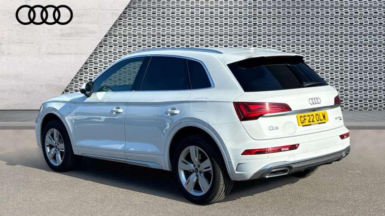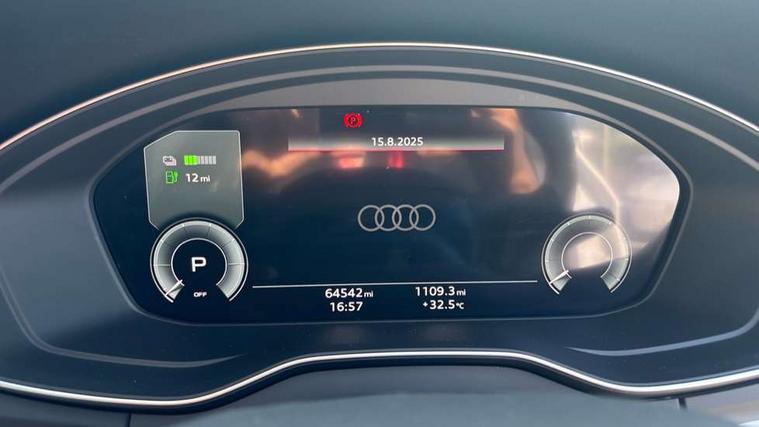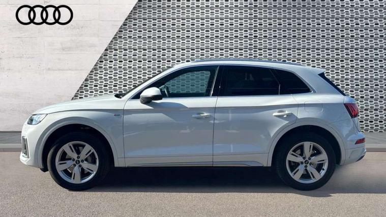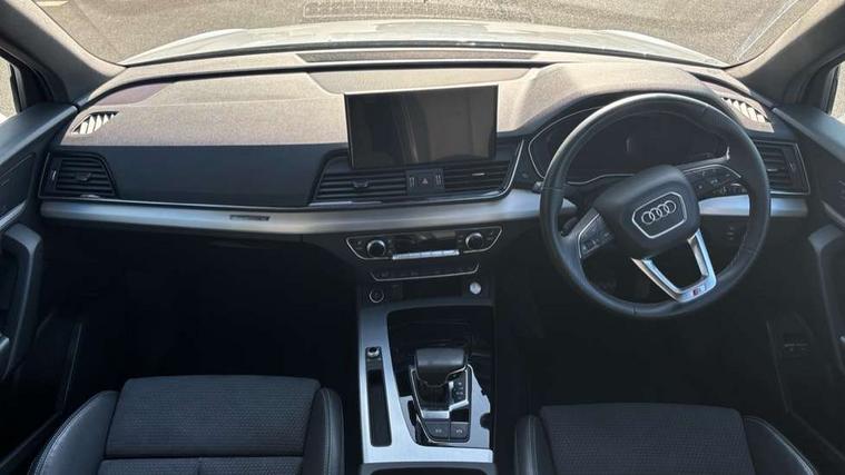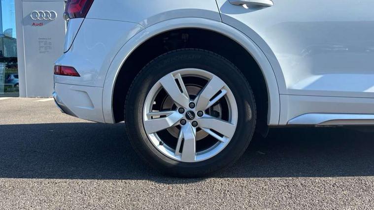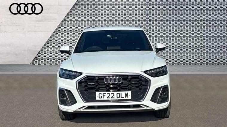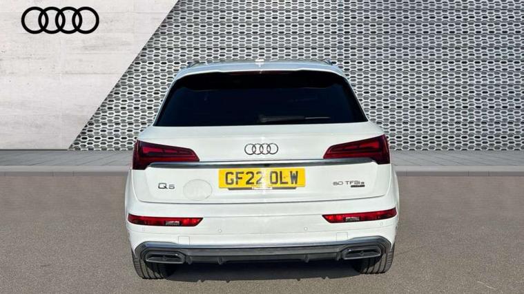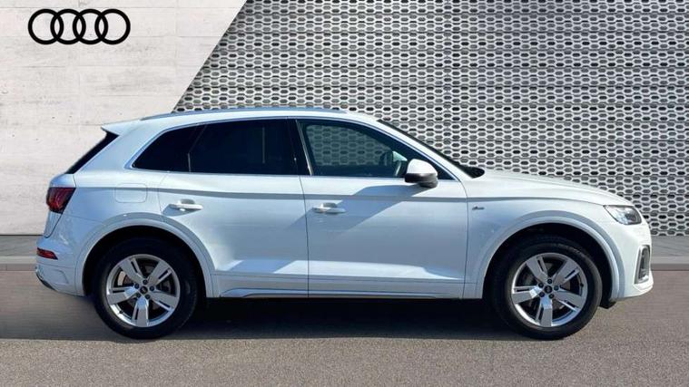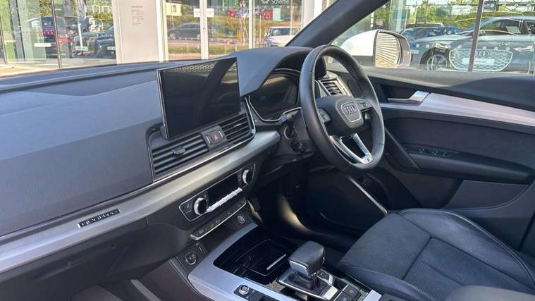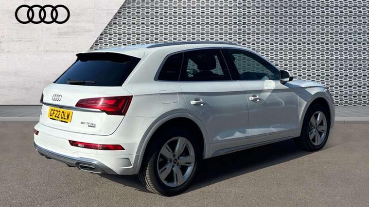 Audi connect safety and service (e-call), Audi connect with Amazon Alexa Integration, Audi drive select, Audi virtual cockpit plus with 12.3" screen and three different layout designs, Audi wireless smartphone interface, Automatic start-stop system with coasting functionality and efficiency programme, Bluetooth interface, Electro - mechanical power assisted steering, MMI navigation plus with 10.1" touch screen, Power tailgate, Reversing camera, Service interval indicator, Voice control system with Audi hotword activation "Hey Audi", 3 pin 10 amp domestic charging cable, 7.4 kW onboard charger, Dynamic suspension, Quattro on demand, Type 2 mode 3 22kW 32 amp charging cable, Type 2 socket for AC charging, 2 x USB charging port with aux input socket, DAB Digital radio, 3rd brake light, Acoustic windscreen, Aluminium roof rails, Audi matrix LED headlights with dynamic front and rear indicators, Auto dimming door mirrors, Auto dimming rear view mirror, Automatic headlights and windscreen wipers, Body colour bumpers, Body colour door mirrors, Body colour rear diffuser with matt aluminium silver surrounds, Body colour underbody protection, Chrome plated exhaust trims, Daytime running lights, Door sills in Selenite silver, Electric adjustable/heated/folding door mirrors, Front air inlet surrounds in aluminium, Front and rear electric windows, Front radiator grille in honeycomb design, Headlight washers, Lower bumpers painted in contrast Manhattan grey, Rear chrome trim strip below lights, Rear privacy glass and rear side windows, Rear side wing doors, Rear wiper, Roof bars, S Line badges on the front wings, S Line front and rear bumpers, S Line rear spoiler, S Line side skirts, 3 rear headrests, 40:20:40 split folding 3 rear bench seat in 2nd row with rear centre armrest, Black cloth headlining, Comfort front centre armrest, Contrast stitching on seats, steering wheel and gear lever gaiter, Deluxe 3 zone electronic climate control, Front/rear floor mats, Gear lever in black leather, Heated front seats, Height adjustable front head restraints, Height/reach adjustable steering column, Illuminated door sill trims with S logo, ISOFIX child seat mounting and top tether, Manual seat adjustment with 4-way electric lumbar support, Rear seat bench plus, Single front passenger seat, Sunvisors with vanity mirrors, Trunk roller cover, High gloss pack - Q5, LED interior light pack - Q5, 3 point seatbelts on all seats, 6 airbags - Driver, front passenger, curtain and side airbags, Electrically operated child locks on rear doors, Electromechanical parking brake, Electronic stabilisation control including ABS, ASR and EDL, Front passenger airbag deactivation, Hill descent control, Hill hold assist, Multi collision brake assist, Pop-up bonnet for pedestrian protection, Pre sense city, Seat belt force limiter, Seatbelt monitoring, Tyre pressure warning, Warning triangle and first aid kit, Anti theft alarm, Anti-theft wheel bolts, Keyless Go access/ignition system, Remote central locking, Matt brushed aluminium inlays, Tool kit, Tyre repair kit,