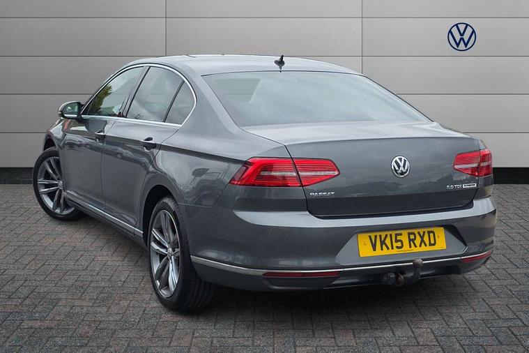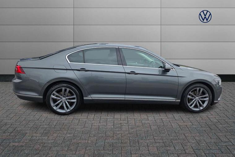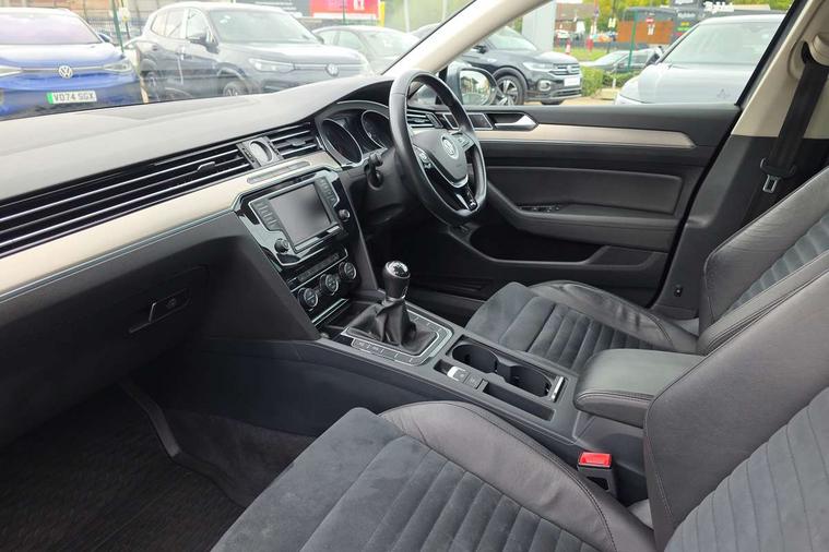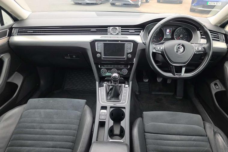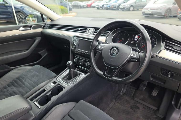 Adaptive cruise control, Analogue clock, Door/boot open warning light, Driver alert system, Exterior temperature gauge with frost alarm, Low washer fluid warning light, Multi function display colour screen, Multifunction computer, Press and drive key, Remote boot release, Remote fuel flap release, Service interval indicator, Speed limiter, Speed sensitive power steering, Warning buzzer and light for front seatbelts unfastened, Composition media system with Radio/CD/MP3, DAB Digital radio, MDI with USB/iPod connection cables, Multimedia socket for external audio source, SD card slot, Auto dimming driver's door mirror, Auto dimming rear view mirror, Automatic activation of hazard warning lights, Automatic headlights, Body colour bumpers, Body colour door handles, Body coloured door mirrors, Chrome fog light surround, Chrome louvres in grille, Chrome side sills, Chrome side window surrounds, Chrome surround for air intake, Coming/leaving home lighting function, Electric folding mirrors, Electric front windows, Electric rear windows, Electrically adjustable and heated door mirrors, Front fog lights with static cornering function, Headlight range control, Heated rear window, Heated windscreen washer jets, Rain sensor, Windscreen wipers/ intermittent wipe + 4 position delay, 12V socket in luggage compartment, 3 rear head restraints, 3 spoke multi-function leather steering wheel, 3 Zone electronic climate control with automatic air recirculation, 4 boot load lashing points, 60/40 split folding rear seat, Driver's cushion tilt adjust, Entry lights on doors, Front + rear carpet mats, Front and rear interior lighting with delay and dimming function, Front centre armrest with 12v socket, Front centre armrest with storage compartment, Front comfort seats, Front cupholders x2 with covers, Front door pocket bottle holders, Front/rear reading lights, Heated front seats, Height/reach adjust steering wheel, Isofix system on outer rear seats, Leather gearknob, Load through provision, Lockable, illuminated, cooled glovebox, Luggage compartment lighting, Rear centre armrest with cupholder and storage, Storage compartment in driver's door, Storage compartment in passenger's door, Storage compartment in rear doors, Storage compartment in roof console, Storage pockets in backrests of front seats, Sunvisors with illuminated vanity mirrors, Variable boot floor, Ambient lighting pack - Passat, 3 rear 3 point seatbelts, ABS, brake assist and EBD, Automatic post collision braking, Curtain airbags, Driver/Front Passenger airbags, Driver/Front passenger WOKS head restraints, Drivers knee airbag, Electronic parking brake with auto hold, ESP with EDL + ASR, First aid kit, Front assist including city emergency braking, Front side airbags, Height adjustable front 3 point seatbelts + pretensioners, Hill hold function, Passenger airbag deactivation system, Pre crash system, Rear side airbags, Warning triangle, Alarm with interior protection, Electronic engine immobiliser, Keyless Start, Remote central locking with 2 remote folding keys, Chrome air vent and instrument surround, Piano black centre console, White instrument dials, Full size alloy spare wheel,