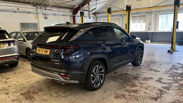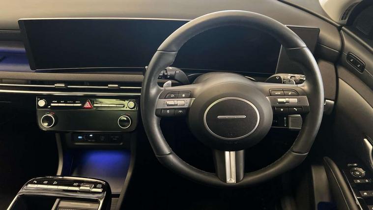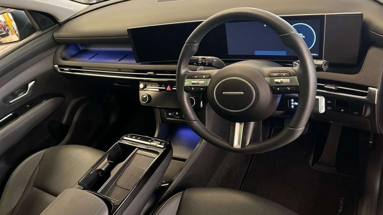 12.3" LCD display with driver's supervision instrument cluster, 12.3" widescreen navigation with bluelink and mapcare, Blind spot view monitor, Bluetooth system, Cruise control - smart adaptive speed control with stop and go function, Digital clock, Drive mode selector, Driver attention warning, E-call, Emergency stop signalling system, Forward Collision Avoidance Assist (FCA) - Car, Pedestrian and Cycle, Forward Collision Avoidance Assist Junction Turning (FCAJX), Front and rear parking sensors, Front, rear and side parking distance warning, Highway Driving Assist (HDA), Hyundai road side assistance, Intelligent speed limit assist, Lane follow assist, Lane keep assist, Over the air updates(OTA), Parking collision avoidance assist (PCA), PAS, Rear camera and guidance parking system, Rev counter, Smart power tailgate, Surround view monitor, Tailgate open warning light, Trip computer, Trip odometer, Voice recognition, Water temperature gauge, Windscreen washer fluid sensor and warning indicator, Wireless Apple CarPlay/Android Auto, Wireless phone charging pad, 2 front and 2 rear USB-C ports, DAB Digital radio, Krell premium audio system with 8 speakers and subwoofer, Steering wheel mounted audio/phone controls, Adjustable intermittent front windscreen wipers with aero wiper blade, Auto dimming rear view mirror, Automatic defog system, Automatic headlights with dusk sensor, Automatic windscreen wipers with rain sensor, Black wheel arches, Body colour bumpers, Body colour door mirrors with integrated indicators, Body colour exterior door handles, Electric tilt/slide panoramic sunroof, Electrically adjustable, heated and power folding door mirrors, Follow me home headlights, Front and rear electric windows with anti-trap mechanism and one touch control, Front fog lights, LED 3rd brake light, LED daytime running lights, LED rear lights, Matrix LED headlights, Positioning Lights - LED, Privacy glass - Rear windows and tailgate, Rear side wing doors, Rear wash/wipe with intermittent wipe setting, Roof rails, Tinted glass with windscreen shade band, Trailer stability assist, 12V power outlets in front console and luggage compartment, 3 seat bench in 2nd row, 40/20/40 split folding rear seat, 64 colours interior ambient lighting, Adjustable head restraints (Up and down), Cupholders in rear armrest, Door courtesy lights, Driver and passenger sunvisors with illuminated LED vanity mirrors, Driver's seat electric adjustments, Driver's seat memory, Front and rear door pockets, Front armrest with storage box, Front centre console and door bottle holders, Front passenger's seat electric adjustments, Heated front seats, Heated rear seats, Heated steering wheel, Height/reach adjustable steering column, Illuminated/air conditioned glove compartment, ISOFIX child seat anchorage points attached on outer rear seats, Leather upholstery, Leather wrapped steering wheel and gear knob, Luggage compartment lighting, Luggage cover, Luggage hooks, Luggage net, Map and reading lights, Rear seat remote folding function, Rear side window sunblind, Reclining rear seats, Retractable load cover, Single front passenger seat, Sunglasses holder, Three zone climate control, Touch sensitive climate controls with temperature dials, TUCSON branded metal door scuff plate, Underfloor boot compartment, Ventilated front seats, Trailer wiring package - Tucson, 3x3 point rear seatbelts, Active bonnet, Airbag - Front, front side, curtain and centre front airbags, Anti-lock brake system (ABS), Brake assist function, Childproof rear door locks, Curtain airbag roll over sensor, Downhill brake control, Electric parking brake, Electronic stability control, Front and rear seatbelt reminder, Front passenger airbag deactivation switch, Front seatbelt pretensioners, Hill start assist control (HAC), Multi-Collision braking, Outer rear seatbelt height adjustment, Seatbelt height adjustment for front seats, Traction control, Tyre pressure monitoring system with individual tyre pressure display - TPMS, Vehicle stability management, Deadlocks, Immobiliser, Locking wheel nuts, Remote control central locking, Smart key with keyless entry and engine start/stop button, Speed sensitive auto door locking, Thatcham category 1 alarm, 19" Alloy wheels, Tyre repair kit,