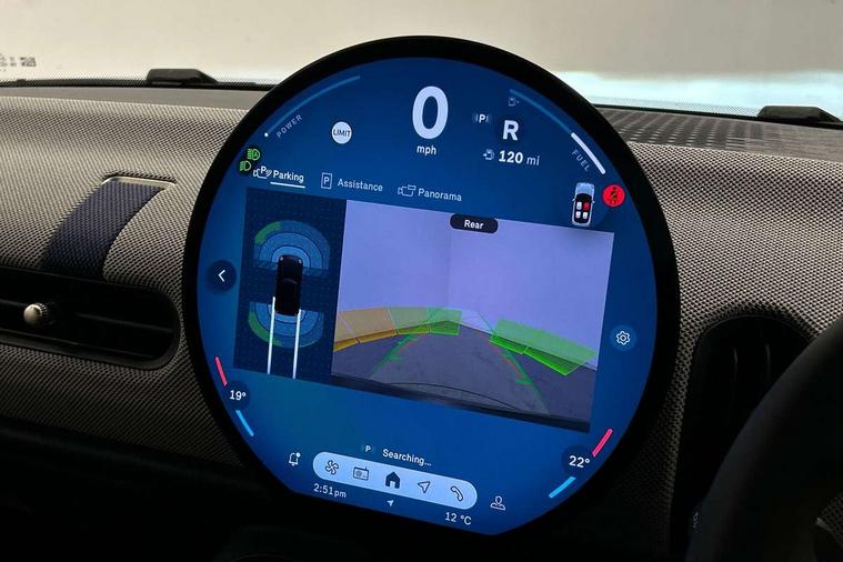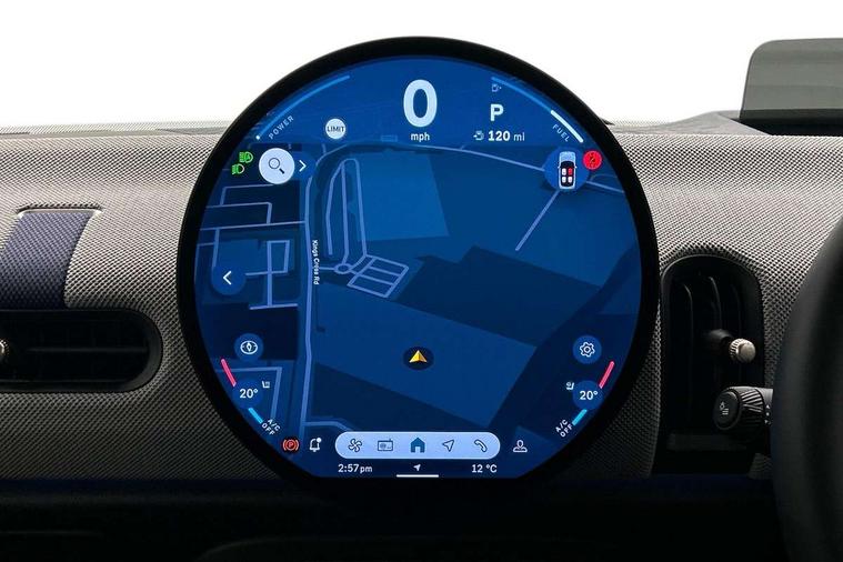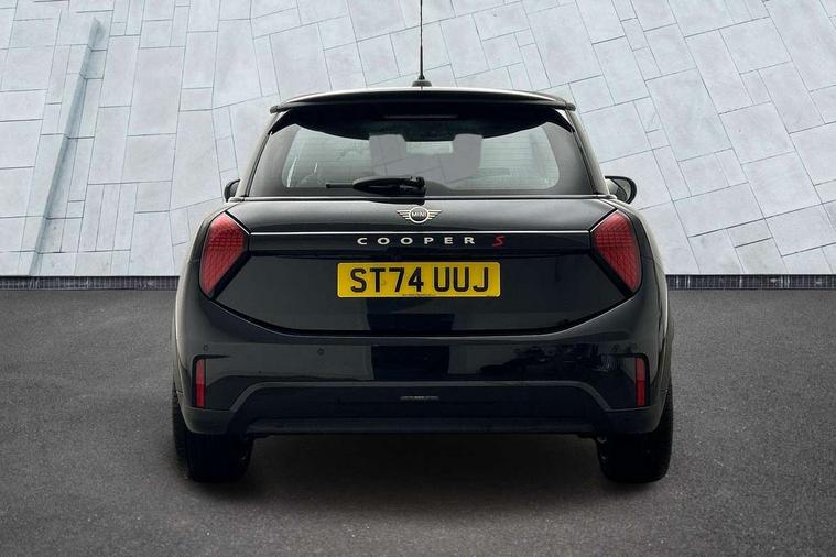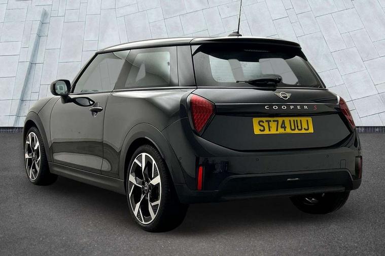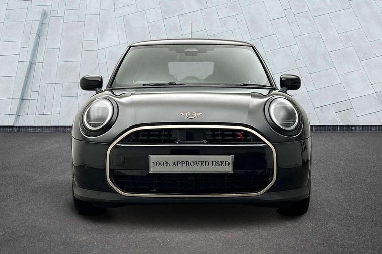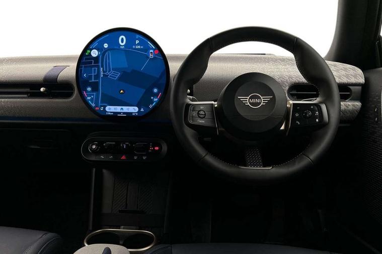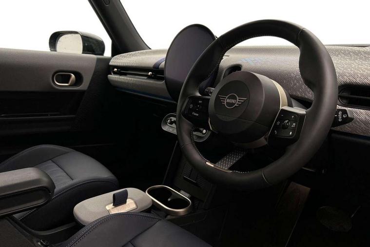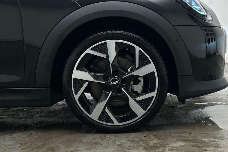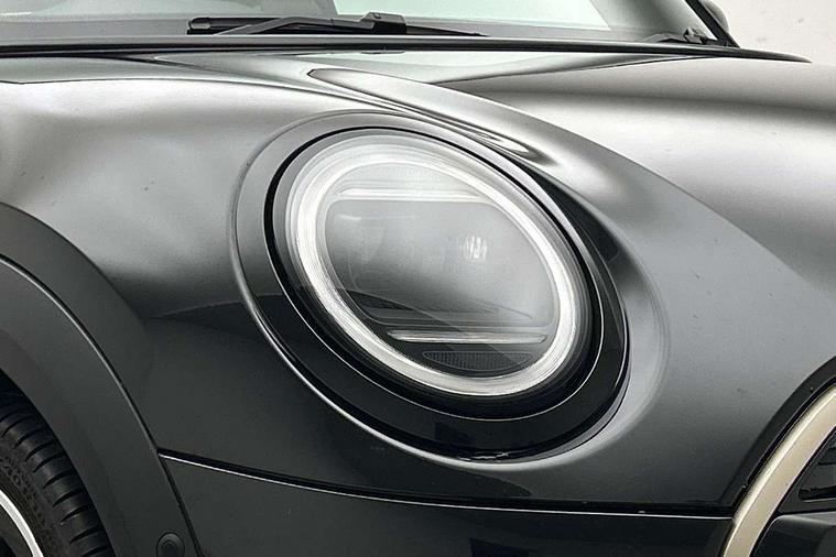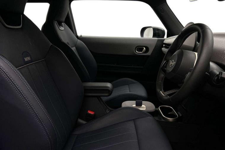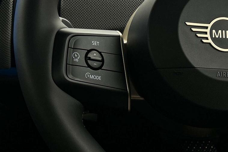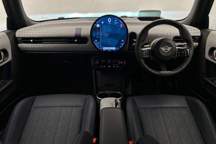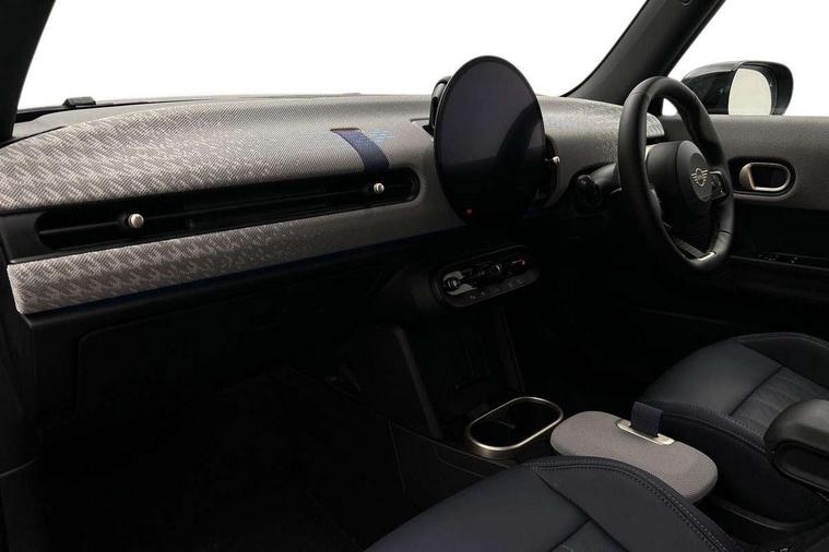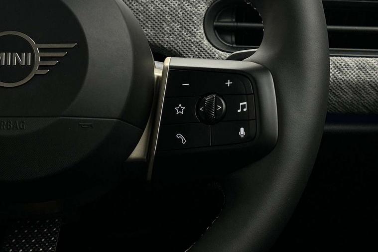 Central toggle bar, Circular OLED Screen, Compatible mobile phone bluetooth with audio streaming, Cruise control, Digital instrument cluster, Electro-mechanical speed dependant steering assistance, Emergency call service, MINI Experience Modes, Mini navigation system, On board computer, Service interval indicator, 7 speed steptronic transmission with double clutch, DAB Digital radio, Personal eSim, Adaptable light signatures, Auto headlights, Electric adjustable heated door mirrors, Electric front windows, Heated rear window, Heated windscreen washer jets, LED daytime running lights, LED indicator lights, LED rear lights, Logos in Vibrant Silver, Rain sensor window wipers, Rear fog lights, Rear window wiper, Vibrant Silver Grill Surround, 2 seat bench in second row, 2 zone automatic air conditioning, 60/40 rear seat bench, Ambient lighting, Cupholders, Dark headliner, Floor mats, Front and rear head restraints, Front compact armrest, Heated steering wheel, Height adjustable passenger seat, Lidded storage box in grey knit, Luggage compartment lighting, Single front passenger seat, Sport Vescin Steering Wheel black with vibrant silver accents, Sunvisors with vanity mirrors, Vescin synthetic leather upholstery, Driving assistant pack - Cooper Hatchback, Level 1 pack - Mini Hatchback, Park assistant pack - Cooper Hatchback, 3 point seatbelts on all four seats, 6 Airbags - front, side, head and seat belt tensioners, Acoustic pedestrian protection, Anti-lock braking system (ABS), DSC - Dynamic Stability Control, Electronic parking brake, Front and rear disc brakes, Front ISOFIX (iSize), Front passenger airbag deactivation, Traction control, Tyre pressure monitoring system, Alarm, Immobiliser, Remote central locking, Blue decorative dash strap, Light Beige/Grey dash knit, Tyre repair kit,