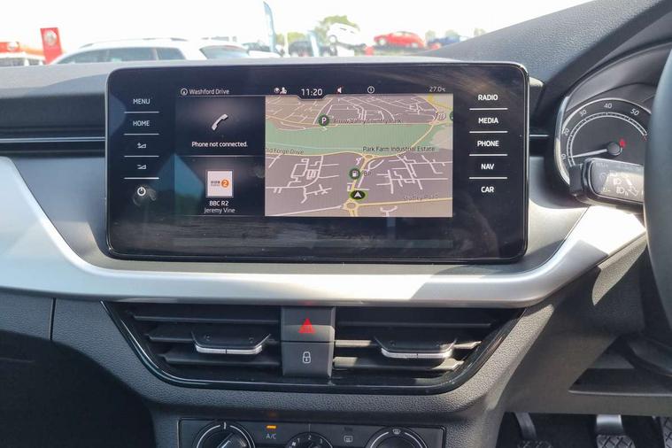 Amundsen satellite navigation with 9.2" glass colour touchscreen display, web radio, voice control and traffic sign recognition, Bluetooth system, E-call, Front assist system, Gesture control, PAS, Service indicator, Speed limiter, Wireless Smartlink for Apple CarPlay (wired for Android Auto), 8 Speakers, Auxiliary input socket, DAB Digital radio, Body colour bumpers, Body colour door mirrors and handles, Chrome grille surround, Dimming rear view mirror with black surround, Electrically adjustable and heated door mirrors, Front and rear electric windows, Headlight range control, Heated rear window, LED rear lights - low functionality, LED third brake light, Light sensors, Privacy glass, Rain sensor, Rear fog lights, Rear side wing doors, Rear wiper, 12V Accessory socket in centre console, 3 seat bench in 2nd row, Chrome inner door handles, Cloth upholstery, Front head restraints, Glove compartment with illumination, Height adjustable driver and front passenger seats - manual, Ice scraper, Isofix child seat fittings on outer rear seats, ISOFIX on front passenger seat, Manual lumbar support for front seats, Rake/reach adjustable steering wheel, Reading lights, Single front passenger seat, Sun visors with illumination on front passenger, Textile floor mats, Third rear headrest, Top tether for front passenger seat, Umbrella in driver's door, 3x3 point rear seatbelts, Airbags - driver and front passenger, ESP, Front passenger airbag deactivation switch, Front side airbags with curtain airbags, Hill hold control, Manual parking brake, Manual rear child locks, One tone horn, Rear disc brakes, Seatbelt reminder for driver an co-driver, Traction control, Tyre pressure monitor, Anti-theft alarm system with interior monitoring, backup horn, towing protection and remote central locking with SAFE system, Anti-theft wheel bolts, Electronic engine immobilizer, Silver haptic decorative insert on the dashboard with hot stamping in glossy black,