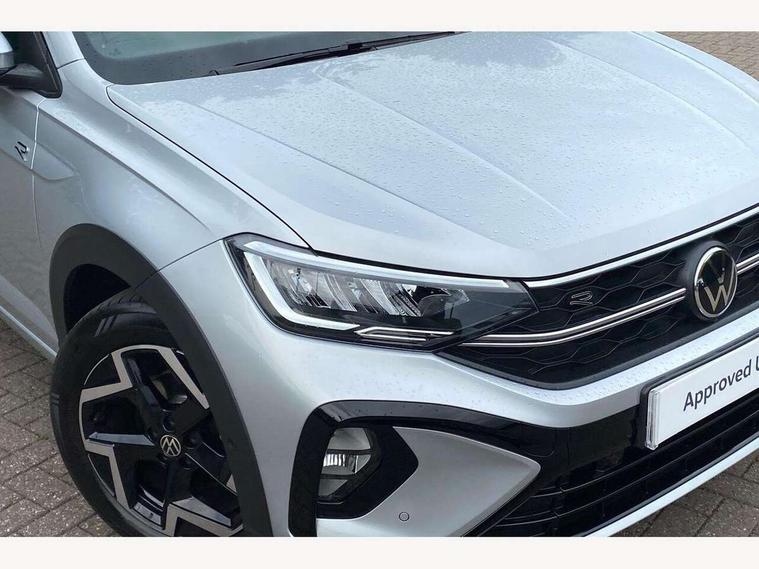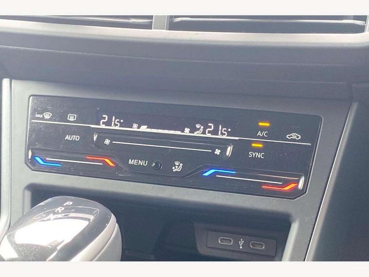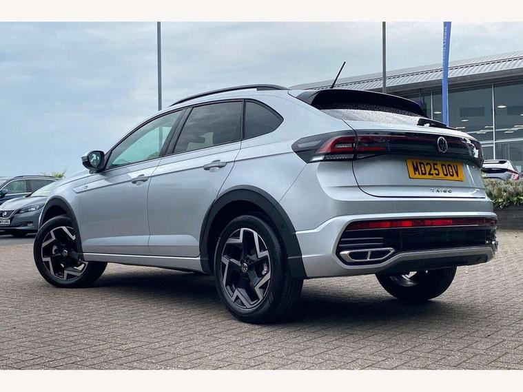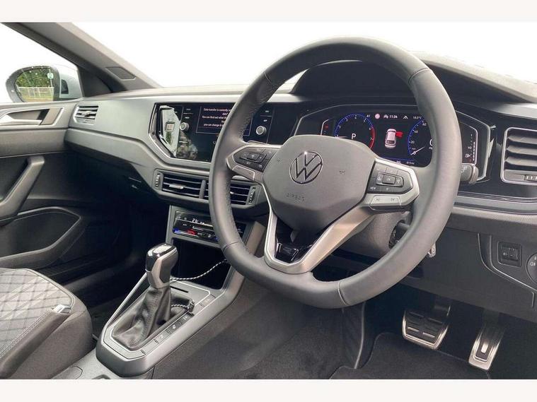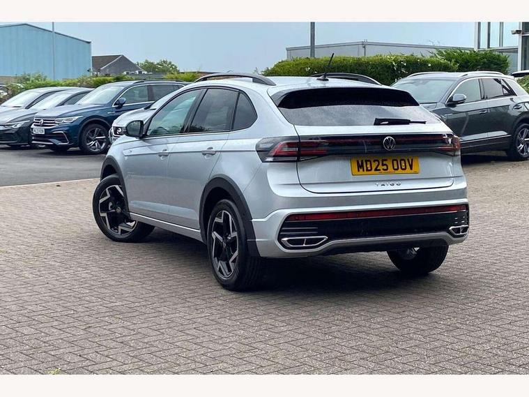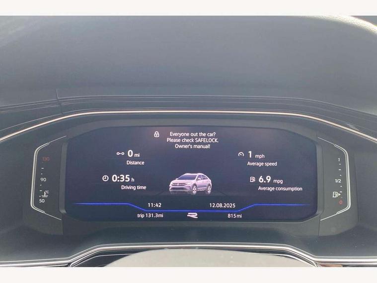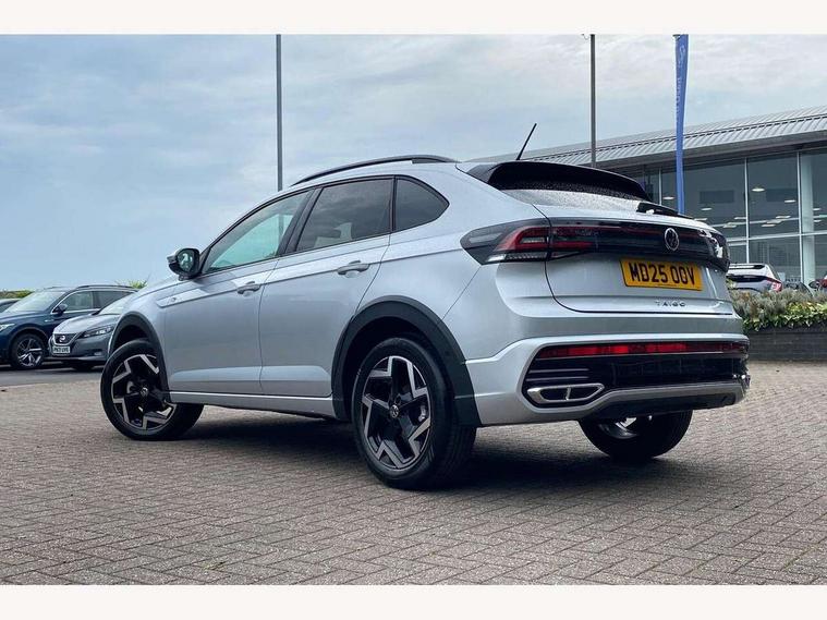 Adaptive cruise control, Advanced driver attention and drowsiness monitor, App-Connect including App-Connect Wireless, Digital cockpit pro - 10.25" high resolution TFT dash display screen with customizable menus and information, Driving profile selection, e-Call (emergency call), Power Steering, Travel assist including emergency assist, Washer fluid level indicator, Wireless Charging including Bluetooth, Start-stop system with battery regeneration (recuperation - energy recovery during braking), XDS electronic differential lock for improved traction and handling, Digital radio reception (DAB+), Diversity antenna for FM reception, WeConnect plus, Ambient lighting with logo projection, Aspherical driver's exterior mirror, Auto headlights, Body coloured bumpers, Bumpers in R-Line style, Electric windows, External USB type C socket and charging sockets, Front scuff plates with R-Line logo, LED rear combination lamp, LED third brake light, Left convex exterior mirror, Power folding adjustable/heated exterior mirrors and front passenger exterior mirror lowering function, Rear fog light on one side, reversing light on both sides, Rear side wing doors, Rear wash/wipe with intermittent wipe setting, 12V socket in centre console, 2 front reading lights, 3 rear head restraints, 3 seat bench in 2nd row, Air care climatronic air conditoning system with active combination filter and 2-zone temperature control, Black carpets, Black roof lining, Child seat anchor for child seat system i-Size, 2x top tether and child seat anchor in front on front passenger side, Chrome bezel for instrument cluster, vents, door handles + gear shift, Driver and front passenger seat height adjustment, Front + rear carpet mats, Front centre armrest, Front footwell illumination, Front sports comfort seats, Height and reach adjustable steering wheel, Interior ambient lighting and surround lighting, Karoso artvelours cloth upholstery, Leather trimmed gear knob, Leather wrapped multifunction steering wheel, Luggage compartment floor, Luggage compartment light, Lumbar support for driver's and front passengers seat, Seat covers in grey + titanium black, Single front passenger seat, Split folding backrest with centre armrest and unsplit rear seat bench, Stainless steel pedals, Storage compartment under front seats, Sun visors with illuminated vanity mirrors, Chrome Package - Taigo, Drivers assistance pack - Taigo, Light and Sight pack including High beam assist - Taigo, 2 x 3-point seatbelts/outer rear seats with ECE label, 3-point seat belts in front with pretensioner and height adjustment, 3-point seatbelt for centre rear seat, Adaptive driver and front passenger airbags with passenger airbag deactivation function, Driver and front passenger safety-optimised head restraints, Electronic stability control, Extended and predictive pedestrian/ cyclist protection, Front and rear disc brakes, Front curtain and side airbags with center airbag, Hill start assist, Manual rear child locks, Single tone horn, Tyre pressure loss indicator, Anti-theft alarm system with interior monitoring, backup horn, and towing protection, Grey anodised matte decorative inserts in dash and front door panels, Low rolling resistance tyres,