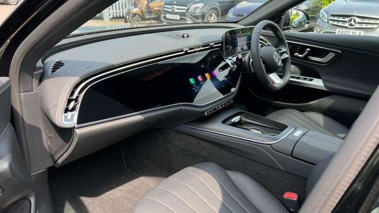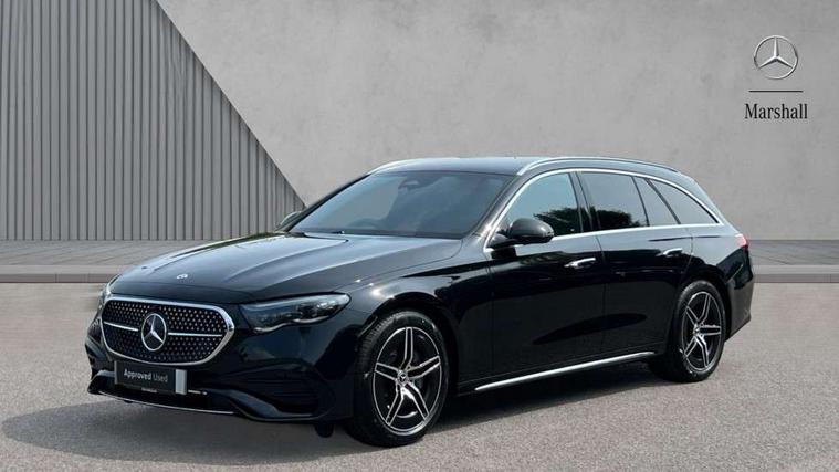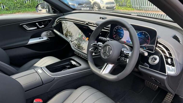 12.3" Driver display screen, 14.4" central media display, 5G Communications module, Attention assist, Augmented reality navigation, Blind spot assist, Brake wear warning display, Direct steer speed sensitive steering, Easy-pack tailgate - Powered opening/closing automatically, ECO start/stop function, Emergency call assistance, Evasive manoeuvre support, Fluorescent jacket for driver, Hard disc navigation, Head up Display, MBUX navigation premium, MBUX superscreen with 12.3" passenger display and privacy function, MBUX voice control, Mercedes connect me, Outside temperature display, Preinstallation for live traffic, Remote bootlid closing, Remote Services Premium, Selfie and video camera, Service indicator (ASSYST), Status display for rear seat belts in instrument cluster, Trip computer in multifunction display showing current fuel consumption, Wireless charging, Wireless smartphone integration with Apple CarPlay and Android auto, 48V Mild hybrid technology, 66 litre fuel tank, 9G TRONIC automatic transmission, Agility control suspension with selective damping and lowering, Bluetec emission control, Diesel particulate filter, Integrated starter generator Gen 2, Rear air suspension with level control, Sporty engine sound system, 2 USB ports in centre console, 2 USB ports in the rear, Burmester 4D premium sound system, DAB Digital radio, Preinstallation for MBUX Entertainment Plus, Sound visualisation, 3rd brake light, Acoustic glass, Adaptive brake lights, Aerial integrated in rear window, AMG bodystyling, Auto dimming driver's door mirror, Auto dimming rear view mirror, Black radiator grille, Chrome roof rails, Digital air vent control, Electric folding door mirrors, Electric windows with one touch opening/closing and obstruction sensors, Electrically adjustable and heated door mirrors, Heat insulating privacy glass, LED daytime running lights, LED digital light with adaptive highbeam assist plus, Pre-installation for roof rail systems, Rear side wing doors, Rear wiper, Surround lighting with logo projection, 3 seat bench in 2nd row, 4 way lumbar support, Active ambient lighting, AMG brushed stainless steel sports pedals with rubber studs, AMG floor mats, AMG line interior, Automatic child seat recognition sensor, Central stowage compartment with USB socket for use with Android Auto and Apple CarPlay, Comfort seats, Courtesy lights in rear grab handles with reading light functionality, Folding rear seat backrest, Front centre armrest with stowage compartment, Glove compartment - lockable, air conditioned and illuminated, Head restraints for driver and front passenger (four-way adjustability) and in rear (two-way), Heated front seats, Illuminated door sills, Multifunction sports steering wheel in nappa leather, Roof liner in black fabric, Seat occupancy sensor for front passenger seat, Single front passenger seat, Steering wheel touch control buttons for audio and onboard settings, Sunvisors with illuminated vanity mirrors, Thermotronic 4 zone climate control, Keyless Go comfort package - E Class, Leather package - E Class, Memory package - E Class, Parking package with 360 degree camera - E Class, USB plus package - E Class, 3x3 point rear seatbelts, Active bonnet pedestrian safety measure which detects an impact and raises bonnet, Adaptive brake system with HOLD function and brake drying in the wet, Airbags - sidebag for driver and front passenger with combined thorax/pelvis bag, Anti-lock braking system (ABS), Automatic front passenger airbag deactivation, Central airbag, Childproof locks manually operated for rear doors and electrically operated for rear power windows, Driver and adaptive front passenger airbags, Electronic parking brake, Electronic Stability Programme, Hill start assist, ISOFIX child seat attachment points two outer rear seats, Knee airbags, Pedestrian protection, Pre-Safe anticipatory safety system, Tyre pressure monitoring system, Warning triangle and first aid kit, Window airbags, Alarm system with interior monitoring, Central locking with interior switch, automatic locking and crash sensor with emergency opening function, Dashcam, Digital vehicle key, Guard 360 degree vehicle protection plus, Increased anti theft protection, Urban guard vehicle protection plus, Centre console trim in open pore black ash wood, Dash trim deleted for MBUX Superscreen, 19" AMG 5 twin spoke bi colour alloy wheels, Summer tyres, Tirefit,