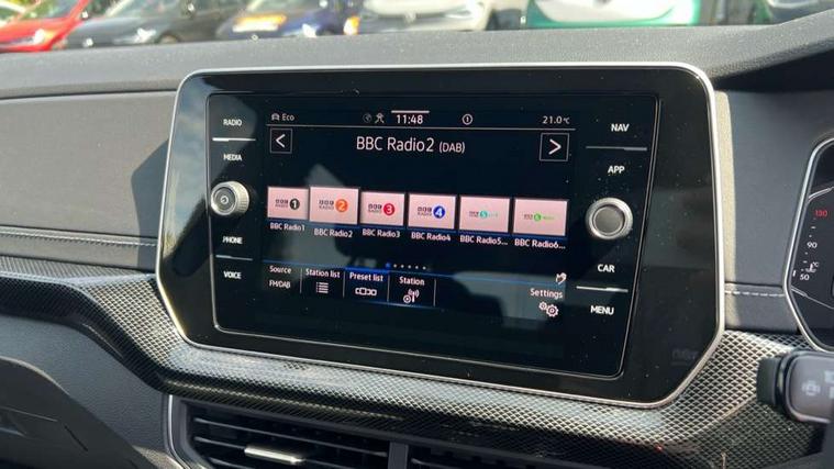 'Lights On' Reminder warning buzzer, 10.25" Digital cockpit pro, Advanced driver attention and drowsiness monitor, Blind spot monitoring, Car information display, Driver profile selection including ECO function, Dynamic road sign display, E-Sim card for online connectivity, eCall emergency call system, Front and rear parking sensors, Front assist, forward collision warning, autonomous emergency braking and speed limiter, Low washer fluid warning light, Multifunction computer with visual gear change recommendation for fuel consumption, Multifunction front facing camera for distance control, Operating permit alteration, Power assisted steering, Predictive adaptive cruise control, Preparation for navigation system with media and internet package, Preparation for We connect and We connect plus, Semi-automated driving assistance, travel assist including lane keeping system Lane Assist and emergency assisst, Speedo, rev counter, electronic odometer, trip, service interval display, exterior temperature and fuel gauge, Warning sound and light for doors and tailgate open, Warning sound and light for front seatbelts unfastened, Wireless Car net app connect with Apple CarPlay, combined functionality of Apple CarPlay/Android Auto and MirrorLink, Wireless charging, Misfuel prevention device, Start-stop system with battery regeneration (recuperation - energy recovery during braking), 2 USB C ports in front, 2 USB charging sockets on the centre console in the rear charging capacity upto 45W, Diversity antenna for FM reception, Music playback - MP3, WMA and AAC files, Radio, Automatic dimming interior rear view mirror, Automatic hazard lights activation under emergency braking, Automatic headlight control with LED separate daytime running light and coming home and leaving home feature, Body colour door handles, Body colour door mirrors, Body coloured bumpers, Dynamic headlight range control with self adjusting whilst driving, Electric folding door mirror, adjustable, heated with front passenger exterior mirror lowering function, Exterior mirrors convex on the left and aspherical on the right, Front and rear electric windows, Front door sill protectors with R-Line logo, Galvanised body, Heat insulating and laminated safety glass windshield, Heat insulating darkened glass in side and rear windows, High Beam Assist, automatic sensing for switching between dipped and main beam, LED rear combination lights, LED third brake light, Lower door sills and door pillars in black, Privacy glass for rear side windows and rear window, Rain sensor, Rear fog light on one side, reversing light on both sides, Rear side wing doors, Rear window aerial, Rear window wiper with intermittent control, Reflectors in all doors, Scuff plates, Tailgate with integrated roof spoiler, 12V Accessory socket in centre console, 2 Front and rear reading lights incorporating LED technology, 3 rear head restraints, 3 seat bench in 2nd row, 60/40 split folding rear seat backrest, Air care climatronic 2 zone air conditioning system, Ambient lighting, Brushed stainless steel pedals, Chrome plated radiator grille inserts, air vent surrounds and light switch surrounds, Cloth upholstery, Comfort front sport seats, Door and side trim panel, Drawer under drivers seat, Driver and front passenger sunvisor with vanity mirror, Dust and pollen filter, Front + rear carpet mats, Front centre armrest with storage compartment, Front footwell illumination, Front seat back storage pockets, Glove compartment door with light, Heated front seats, Heating and fresh air system with 4 stage blower, Height/reach adjust steering wheel, Instrument lighting white adjustable panel illumination, Interior light with switch off delay and dimmer, Isofix anchors for child seats on outer rear seats and front passenger seats, Leather gearshift handle, Leather wrapped multifunction steering wheel, Luggage compartment floor, Luggage compartment lighting, Manual front seats with height adjustment, Padded dashboard, Removable luggage compartment cover, Single front passenger seat, Storage compartment in drivers and front passengers door, Titanium black roof lining, Unsplit sliding rear seat bench, 3 point outer rear seat belts with ECE label, 3 Point seatbelt for centre rear seat, Anti-lock Braking System (ABS) with Hydraulic Brake Assist (HBA), Automatic post collision braking system, Disc brakes in front, Disc brakes in rear, Driver and front passenger safety-optimised head restraints, Drivers and Front Passengers airbags with front passengers airbag deactivation switch, ESC with EDL and ASR (traction control), Extended and predictive pedestrian/cyclist protection, Front and rear passenger curtain airbag system including front side airbags, Height adjustable front 3 point seatbelts + pretensioners, Hill start assist, Pre crash preventive occupant protection, Proactive passenger protection system in combination with front assist, Rear door child safety locks, Rigid safety cell with front and rear crumple zones, Single tone horn, Tyre pressure loss indicator, Volkswagen roadside assistance, Alarm with interior protection, Anti theft alarm system, Electronic engine immobiliser, Remote tailgate unlocking using key fob, Titanium Black Decorative inserts - R Line, Low rolling resistance tyres,