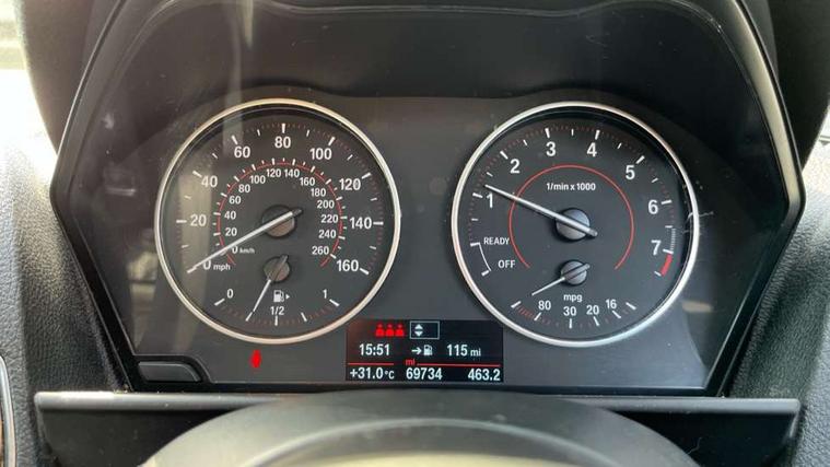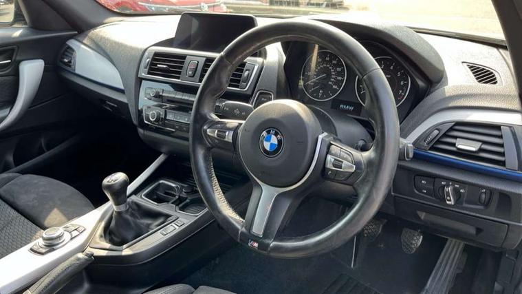 'Lights On' Reminder warning buzzer, BMW Teleservices, Brake force display, Engine start/stop button, Oil level indicator, On board computer, On board diagnostics, Outside temperature display, Service interval indicator, Speed limiter, Drive Performance Control, Auxiliary point for auxiliary devices, BMW professional radio with CD player, DAB Digital radio, Body colour bumpers, Body colour door handles, Body coloured door mirrors, Chrome exhaust tailpipe, Chrome kidney grille with black vertical slats, Electric front windows + one touch + anti-pinch, Electric rear windows, Electrically adjustable door mirrors, Follow me home headlights, Green tinted heat insulating glass, Heated door mirrors, Heated windscreen washer jets, M aerodynamic bodystyling, Rain sensor including auto headlights activation, Rear wash/wipe, Welcome lighting, 12V power socket in centre console, 12V power socket in passenger footwell, 4 grab handles, 60/40 split rear seats, Anthracite Velour floor mats, Door armrests, Door sill finishers with illuminated M designation, Folding rear seat head rests, Front door storage bins, Front folding/sliding centre armrest with storage, Front head restraints, Front sports seats with electric side bolster adjustment, Front/rear courtesy lights with soft on/off dimming, Glovebox, Individual anthracite headlining, Isofix rear child seat preparation, Leather gear knob and handbrake grip, Load restraint lashing eyes, M sports leather steering wheel, Multifunction steering wheel with audio controls, Reach + rake adjustable steering column, Storage compartments in doors, ABS/EBD, Automatic Stability Control (ASC), BMW emergency call, Child locks on rear doors, Cornering brake control (CBC), Crash sensor, Driver/Passenger airbags (Impact dependent), Drivers knee airbag, DSC+, Dynamic brake control, Dynamic Traction Control - DTC, Front passenger airbag deactivation, Front side airbags, Hill start assist, ITS head airbags for front/rear, Pyrotechnically pre-tensioned front seatbelts, Seat belt force limiter, Three 3 point rear seatbelts, Tyre pressure monitor, Warning triangle and first aid kit, Automatic drive away locking facility, Electronic immobiliser, Remote central locking, Thatcham Cat.1 alarm, Run flat tyres,