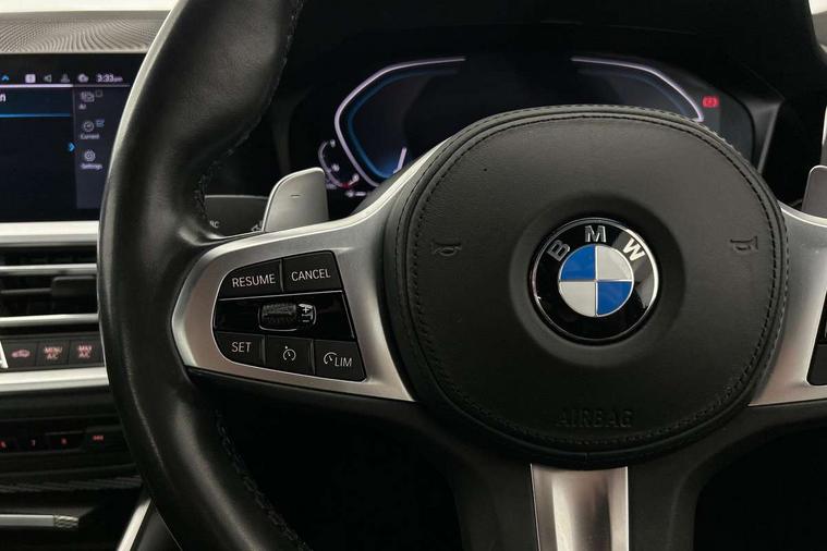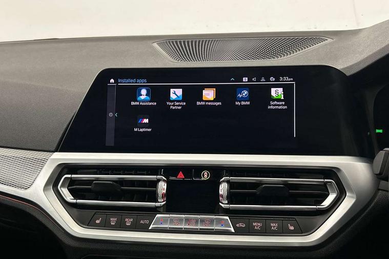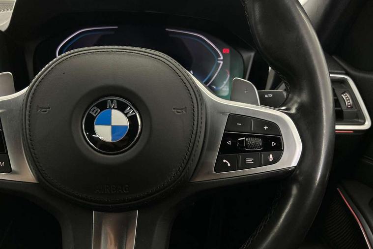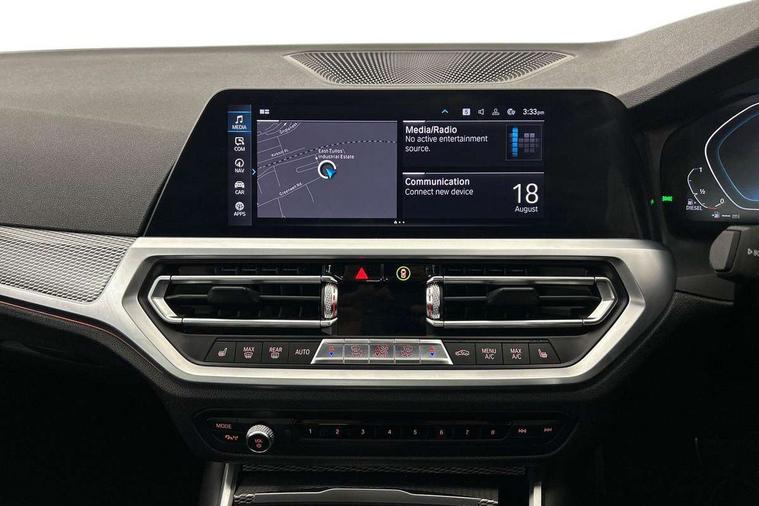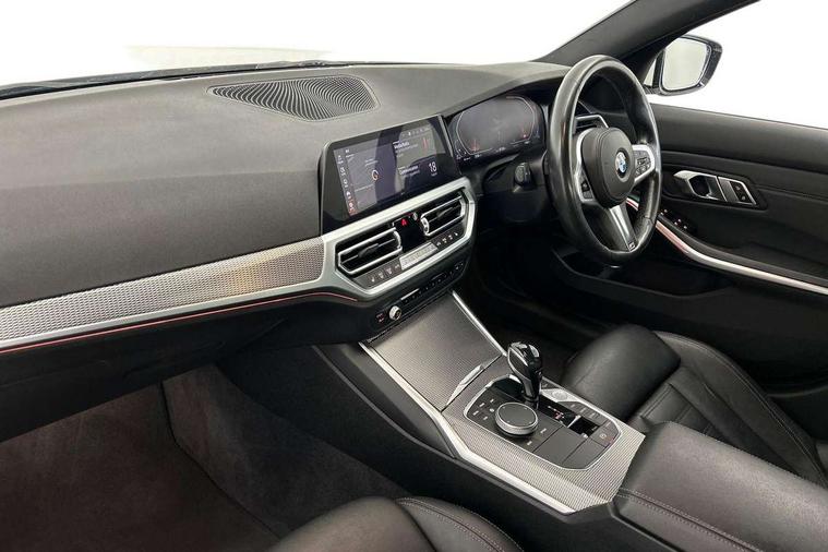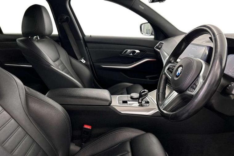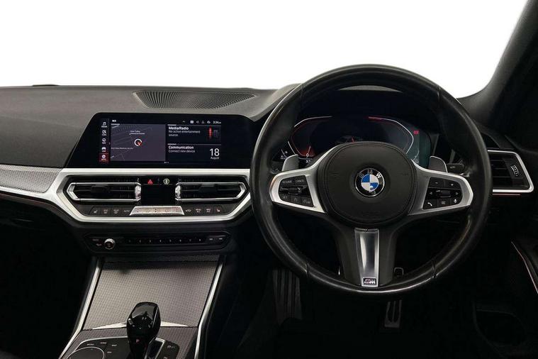 Active guard plus, Attentiveness assist, Auto start-stop, BMW iDrive controller on centre console, BMW Live Cockpit Professional sat nav system including 10.25" high resolution display and Intelligent Voice Assistant, BMW Online services, BMW Teleservices, Brake pad wear indicator in front and rear, Check Control warning system for monitoring of lights and door/luggage compartment open warning, Condition based service, Front/rear park distance control, Instrument cluster with speedometer with mph readout, tachometer, fuel gauge and oil temperature gauge, Oil sensor for level and grade, On board computer - average speed+fuel consumption, service interval, clock/date, odometer/trip meter, outside temperature display and ice warning, Optimum shift indicator, Pesonal profile, Variable sport steering, Battery cut-out switch, Diesel particulate filter, Drive performance control with ECO PRO comfort + sport mode, Electronic differential lock, Incorrect fuelling protection, Larger capacity fuel tank, Sport automatic transmission with steering-wheel mounted gearshift paddles and launch control, DAB tuner, Acoustic glazing, Active airstream chrome frame kidney grille with 8 high gloss black vertical slats, Automatic headlight beam throw control with load dependent regulating reaction, dynamic compensation of braking dive and acceleration squat, Black roof mouldings, Body colour - fuel filler flap, front and rear bumpers, door handles and mirror caps with integrated turn indicator + bottom segment in matt black, Dynamic brake lights, Extended LED headlights, Exterior mirrors - electrically folding with anti-dazzle, Front and rear bumper system with replaceable deformation elements, Front and rear electric windows with open and close fingertip control, anti trap facility and comfort closing, Front black door sill finishers with BMW designation, Green tinted heat protection glazing, Interior rear view electrochromatic mirror with automatic anti dazzle function, LED front fog lights, Left and right split exhaust tailpipes, Lightweight engineering, M aerodynamic body styling, M designation on left and right front side panels, M designation side badges, Matt black exterior B pillar, Model designation on right side of tailgate, Rain sensor with automatic headlight activation, Shark fin antenna, Two part LED tailights in L-shape with components in smoked glass, brake light, LED turn indicator and rear fog light, Visible VIN plate, Welcome lights in interior and door handle area, Windscreen wipers with integrated washing jets, 12V power socket in front storage compartment, 2 front cupholder in centre console with clamping elements and matt black inlay, 3 rear seats with non folding headrests with 3 point seat belts, 3 spoke M leather steering wheel, 4 pieces lashing eyelets in luggage compartment, 40:20:40 split folding rear bench seat, Ambient lighting, Anthracite headlining, Armrest integrated in front and rear door trim + front centre console armrest, Centred top Luggage compartment lights, Four grab handles integrated in roof lining, Front and rear door pockets, Front and rear velour floor mats, Front sport seats, Heated driver and front passenger seats, Height adjustable mechanically and infinitely variable steering column, Illuminated glove compartment with separate small compartment, Interior lighting - front centre over interior mirror with soft light, rear centre and front and rear footwell lighting, Rear centre armrest with 2 cupholders, Rear centre console with storage compartment and ventilation grille, Steering column length adjustment lever, Sunvisors with vanity mirrors and ticket pocket, Three zone automatic air conditioning, Through loading system with 40/20/40 split folding rear seat, Toolkit located in luggage compartment, Vernasca leather upholstery, Connected pack professional - 3 Series Saloon/Touring, M Aerodynamics pack - 3 Series Saloon/Touring, 2 tone horn, ABS, Automatic Stability Control (ASC), BMW emergency call, Brake assist function, Brake drying, Brake energy regeneration, Braking pre-tensioning, Child proof locking system in rear door, Child seat ISOFIX attachment rear outer seats, Cornering brake control (CBC), Crash sensor activating central locking release, hazard warning lights, fuel cut off, interior lighting + activation of safety battery terminal clamp, Driver and front passenger front and side airbags with passenger deactivation and ITS front and rear head airbags, Dynamic brake control, Dynamic Traction Control - DTC, Electromechanical parking brake with automatic drive away release and auto hold function, Hill start assist, Seat belt security check for driver and front passenger, Side impact protection, Three 3 point seat belts on all seats including front belt stopper, pyrotechnic belt tensioners and belt force limiters, Tyre pressure monitoring with three level warning strategy, Variable torque distribution, Ventilated front and rear disc brakes, Warning triangle and first aid kit, Alarm system (Thatcham 1) with remote control and electronic engine immobiliser, Central locking switch for all doors, fuel filler cap and luggage compartment, Remote control with integrated key one button open/close vehicle and windows, sole opening of the luggage compartment lid and panic mode, Selectable automatic lock when driving away, Start/stop button with Comfort Go keyless engine start and auto Start/stop deactivation button, Vehicle key with M specific designation, Reduced rolling resistance tyres,