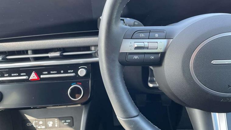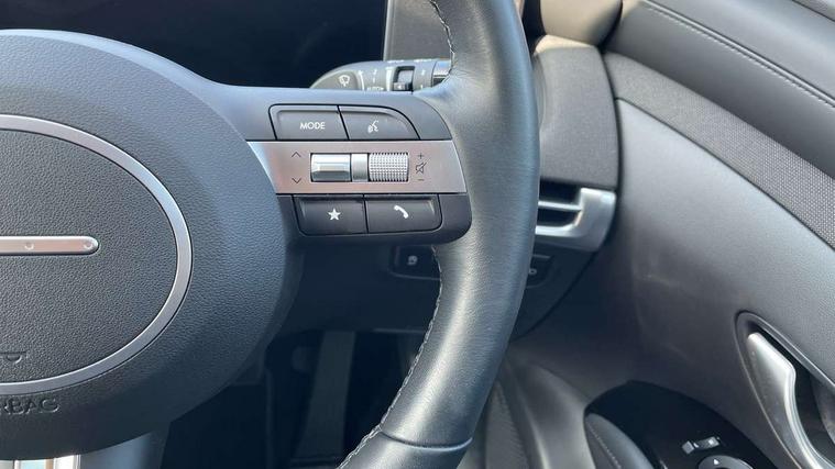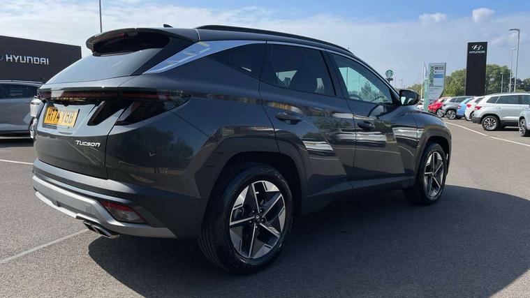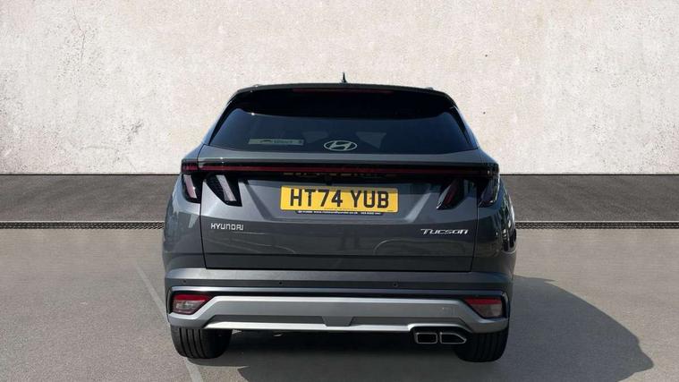 12.3" LCD display with driver's supervision instrument cluster, 12.3" widescreen navigation with bluelink and mapcare, Bluetooth system, Cruise control, Digital clock, Drive mode selector, Driver attention warning, E-call, Emergency stop signalling system, Forward Collision Avoidance Assist (FCA) - Car, Pedestrian and Cycle, Forward Collision Avoidance Assist Junction Turning (FCAJX), Front and rear parking sensors, Hyundai road side assistance, Intelligent speed limit assist, Lane follow assist, Lane keep assist, Over the air updates(OTA), PAS, Rear camera and guidance parking system, Rev counter, Smart power tailgate, Tailgate open warning light, Trip computer, Trip odometer, Voice recognition, Water temperature gauge, Windscreen washer fluid sensor and warning indicator, Wireless Apple CarPlay/Android Auto, Wireless phone charging pad, 2 front and 2 rear USB-C ports, DAB Digital radio, Krell premium audio system with 8 speakers and subwoofer, Steering wheel mounted audio/phone controls, Adjustable intermittent front windscreen wipers with aero wiper blade, Auto dimming rear view mirror, Automatic defog system, Automatic headlights with dusk sensor, Automatic windscreen wipers with rain sensor, Black wheel arches, Body colour bumpers, Body colour door mirrors with integrated indicators, Body colour exterior door handles, Electrically adjustable, heated and power folding door mirrors, Follow me home headlights, Front and rear electric windows with anti-trap mechanism and one touch control, Front fog lights, LED 3rd brake light, LED daytime running lights, LED Headlights, LED rear lights, Positioning Lights - LED, Privacy glass - Rear windows and tailgate, Rear side wing doors, Rear wash/wipe with intermittent wipe setting, Roof rails, Soft touch rear door paneling, Tinted glass with windscreen shade band, Trailer stability assist, 12V power outlets in front console and luggage compartment, 3 seat bench in 2nd row, 40/20/40 split folding rear seat, 64 colours interior ambient lighting, Adjustable head restraints (Up and down), Cupholders in rear armrest, Door courtesy lights, Driver and passenger sunvisors with illuminated LED vanity mirrors, Driver's seat electric adjustments, Dual zone climate control, Front and rear door pockets, Front armrest with storage box, Front centre console and door bottle holders, Front passenger's seat electric adjustments, Heated front seats, Heated rear seats, Heated steering wheel, Height/reach adjustable steering column, Illuminated/air conditioned glove compartment, ISOFIX child seat anchorage points attached on outer rear seats, Leather wrapped steering wheel and gear knob, LED interior lighting, Luggage compartment lighting, Luggage cover, Luggage hooks, Luggage net, Map and reading lights, Premium cloth/leather upholstery, Rear seat remote folding function, Rear side window sunblind, Reclining rear seats, Retractable load cover, Single front passenger seat, Sunglasses holder, Touch sensitive climate controls with temperature dials, TUCSON branded metal door scuff plate, Underfloor boot compartment, Trailer wiring package - Tucson, 3x3 point rear seatbelts, Active bonnet, Airbag - Front, front side, curtain and centre front airbags, Anti-lock brake system (ABS), Brake assist function, Childproof rear door locks, Curtain airbag roll over sensor, Downhill brake control, Electric parking brake, Electronic stability control, Front and rear seatbelt reminder, Front passenger airbag deactivation switch, Front seatbelt pretensioners, Hill start assist control (HAC), Multi-Collision braking, Outer rear seatbelt height adjustment, Seatbelt height adjustment for front seats, Traction control, Tyre pressure monitoring system with individual tyre pressure display - TPMS, Vehicle stability management, Deadlocks, Immobiliser, Locking wheel nuts, Remote control central locking, Smart key with keyless entry and engine start/stop button, Speed sensitive auto door locking, Thatcham category 1 alarm, 18" Alloy wheels, Tyre repair kit,
