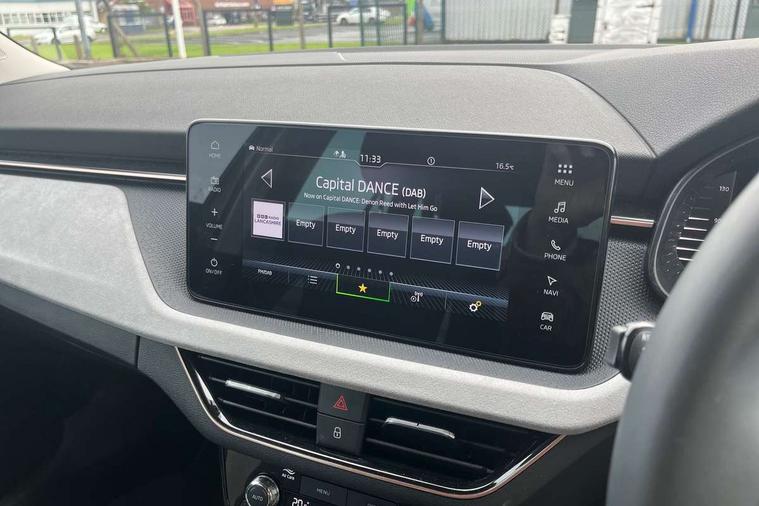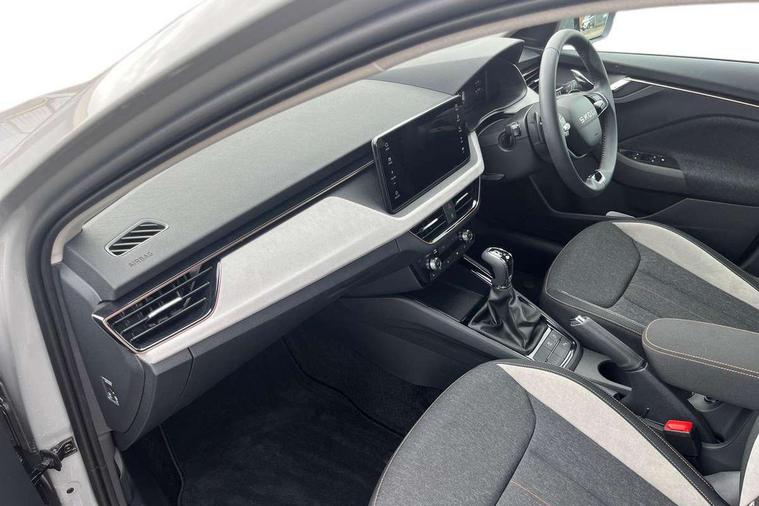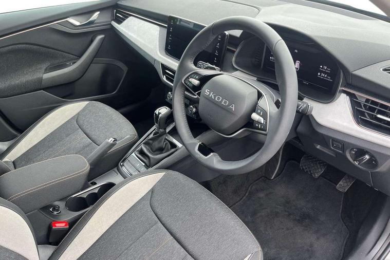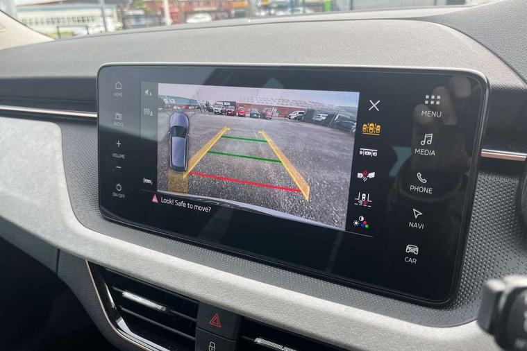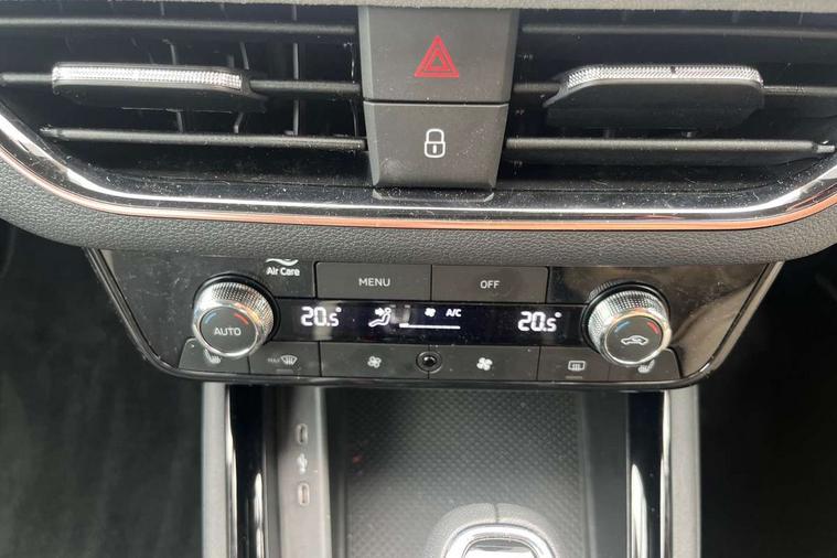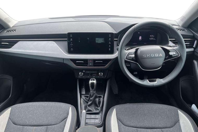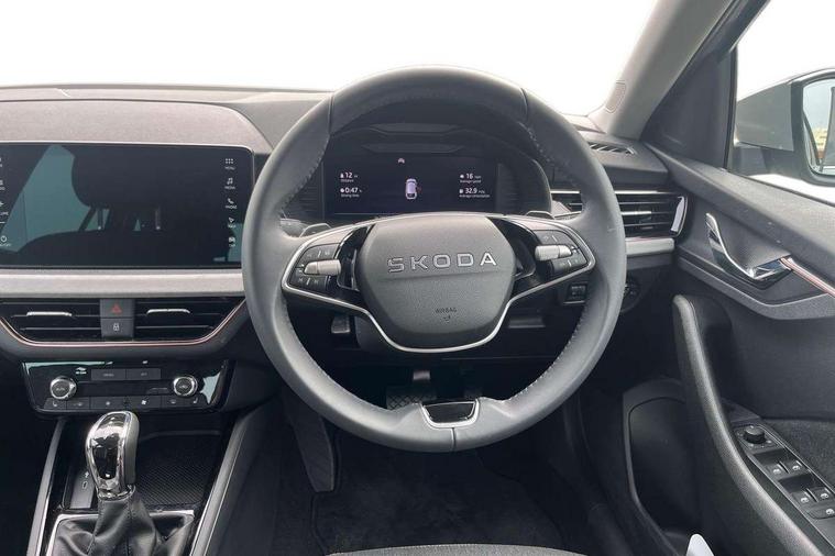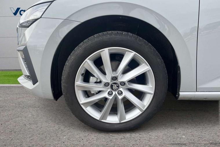 Advanced driver attention and drowsiness monitor, Bluetooth, e-Call (emergency call), Front assist system, PAS, Rear parking sensors, Rear view camera, Speed limiter, Tailgate, Traffic sign recognition, Virtual Cockpit - 10.25" digital display, Voice control system, Wireless smartlink, 4 USB C ports, 8 Speakers, 9.2" Skoda navigation display, DAB radio, Auto dimming rear view mirror, Automatic headlight control with manual coming and leaving home feature, Automatic intermittent wipers, Body colour bumpers, Body colour door mirrors and handles, Chrome moulding around grille, Chrome window frames, Front and rear electric windows, Heated rear window, LED 3rd brake light, LED daytime running lights, LED high beam, LED low beam, Light sensors, Privacy glass, Rear LED fog light, Rear side wing doors, Rear wiper, Tinted windows, Unique dark chrome design logo on alloy wheels, 12V socket in luggage compartment, 3 seat bench in 2nd row, Ambient lighting in white/red, Black / Copper armrest stitching, Cargo elements, Chrome inner door handles, Copper hotstamping, Door inserts in accent black, Driver and passenger sun visors with vanity mirror, Dual zone climate control, Front and rear roof lights, Front centre armrest, Front head restraints, Glasses storage in roof liner, Height adjustable driver seat, Height adjustable passenger seat, Ice scraper, Illuminated glove compartment, Inner circulation control with pollen filter, ISOFIX for front passenger seat, Isofix preparation for back seats, Leather gearknob and handbrake lever, Lodge cloth upholstery, Luggage net under rear parcel shelf, Manual lumbar support for front seats, Net package and top tether hooks in boot space, Pocket on the back of both front seats, incl. mobile phone pockets, Rear centre armrest, Single front passenger seat, Skoda lettering on steering wheel, Textile floor mats, Third rear headrest, Ticket holder, Top tether for front passenger seat, Umbrella in driver's door, Convenience pack without rear camera - Scala, 3x3 point rear seatbelts, ABS, Child locks, Curtain airbags and front side airbags, Disc brakes, Driver and front passenger airbags, ESP, Hill hold control, Manual leather parking brake, One tone horn, Passenger airbag switch off function, Seatbelt reminder for driver and front passenger, Tyre pressure monitoring system, Anti theft alarm system with interior monitoring, backup horn and towing protection, Anti-theft wheel bolts, Remote central locking with 2 remote folding keys, SAFE function for remote central locking, Decorative inserts,