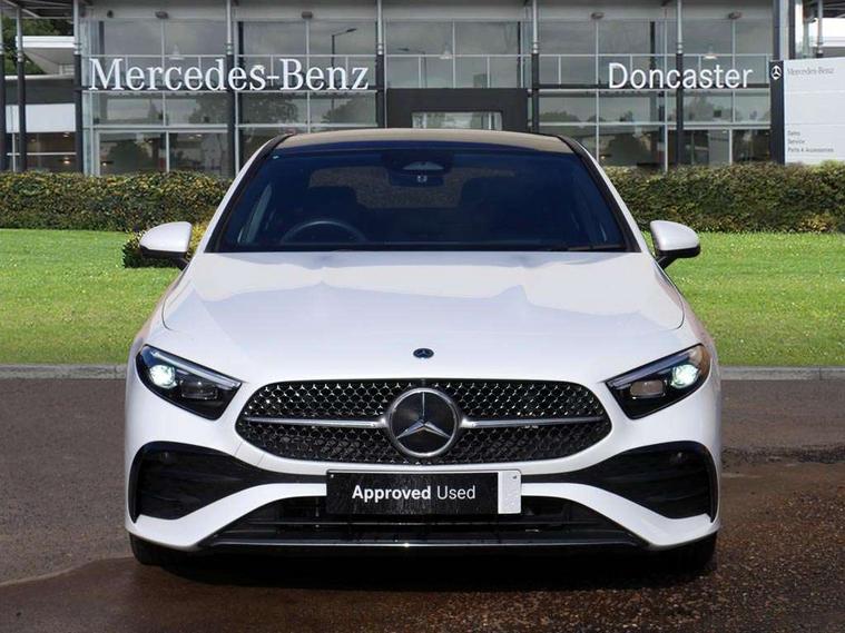 10.25 inch touchscreen central media display, 10.25" Digital instrument cluster display screen, Attention assist, Brake pad wear indicator warning light, Car wash mode, Direct steering, Direction indicators with lane change function, Dual bluetooth interfaces, DYNAMIC SELECT with a choice of driving modes (ECO, Comfort, Sport and Individual), ECO start/stop function, Engine start/stop button, Fluid level warning indicator for fuel, oil, coolant and washer fluid, Fluorescent jacket for driver, Hard-disk navigation, Head up Display, Hey Mercedes Voice activation, Lamp failure indicator, MBUX augmented reality for navigation, MBUX Interior assistant, Mercedes me connect including emergency call system, accident recovery, breakdown and maintenance management, Mercedes me remote services, Outside temperature gauge, Owners manual in English, Pre-installation of private car share, Preinstallation for Mercedes Benz link, Remote boot closing, Service indicator (ASSYST), Smartphone integration with Apple CarPlay and Android auto, Speed sensitive power steering, Traffic sign assist, Trip computer in multifunction display with current consumption indicator, Wireless charging, Lowered comfort suspension, DAB Digital radio, MBUX multimedia system, Mercedes Benz advanced sound system (225 W) with 10 speakers, 1 central speaker, speakers on doors, a tweeter on door, one sub woofer + boost amplifier, 4 Electric Front and Rear windows, Adaptive brake lights, AMG body styling - AMG front apron with front splitter and AMG rear apron and visible exhaust tailpipe trim elements, Body colour bumpers, Body colour door handles with chrome inserts, Body colour side skirt, Body coloured door mirrors, Chrome beltline strips, Diamond radiator grille with pins in fine star pattern, Electric adjustable and heated door mirrors with integrated LED side indicators, Exhaust system with 2 visible tailpipe trim elements and rear apron, Headlamp assist automatic headlamp activation, Heat insulating dark tinted rear and rear side windows, Heated glass rear windscreen + timer control, LED daytime running lights, LED tail lamp, Multibeam LED headlamps with adaptive highbeam assist and cornering function, Panoramic sliding sunroof, Privacy glass, Radio aerial, Rain sensing windscreen wipers with two sensitivity settings, Rear boot, Rear fog lights, Rear side wing doors, Surround lighting with logo projection, Third brake light featuring LED technology, Window line trim strip in chrome, 3 seat bench in 2nd row, 3 Spoke flat bottom leather multi function steering wheel with perforated leather in grip area, 40:20:40 split folding rear seats, Air conditioning - Two zone thermotronic luxury automatic climate control with display, Automatic child seat recognition sensor, Black air vents with surround in silver chrome, Black roof lining, Brushed stainless steel sports pedals with rubber studs, Electrically adjustable front memory seats including lumbar support and backrest inclination, Floor mats with AMG lettering, Front centre armrest with stowage, Front seat backs luggage nets, Galvanished gear shift paddles on steering wheel, Heated front seats, Height/reach adjustable steering column, Illuminated Mercedes Benz lettering front door sills with changeable cover, Interior lighting - 64 colour Ambient lighting, Interior mirror with reading lamps in black and frameless, Rear armrest with 2 cupholders, Seat occupancy sensor for front passenger seat, Single front passenger seat, Sports seats with adjustable head restraints, Stowage compartment in centre console with retractable cover, Sunvisors with illuminated vanity mirrors, Twin front cupholders, Keyless go comfort pack - A Class, Light and sight pack - A Class, Mirror package - A Class, Parking pack with 360 degree camera - A Class, Seat comfort pack - A Class, USB pack plus - A Class, 3 rear 3 point seatbelts, ABS with Brake Assist, Active bonnet, Adaptive brake assist with hold function and hill start assist, Black seatbelts, Bonnet with power domes, Childproof locks manually operated for rear doors and electrically operated for rear power windows, Crash responsive emergency lighting, Driver and passenger head and side airbags, Drivers knee airbag, Dual stage driver/passenger airbags, Electronic parking brake, ESP curve dynamic assist, ESP with ASR, Exit warning, Front and rear seatbelt reminder, ISOFIX and top tether child seat fixing points in two outer rear seats, Tyre pressure monitoring system, Warning triangle and first aid kit, Window airbags, Alarm system/interior protection/immobiliser, Guard 360 degree vehicle protection, Remote central locking and crash sensor with emergency opening function, Light longitudinal grain aluminium trim, 19" AMG multi-spoke light alloy wheels, aerodynamically optimised, painted in titanium grey with high sheen finish, Summer tyres, Tirefit sealant kit,