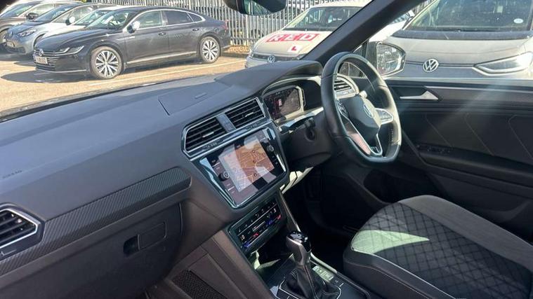 Adaptive cruise control ACC stop and go including speed limiter, App-Connect incl. App-Connect Wireless for Apple CarPlay and Android Auto, Bluetooth phone integration system, Digital Cockpit Pro - Active info display, Distance control assist, Driver alert system, Driver profile selection, Dynamic road sign display, eCall emergency call system, Electromechanical speed sensitive power steering, Engine start/stop button, Lane keeping system Lane Assist, Lights on warning, Multifunction front facing camera, Outside temperature display, Premium multifunction display with multi colour display, Remote control boot opening, Rev counter, Revision / skills operating concept travel assistant, Service interval indicator, Speed limit display, Start/stop system with regenerative braking, Trip computer, Warning sound and light for doors and tailgate open, Battery regeneration during braking, XDS electronic differential lock for improved traction and handling, 2 USB-C ports in the front, 1 USB-C charging socket on the center console in the rear, Diversity antenna for FM reception, Radio, SD card slot, Simultaneous pairing of 2 compatible mobile devices, SMS functionality - read, compose and send SMS messages using touch-screen display, Title and cover art display, Auto dimming interior rear view mirror, Automatic headlight control system, Black roof rails, Body colour door handles, Body coloured bumpers in R Line style, Body coloured door mirrors with integrated indicators, Chrome moldings on the side windows, Coming/leaving home lighting function, Dynamic headlight range control, Front and rear electric windows, Heated rear window, High level 3rd brake light, Laminated safety glass windshield, heat and sound insulating, LED rear number plate lights, License plate carrier in front and rear, Poor weather light and cornering light, Privacy glass for rear side windows and rear window, R Line body kit, R Line side sills, Rain sensor windscreen wipers, Rear exhaust tailpipe, Rear fog lamp, Rear spoiler in R style, Rear windscreen washer and wiper with interval delay, Side and rear windows in heat insulating glass, Third brake light, Trailer Stability Programme, Unique R Line badging, Windscreen wipers/ intermittent wipe + 4 position delay, 12V outlet in center console rear and in luggage compartment, 2 cup holders in front, 2 LED front reading lights, 2 LED rear reading lights, 3 rear headrests, 4 load lashing points, 40:20:40 split folding rear seats, Air Care Climatronic 3 zone automatic climate control with enhanced air filter and controls in the rear, Backrest release for left front seat, Black headlining, Brushed stainless steel pedals and footrest, Carpet mats in front and rear with decorative stitching in Gray, Climate control unit rear with touch function, Door and side trim panel in foam film, insert in leatherette, Front centre armrest, Front footwell illumination, Front seats head restraints (x-adjustment), Height adjustable front seats, Height/reach adjust steering wheel, Instrument lighting white adjustable panel illumination, Interior light with delay, Isofix Preparation 2 Rear child seats, Leather gear knob, Lockable cooled glovebox, Luggage compartment lighting, Luggage net, Rear bench seat asymetrically split folding, longitudinally movable and folding with load-through hatch and center armrest, Remote unlocking for rear seat backrest, Removable luggage cover, Safety optimised front head restraints, Sliding/reclining rear seats, Standard rear seat release, Storage compartment in driver's door, Storage compartment in passenger's door, Storage compartment in rear doors, Storage compartments in luggage area left and right, Storage tray on dashboard, Sun visors with illuminated vanity mirrors, Top front comfort seats, Variable boot floor, height adjustable and removable, Ambience pack - Tiguan R Line, Driver assistance pack plus - Tiguan DSG, 3 point seat belt for centre rear seats, 3 point seat belts with seat belt pretensioners for the outer rear seats, Active bonnet, Curtain airbags for front and rear passengers, Driver/Front Passenger airbags, Drivers knee airbag, Electronic parking brake with auto hold, Electronic Stability Control with driver steering recommendation, ABS, ASR, EDL, EDTC and trailer stabilization, Front assist with autonomous emergency braking (for Adaptive Cruise Control ACC up to 130 mph), Front disc brakes, Front passenger airbag deactivation, Front side airbags, Height adjustable front 3 point seatbelts + pretensioners, Hill hold control, Pedestrian monitoring system, Power assisted brakes, Proactive passenger protection system in combination with front assist, Rear disc brakes, Rigid safety cell with front and rear crumple zones, Two tone horn, Warning sound and light for front seat belts if unfastened, Anti theft alarm system with interior monitoring, backup horn and towing protection, Anti theft wheel bolts, Electronic engine immobiliser, 20" Misano black with diamond turned surface alloy wheels with Airstop tyres, Tool kit,