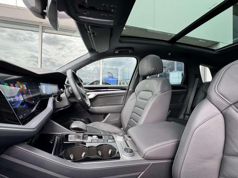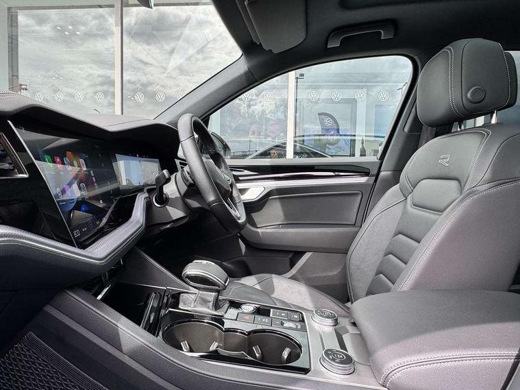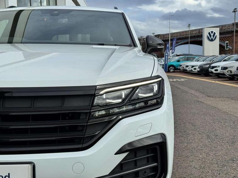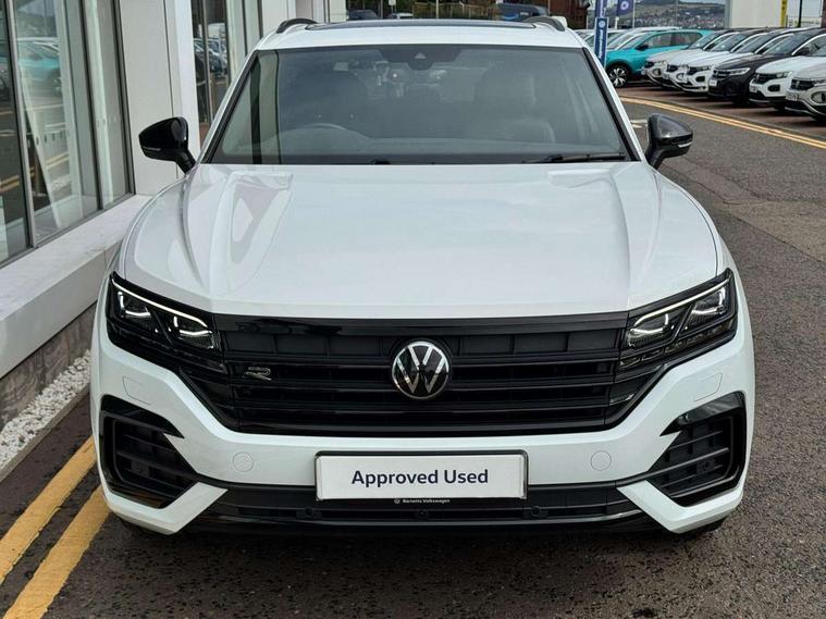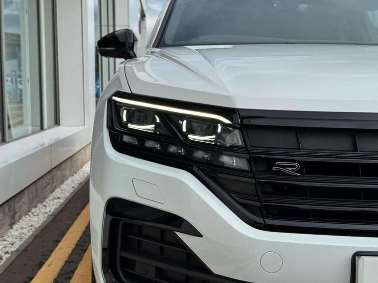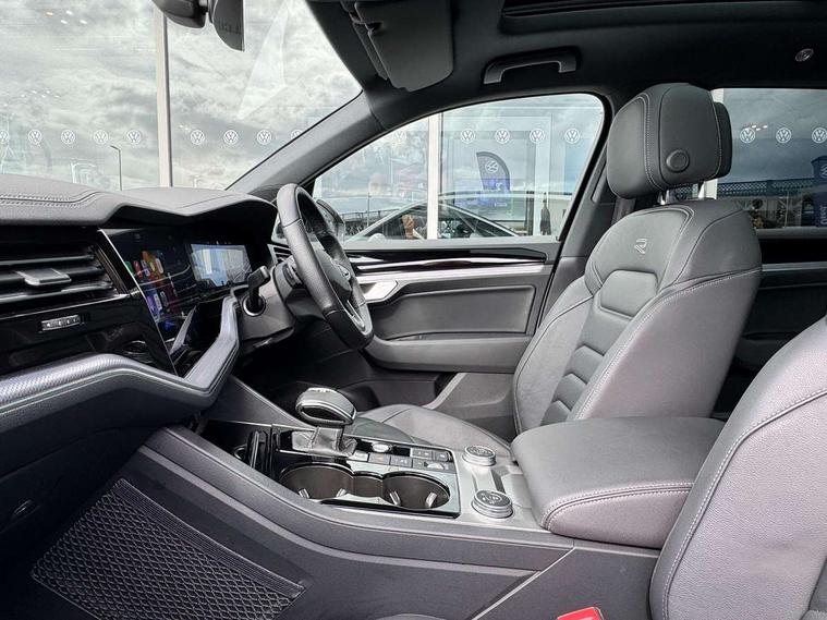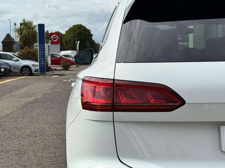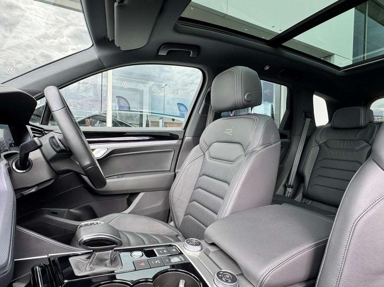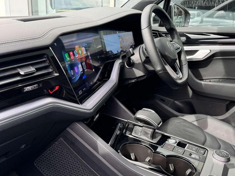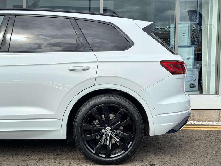 2D/3D map view, ACC - Adaptive cruise control with front assist, forward collision warning, distance monitoring, city emergency brake and speed limiter, Apple car play/Android Auto, Audible and visual fatigue detection system, Bluetooth hands free telephone connection, Car information display, Drive select with Damper control, Driver alert system, Driver profile selection, Dynamic road sign display camera controlled system with visual warning for traffic and road signs, eCall emergency system, Fully electric tailgate + keyless entry and start, Instrument cluster, MirrorLink, Multifunction camera, Multifunction computer premium with 7" colour display, One touch indicators with repeat function, Service interval indicator, Speed sensitive power steering, Start/stop system with regenerative braking, Tailgate power latch, Think blue trainer driver tips and journey analysis, Traffic sign recognition, Voice control system, Wireless Smartphone charger, 24 litre AdBlue tank, Torsen limited slip differential, DAB Digital radio, Dynamic navigation based on TMC+, Gesture control for infotainment system, Multi device interface (MDI) with illuminated USB-C connection, Music playback - MP3, WMA and AAC files, SD card slot, Simultaneous pairing of 2 compatible mobile devices, SMS functionality - read, compose and send SMS messages using touch-screen display, Title and cover art display, Volkswagen media control, Adaptive low beam for urban and motorway use, Auto dimming rear view mirror, Automatic coming/leaving home lighting function, Automatic headlights, Black anodised roof rails, Black door mirrors, Black rear diffuser, Black side window surrounds, Black upper and lower grille louvres extending into headlights and radiator grille, Body colour door handles, Body coloured wheel arches, C signature gloss black front air intake, Chromed tailpipe on the left and right integrated in the bumper with trapezoid design, Dusk sensor, Dynamic headlight range control, Electric front tilt/slide panoramic sunroof and fixed rear sunroof, Electrically power adjustable, heated, folding, auto dimming, front passenger exterior door mirror lowering function, Front and rear electric windows, Galvanised body, Gloss black finish B pillar, Gloss black rear diffuser, Headlight washers, Heat insulating darkened glass in side and rear windows, Heated windscreen washer jets, IQ.Light-LED matrix headlight, daytime running light with dynamic cornering light and indicator, LED 3rd brake light, LED rear fog light, LED rear number plate lights, Plastic scuff plates in door apertures, Poor weather light, Puddle lights, Rain sensor, Rear side wing doors, Rear wiper, 12V socket in front and rear centre console and boot, 2 Coat hooks on B pillar, 3 rear head restraints, 3 seat bench in 2nd row, 3 spoke sport heated leather multi-function sports steering wheel with gear shift paddles - generation 2, 4 way adjustable front head restraints, 4 way electric lumbar support for driver and front passenger, 4 zone climate control, 40:20:40 split folding slide/recline rear seat, B pillar vents, Black lower edge of door extending sills, Branded points of interest, Double sun visor for drivier and passenger with LED illuminated vanity mirrors, Electric luggage compartment cover, Folding rear centre armrest with 2 cupholders, Front + rear carpet mats, Front centre armrest with storage box, Gear shift indicator, Height/reach adjust steering wheel, Illuminated air conditioned glovebox, Isofix preparation for 2 rear child seats, Jack and tool kit, Leather trimmed gear knob with gloss black inlay/aluminum trim, Leatherette door trim, LED luggage compartment lighting, Load through provision, Luggage compartment with load lashing rings, Plastic loading edge protection, Rear seat remote release levers, Single front passenger seat, Soul black headlining, Stainless steel pedals, Innovision cockpit pack - Touareg, 3 point front seatbelts with pre-tensioners, ABS, Active bonnet, Automatic post collision braking system, Curtain airbags, Driver/Front Passenger airbags, EBD + Brake Assist, EDL, Electronic parking brake with auto hold, ESC with ASR, Front seat side impact airbags, Hill descent control, Hill start assist, Passenger airbag deactivate switch, Seatbelt warning lamp and buzzer, Three 3 point rear seatbelts, Two tone horn, Volkswagen roadside assistance, Warning triangle and first aid kit, Alarm with interior monitoring in cab, backup horn and towing protection, Child security locks for front and rear doors, Electronic engine immobiliser, Remote central locking, Black decorative trims on the side windows, High gloss black centre console,