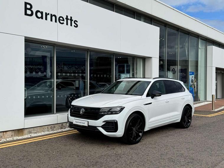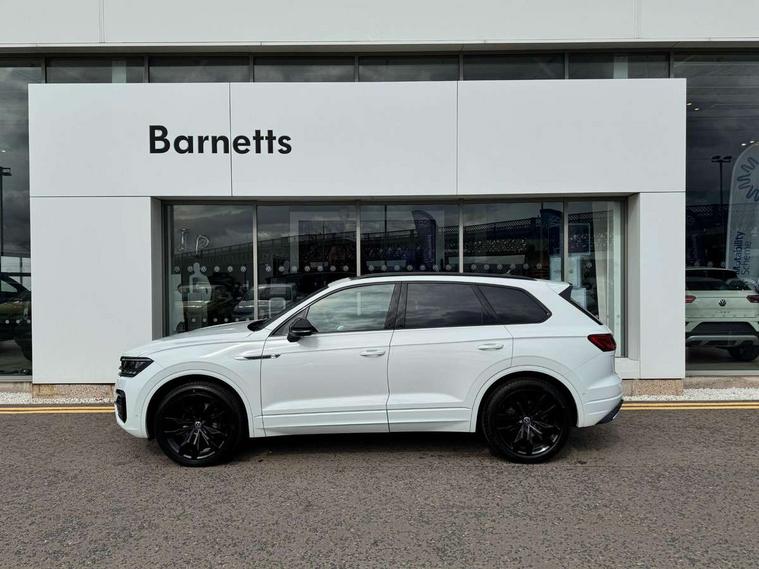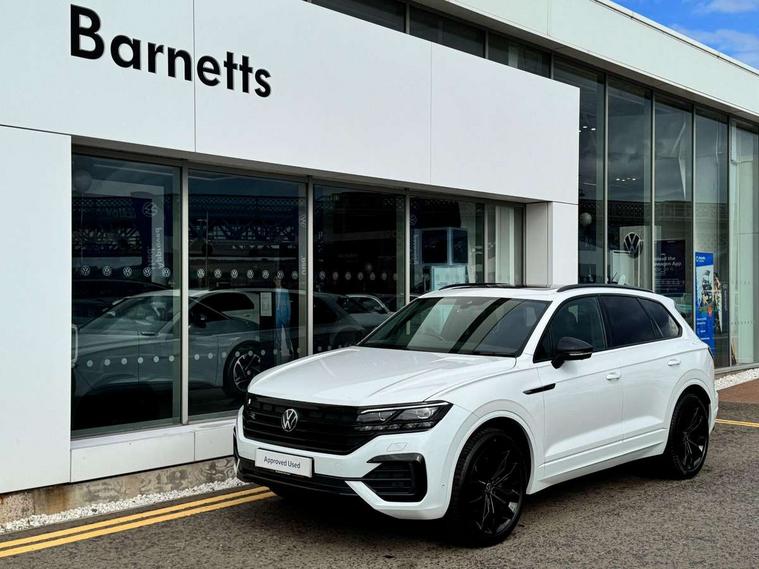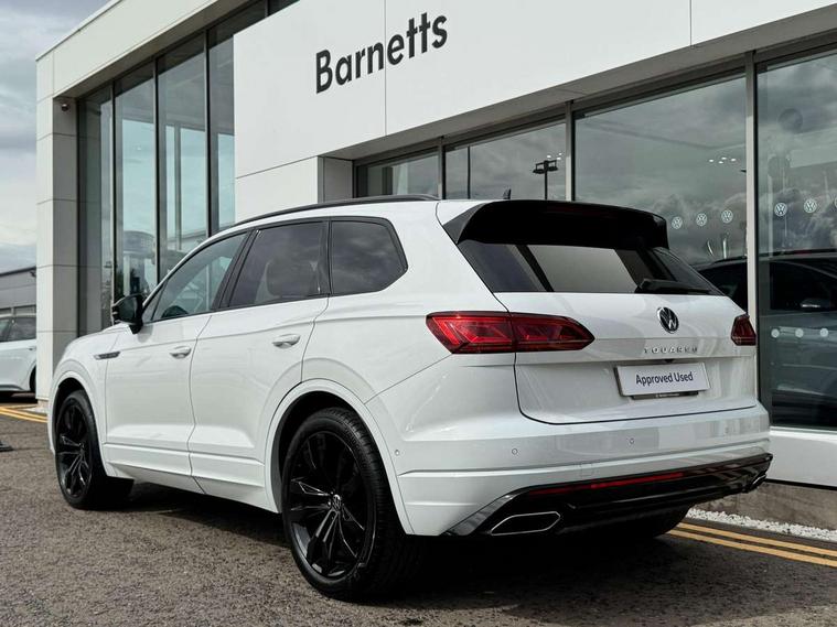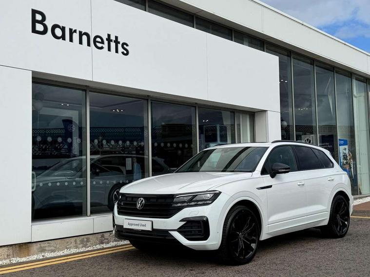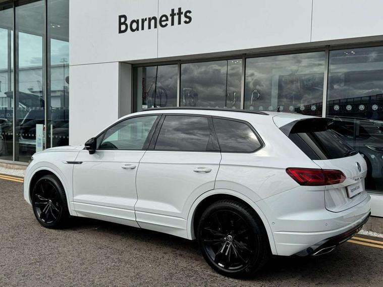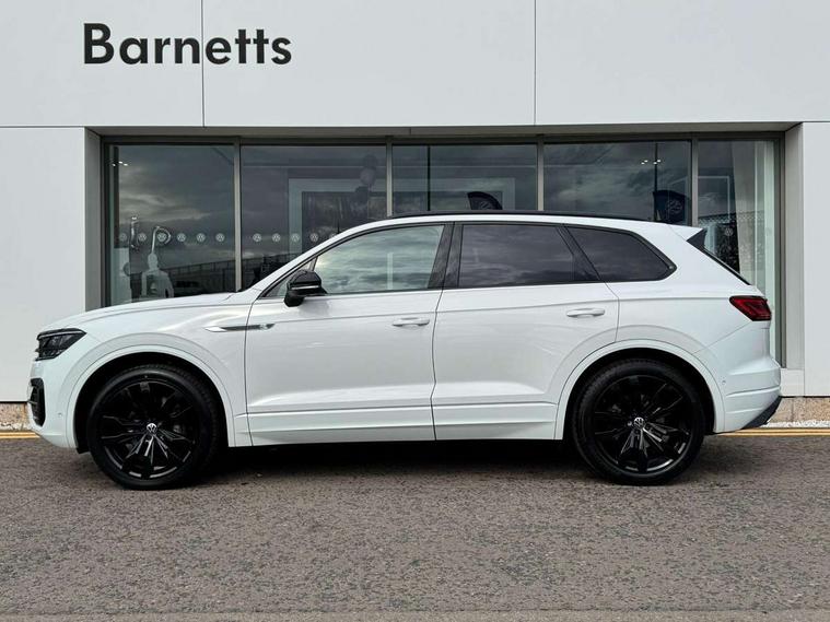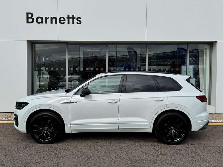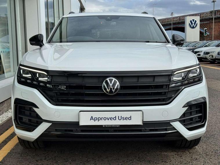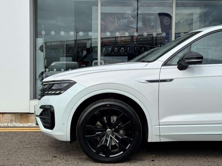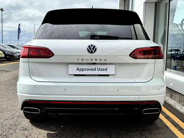 2D/3D map view, ACC - Adaptive cruise control with front assist, forward collision warning, distance monitoring, city emergency brake and speed limiter, Apple car play/Android Auto, Audible and visual fatigue detection system, Bluetooth hands free telephone connection, Car information display, Drive select with Damper control, Driver alert system, Driver profile selection, Dynamic road sign display camera controlled system with visual warning for traffic and road signs, eCall emergency system, Fully electric tailgate + keyless entry and start, Instrument cluster, MirrorLink, Multifunction camera, Multifunction computer premium with 7" colour display, One touch indicators with repeat function, Service interval indicator, Speed sensitive power steering, Start/stop system with regenerative braking, Tailgate power latch, Think blue trainer driver tips and journey analysis, Traffic sign recognition, Voice control system, Wireless Smartphone charger, 24 litre AdBlue tank, Torsen limited slip differential, DAB Digital radio, Dynamic navigation based on TMC+, Gesture control for infotainment system, Multi device interface (MDI) with illuminated USB-C connection, Music playback - MP3, WMA and AAC files, SD card slot, Simultaneous pairing of 2 compatible mobile devices, SMS functionality - read, compose and send SMS messages using touch-screen display, Title and cover art display, Volkswagen media control, Adaptive low beam for urban and motorway use, Auto dimming rear view mirror, Automatic coming/leaving home lighting function, Automatic headlights, Black anodised roof rails, Black door mirrors, Black rear diffuser, Black side window surrounds, Black upper and lower grille louvres extending into headlights and radiator grille, Body colour door handles, Body coloured wheel arches, C signature gloss black front air intake, Chromed tailpipe on the left and right integrated in the bumper with trapezoid design, Dusk sensor, Dynamic headlight range control, Electric front tilt/slide panoramic sunroof and fixed rear sunroof, Electrically power adjustable, heated, folding, auto dimming, front passenger exterior door mirror lowering function, Front and rear electric windows, Galvanised body, Gloss black finish B pillar, Gloss black rear diffuser, Headlight washers, Heat insulating darkened glass in side and rear windows, Heated windscreen washer jets, IQ.Light-LED matrix headlight, daytime running light with dynamic cornering light and indicator, LED 3rd brake light, LED rear fog light, LED rear number plate lights, Plastic scuff plates in door apertures, Poor weather light, Puddle lights, Rain sensor, Rear side wing doors, Rear wiper, 12V socket in front and rear centre console and boot, 2 Coat hooks on B pillar, 3 rear head restraints, 3 seat bench in 2nd row, 3 spoke sport heated leather multi-function sports steering wheel with gear shift paddles - generation 2, 4 way adjustable front head restraints, 4 way electric lumbar support for driver and front passenger, 4 zone climate control, 40:20:40 split folding slide/recline rear seat, B pillar vents, Black lower edge of door extending sills, Branded points of interest, Double sun visor for drivier and passenger with LED illuminated vanity mirrors, Electric luggage compartment cover, Folding rear centre armrest with 2 cupholders, Front + rear carpet mats, Front centre armrest with storage box, Gear shift indicator, Height/reach adjust steering wheel, Illuminated air conditioned glovebox, Isofix preparation for 2 rear child seats, Jack and tool kit, Leather trimmed gear knob with gloss black inlay/aluminum trim, Leatherette door trim, LED luggage compartment lighting, Load through provision, Luggage compartment with load lashing rings, Plastic loading edge protection, Rear seat remote release levers, Single front passenger seat, Soul black headlining, Stainless steel pedals, Innovision cockpit pack - Touareg, 3 point front seatbelts with pre-tensioners, ABS, Active bonnet, Automatic post collision braking system, Curtain airbags, Driver/Front Passenger airbags, EBD + Brake Assist, EDL, Electronic parking brake with auto hold, ESC with ASR, Front seat side impact airbags, Hill descent control, Hill start assist, Passenger airbag deactivate switch, Seatbelt warning lamp and buzzer, Three 3 point rear seatbelts, Two tone horn, Volkswagen roadside assistance, Warning triangle and first aid kit, Alarm with interior monitoring in cab, backup horn and towing protection, Child security locks for front and rear doors, Electronic engine immobiliser, Remote central locking, Black decorative trims on the side windows, High gloss black centre console,