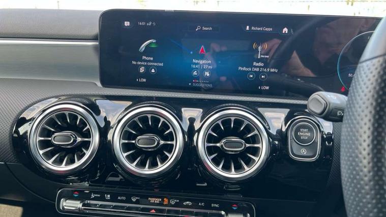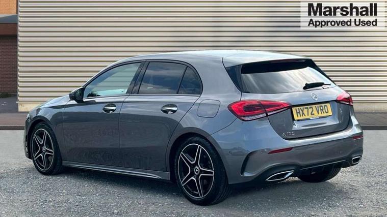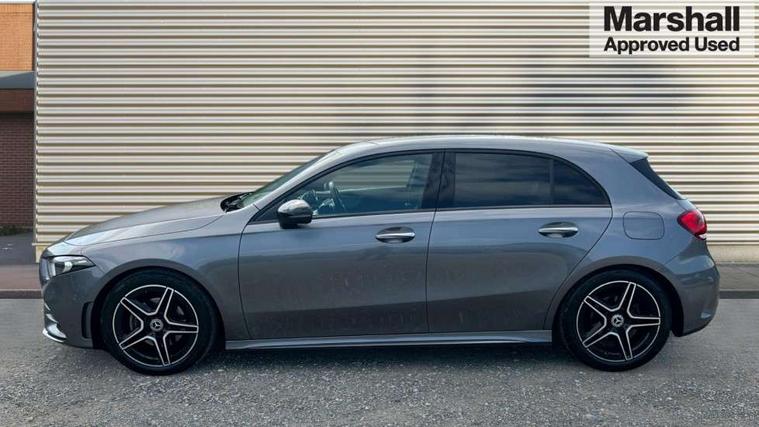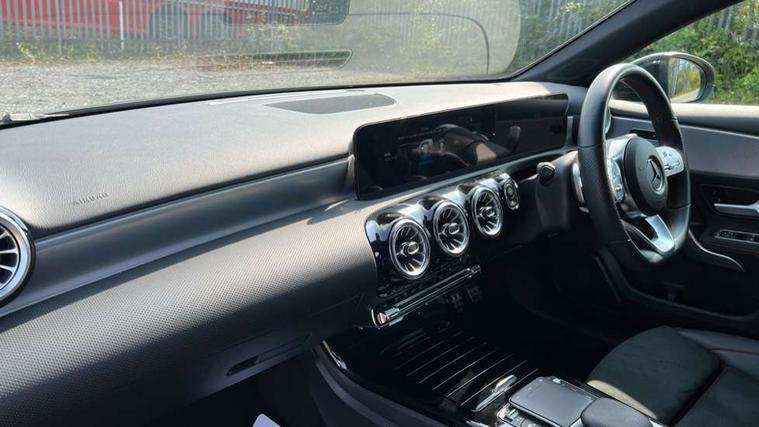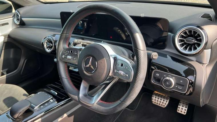 10.25" Digital instrument cluster display screen, 10.25" media display, 180 degree rear view camera with parking guidelines, Active parking assist with visual and audible warning of detected obstacles, Attention assist, Brake pad wear indicator warning light, Car wash mode, Cruise control + speed limiter, Direct steering, Dual bluetooth interfaces, DYNAMIC SELECT with a choice of driving modes (ECO, Comfort, Sport and Individual), ECO start/stop function, Fluid level warning indicator for fuel, oil, coolant and washer fluid, Hard-disk navigation, Hey Mercedes Voice activation, Lamp failure indicator, Lane keeping system, Mercedes me connect including emergency call system, accident recovery, breakdown and maintenance management, Mercedes me remote services, Outside temperature gauge, Owners manual in English, Pre-installation for private car sharing, Preinstallation for Mercedes Benz link, Service indicator (ASSYST), Smartphone integration with Apple CarPlay and Android auto, Speed limit assist, Speed sensitive power steering, Trip computer, Ultrasonic sensors positioned in the front and rear bumpers, Lowered comfort suspension, Rear axle torsion beam, 2 USB ports (type C) in rear stowage compartment and one in front of center console, 6 speakers, DAB Digital radio, MBUX multimedia system with DAB digital radio and touchpad including satellite navigation, Mercedes-Benz sound system - 100W, 4 Electric Front and Rear windows, Adaptive brake lights, AMG bodystyling - Front apron with splitter in chrome, rear apron with chrome trim and chrome visible trim elements in tailpipe, Automatic headlights, Black weather strip, Body colour bumpers, Body colour door handles with chrome inserts, Body colour side skirt, Electric adjustable and heated door mirrors with integrated LED side indicators, Exclusive diamond radiator grille, Exhaust system - Twin visible tailpipes in polished stainless steel, Headlamp assist automatic headlamp activation, Heated glass rear windscreen + timer control, LED High level third brake light, LED high performance headlamps with integrated LED daytime running lights, LED tail lamp, Privacy glass, Radio aerial, Rain sensing windscreen wipers with two sensitivity settings, Rear fog lights, Rear side wing doors, Rear wiper, 3 seat bench in 2nd row, 3 Spoke flat bottom leather multi function steering wheel with perforated leather in grip area, 40:20:40 split folding rear seats, Artico man-made leather/Microfibre Dinamica upholstery with red contrast stitching, Auto Mercedes-Benz child seat recognition sensor, Black air vents with surround in silver chrome, Black roof lining, Brushed stainless steel sports pedals with rubber studs, Controller on centre console with chrome surround, Floor mats with AMG lettering, Front centre armrest with storage compartment, Front seat backs luggage nets, Galvanished gear shift paddles on steering wheel, Heated front seats, Height/reach adjustable steering column, Illuminated Mercedes Benz lettering front door sills with changeable cover, Interior lighting - 64 colour Ambient lighting, Interior mirror with reading lamps in black and frameless, Manual height adjustable front seats, Rear armrest with 2 cupholders, Rear head restraints, Seat occupancy sensor for front passenger seat, Single front passenger seat, Sports seats with integrated headrests, Stowage compartment in centre console with retractable cover, Sunvisors with illuminated vanity mirrors, Touchpad on center console, Twin front cupholders, Two zone thermotronic luxury automatic climate control, Light and sight pack - A Class, Mirror package - A Class, Night pack - A Class Saloon/Hatchback, Seat comfort pack - A Class, 3 rear 3 point seatbelts, ABS with Brake Assist, Active bonnet, Active brake assist includes forward collision warning system with autonomous braking, Adaptive brake assist with hold function and hill start assist, Black seatbelts, Childproof locks manually operated for rear doors and electrically operated for rear power windows, Crash responsive emergency lighting, Driver and passenger head and side airbags, Drivers knee airbag, Dual stage driver/passenger airbags, Electronic parking brake, ESP curve dynamic assist, ESP with ASR, Front and rear seatbelt reminder, Front brake callipers with Mercedes Benz lettering, ISOFIX and top tether child seat fixing points in two outer rear seats, Tyre pressure monitoring system, Warning triangle and first aid kit, Window airbags, Alarm system/interior protection/immobiliser, Keyless entry lock/unlock, Keyless Go, Remote central locking and crash sensor with emergency opening function, Urban guard vehicle protection system with immobiliser and interior protection, Matrix look light longitudinal grain aluminium trim element, 18" AMG 5 twin spoke light alloy wheels aerodynamically optimised painted in black with highsheen finish, Summer tyres, Tirefit sealant kit,