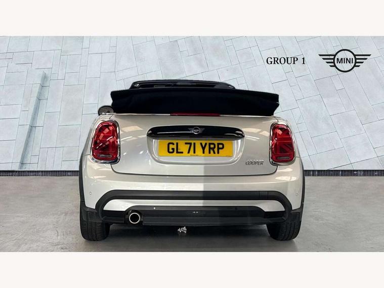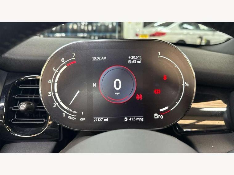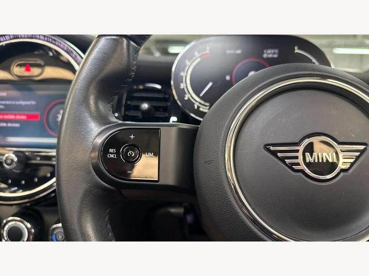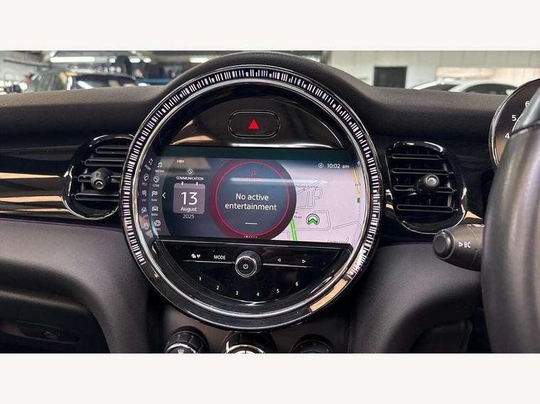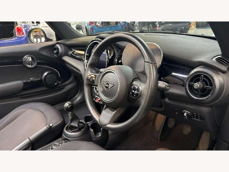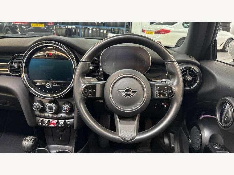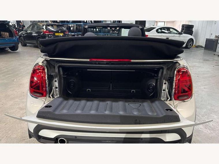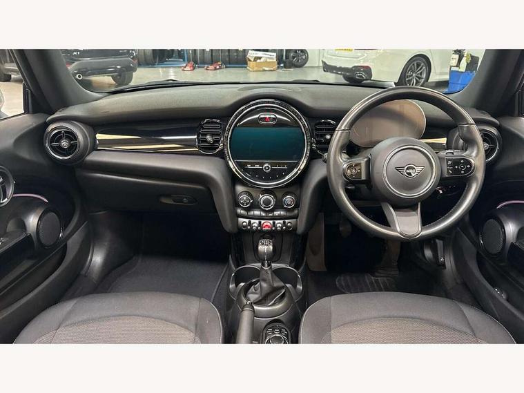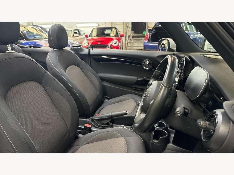 Apple CarPlay, Automatic start/stop function with brake energy recuperation, Compatible mobile phone bluetooth with audio streaming, Cruise control with brake assist, Electro-mechanical speed dependant steering assistance, Instrument cluster, Mini E-call, MINI TeleServices, On board computer, Rear park distance control, Service interval indicator, 6 Speed manual transmission including gear change indicator display, Double Vanos system, Fully variable valve control, High precision injection, Performance Control, 8.8" touchscreen with LED ring, FM tuner and DAB digital radio, Automatic headlight activation switch, Body colour fuel filler cap, Chrome border high gloss black slats radiator grille, Dynamic brake lights, Electric windows, Fully electric black softtop with integrated sunroof functionality, Heated rear window, Heated windscreen washer jets, LED headlight with closed ring and daytime driving lights, Left exhaust tailpipe with chrome finisher, Metal door sill strips with MINI imprint, Model logo Cooper on right of tailgate, Rain sensor window wipers, Rear boot, Rear fog lights, Rear LED lights with union jack design, Side scuttle panel with integrated indicator, Sun/heat protection glass, Third brake light, White indicator lenses, 12V Accessory socket in centre console, 2 seat bench in 2nd row, 4 lashing eyes in luggage compartment, 50/50 split folding rear seats, Chrome interior highlights, Colour line - Carbon black, Cupholders, Easy Load boot handles, Front and rear head restraints, Front and rear isofix with front passenger airbag deactivation, Glove compartment, Height and length steering column adjustment, Interior lighting with 12 different colours running across the dashboard, underneath door bezel illuminated laser engraved design on central display, Leather gearshift lever and handbrake gaiters, LED reading lights, vanity mirror lights, front foot well light and spotlight on front seats, Manual air conditioning, Mechanical seat adjustment, driver seat height adjust, forward/back and front seats backrest, Multifunction steering wheel, Single front passenger seat, Sports steering wheel, Storage compartments in doors, Sunvisors with vanity mirrors, Three spoke steering wheel with speed limiter and audio/communication controls, Velour floor mats, Convertible pack with comfort access - Mini Convertible, 3 point seatbelts on all four seats, 6 Airbags - front, side and seat belt tensioners, Active rollover protection, Anti-lock braking system (ABS), DSC - Dynamic Stability Control, Front and rear disc brakes, Hill start assist, Single tone fanfare horn, Tyre pressure monitoring system, Alarm system with tilt sensor, monitoring doors, bonnet interior and tailgate, Electronic vehicle immobiliser, Keyless Go, Piano black interior trim, Tool kit, Tyre repair kit,