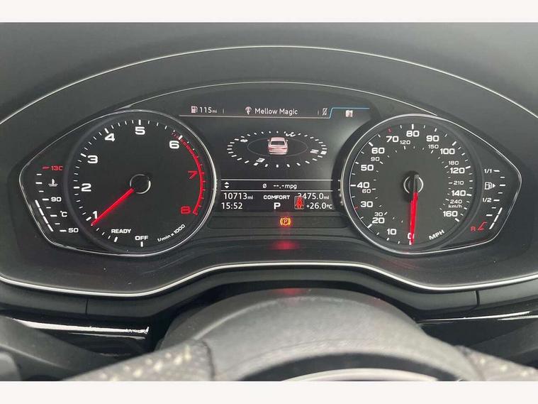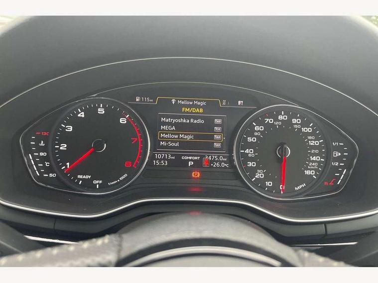 7" Colour driver information system, Audi connect, Audi drive select, Audi parking system plus with front and rear sensors, Audi smartphone interface, Automatic start-stop system with coasting functionality and efficiency programme, Bluetooth interface, Electric boot release, Electro-mechanical power steering, MMI Navigation, Service interval indicator, Voice control system, 2 x USB charging port with aux input socket, CD player, DAB Digital radio, Two SDXC card slots, Air inlet in matt aluminium with horizontal inlay, Aluminium roof frame and window trim, Auto dimming rear view mirror, Black grained rear grille, Body colour bumpers, Body coloured door mirrors, Chrome plated exhaust pipe, Electric adjustable heated door mirrors, Electric front windows, Front fog lights, High beam assistant, High gloss black B pillar trims and triangular rear door trim, Honeycomb side air inlet in titan black, Rain and light sensors, Rear diffuser in Twilight grey matt with honeycomb grille, S line badges on front wings, S Line body styling, S Line front and rear bumpers, S Line side skirts in black, S line sill plates, Twilight grey matt radiator grille in matt aluminium inlay, Windscreen with acoustic glazing, 40/20/40 split folding 2 seater rear seat bench with rear centre armrest, Adjustable steering column, Black headlining, Black perforated leather gearknob, Centre console with cupholders, Contrast stitching on seats, steering wheel and gear lever gaiter, Deluxe 3 zone electronic climate control, Front centre armrest, Front head restraints, Front/rear floor mats, Gearshift paddles, Illuminated door sill trim with S logo, ISOFIX child seat mounting and top tether, Jack and tool kit, Luggage compartment mat, Rear centre armrest, Rear headrests, S embossed logo on front sport seats, Stainless steel pedals and foot rest, Non Smokers pack, 6 airbags - Driver, front passenger, curtain and side airbags, Electromechanical parking brake, Electronic Stabilisation Control (ESC) including ABS, ASR and EDL, Front passenger airbag deactivation, Height adjustable front seatbelts, Hill hold function, Multi-Collision braking, Pop-up bonnet for pedestrian protection, Pre sense city, Seatbelt monitoring, Tyre pressure warning, Variable restraint system, Warning triangle and first aid kit, Anti theft alarm system, Anti theft wheel bolts, Immobiliser, Keyless Go, Remote central locking, Tyre repair kit,