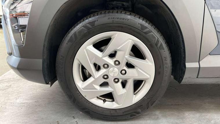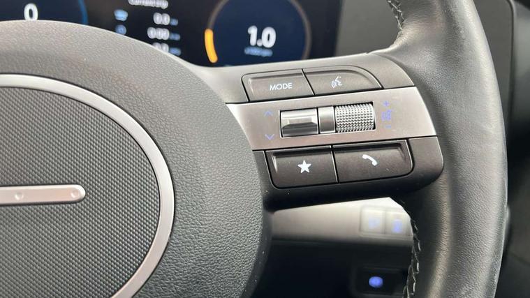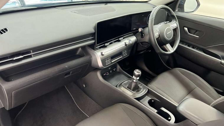 12.3" touchscreen centre console display satellite navigation with bluelink, live services and mapcare, Bluetooth connectivity with voice recognition, Cruise control, Digital clock, Driver status monitor (DSM), Driver supervision instrument cluster with 12.3" LCD display, eCall emergency call system, Feature on demand - Enabled, Forward collision avoidance assist (FCA 1.5) - Car, pededstrian, cycle and junction turning, Front parking sensor, Intelligent speed limit assist, Lane follow assist, Lane keep assist, Leading vehicle departure alert (LVDA), Parking system with rear camera and guidance system, PAS, Rear parking sensor, Roadside assistance, Smartphone integration compatible with Apple CarPlay and Android Auto, Windscreen washer fluid sensor and warning indicator, 2 front USB C and 2 rear USB C charging points, DAB Digital radio, Speakers - Front, rear and tweeters, Steering wheel audio, phone and cruise controls, Auto dimming rear view mirror, Automatic headlights with dusk sensor, Automatic windscreen wipers with rain sensor, Black painted wheel arch inserts, Body colour bumpers, Body colour exterior door handles, Body coloured door mirrors, Door mirror LED indicator lights, Electric front windows with anti-trap mechanism and one touch control, Electric rear windows, Electrically adjustable and heated door mirrors, Full LED MFR headlights, LED daytime running lights, LED upper and lower rear lights, Power folding door mirrors, Rear roof spoiler with integrated LED brake light, Rear side wing doors, Rear skid plate - silver, Rear wiper, Roof rails, Tinted glass in front and rear doors, Windscreen auto defog function, 12V power outlet in front console, 2 zone climate control, 3 seat bench in 2nd row, 60/40 split folding rear seat, Adjustable head restraints, Cloth upholstery, Driver and passenger front seat pockets, Driver's seat lumbar support, Driver/passenger manual seat height adjustment, Driver/passenger sunvisors and illuminated vanity mirrors, Floor mats, Height/reach adjustable steering column, Isofix rear child seat fastenings, Leather wrapped steering wheel and gear knob, LED centre interior light, LED front interior light, Luggage compartment LED lighting, Luggage shelf, Metal paint effect interior door handles, Parcel shelf, Rear centre armrest, Rear centre console with air vents, Single front passenger seat, Vertical adjustment rear head restraints, Trailer wiring package - Kona, Airbag - front, front side, curtain and centre front airbag, Anti-lock brake system (ABS), Childproof rear door locks, Downhill brake control, EBD + Brake Assist, Electric parking brake, Electronic stability control, Fasten seatbelt reminder, Fixed 3 point for second row centre passenger seatbelt, Front seatbelt pretensioners, Height adjustable front seatbelts, Hill start assist control (HAC), Passenger airbag deactivate switch, Rear seat alert, Traction control, Tyre pressure monitoring system, Alarm/immobiliser, Deadlocks, Folding key, Locking wheel nuts, Remote central locking, Smart key with keyless entry and engine start/stop button, Five year annual vehicle health checks, 17" Alloy wheels, Temporary mobility kit (TMK),