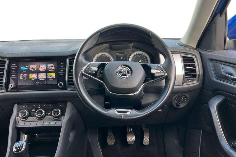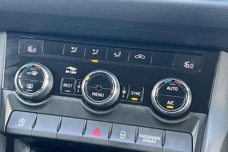 Bluetooth system, Colour multifunction trip computer, E-call, ECO Stop/start function, Exterior temperature indicator, Power assist steering, Smartlink wireless for apple carplay and wired for android auto, Speed limiter, Tailgate unlocking from outside, USB C Port x 2 in front centre console, 8 Speakers, DAB Digital radio, Aero front windscreen wipers with intermittent function, Aero rear window wiper, Auto dimming rear view mirror, Black wheel arch surrounds, Body colour bumpers, Body colour door mirrors and handles, Electric front and rear windows, Extended rear spoiler with finlets in gloss black, Front fog lights, Headlight washers, Heated rear window, Invisible tailpipe, LED rear fog light, LED third brake light in rear spoiler, Light assistant (coming/leaving home/tunnel light), Off-road style lower front bumper element, Privacy glass, Radiator grille frame in matt black with chrome strip, Rain and light sensors, Rear LED lights (high functionality) with welcome effect and dynamic indicators, Rear side wing doors, Safety reflectors on front and rear doors, Window control switches with black trim, 12V socket in boot, 2 rails with 2 hooks, 2 seat bench in 3rd row, 3 seat bench in 2nd row, 4 foldable roof handles with rear coat hooks, 60:40 foldable rear seat with sliding adjustment and backrest angle adjustment, Bottle holders in door panel in the 1.5 litre front and 1 litre rear, Cargo storage compartments, Chrome interior door handles, Cloth upholstery, Coat hooks on B pillar, Covered storage compartment on driver side, Dual zone automatic air conditioning with humidity sensor and control, Front centre armrest with storage compartment, cup holder and 12V socket, Gear shift lever with chrome frame and black gloss insert, Grey headlining, Grey stitching in front and rear armrests and door armrests + door inserts, Height adjustable front headrests, Height adjustable front seats, Illuminated and cooled glovebox, Illuminated luggage compartment, Isofix child seat fittings in outer rear seats with top tether, Manually adjustable steering column, Net programme in boot (1x horizontal Net, 2x vertical Nets), Overhead glasses storage compartment, Pollen filter, Rear centre armrest with cupholders, Single front passenger seat, Sliding trunk cover, Small Bags on the inner sides of the front backrests, Sunvisors with illuminated vanity mirrors, Three rear height adjustable headrests, Ticket holder on A Pillar, Umbrella in door panel, Variable boot floor, Auto door release and activation of warning lights in the event of an accident, Child locks on rear doors, Driver and front passenger airbag with knee airbag and front passenger airbag deactivation, Electronic parking brake with hill start assist, Emergency rear braking signal, ESC (incl. ABS+MSR+ASR+EDS+HBA+DSR+RBS+MKB), Front assist with autonomous emergency braking, Front side airbags with curtain airbags, Fuel cut off safety device, Height adjustable front 3 point seatbelts + pretensioners, Hill hold control, Rear disc brakes, Safety vest holder in door, Seat belt reminder for all seats, Three point rear seat belts, Two tone horn, Tyre pressure monitor, Alarm with interior monitoring and tilt sensor with safe function, Anti-theft wheel bolts, Immobiliser, Keyless entry and start system (KESSY), Remote central locking with 2 keys, Grey stitching in dashboard, Temporary spare wheel (space saver),