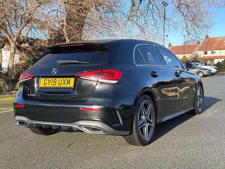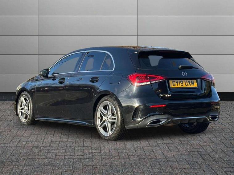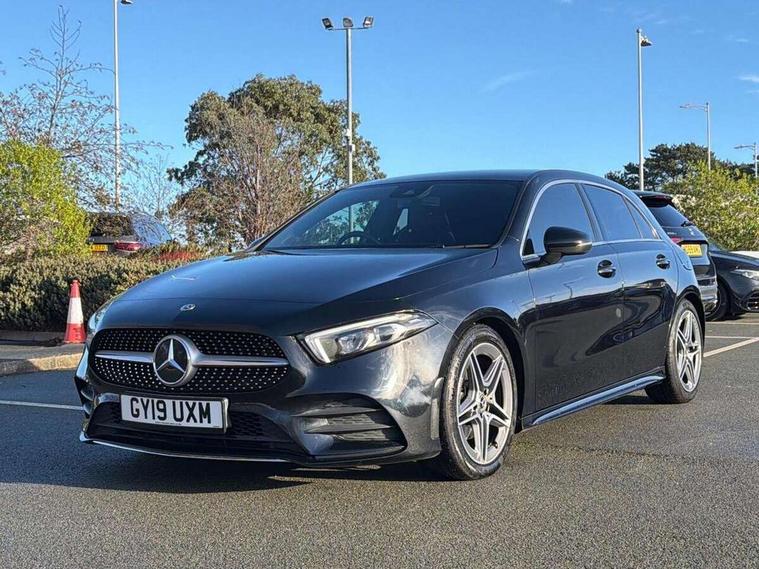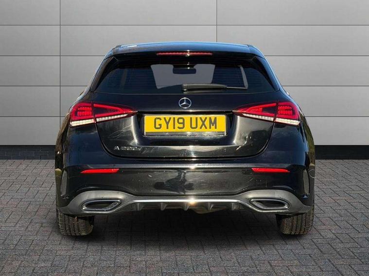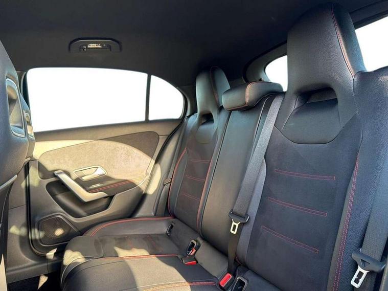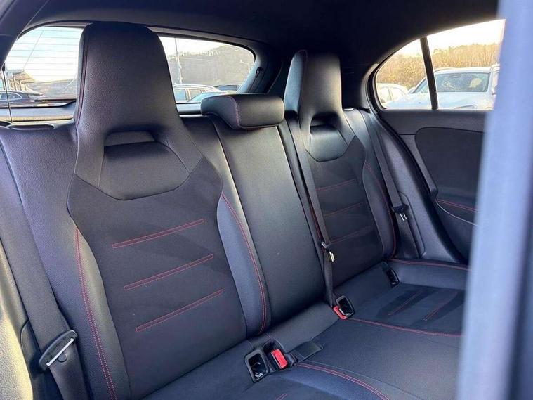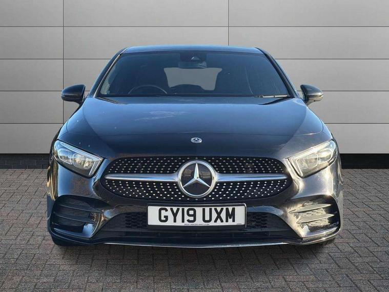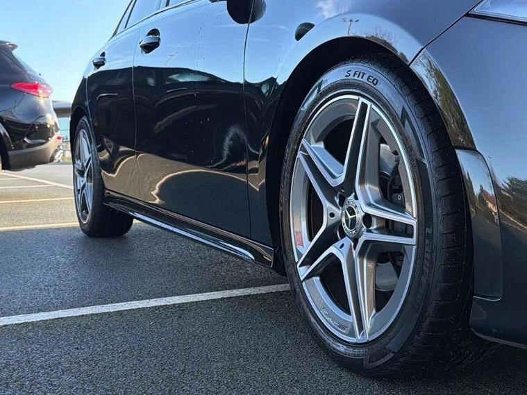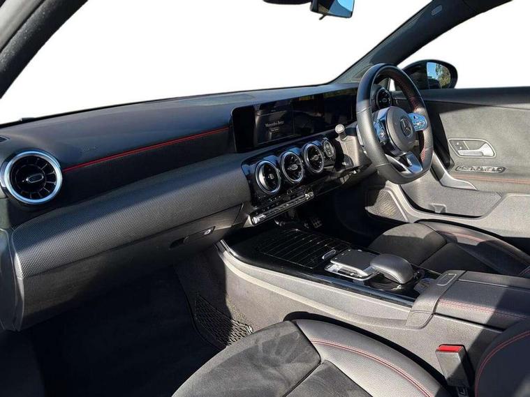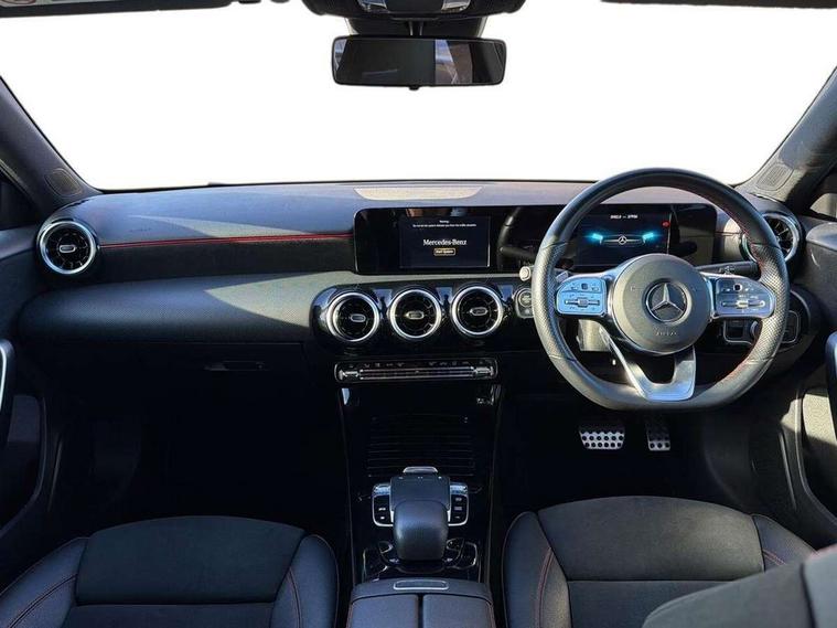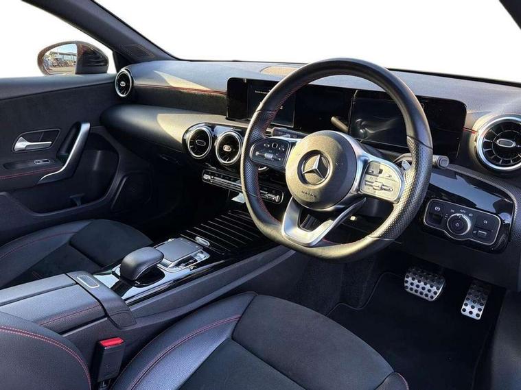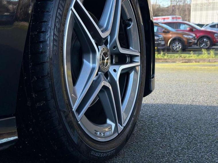 180 degree rear view camera with parking guidelines, 7" colour screen in instrument panel, 7" touchscreen media display, Active lane keep assist, Attention assist, Brake pad wear indicator warning light, Cruise control + speed limiter, Direct steering, Direction indicators with lane change function, DYNAMIC SELECT with a choice of driving modes (ECO, Comfort, Sport, Sport+ and Individual), Fluid level warning indicator for fuel, oil, coolant and washer fluid, Hard-disk navigation, Lamp failure indicator, Mercedes me connect including emergency call system, accident recovery, breakdown and maintenance management, Outside temperature gauge, Radio aerial integrated into roof spoiler, Service indicator (ASSYST), Speed sensitive power steering, Stop/start system, Trip computer, Voice activation, Lowered comfort suspension, DAB Digital radio, Dual bluetooth interface, 2 USB ports (type C), MBUX multimedia system with DAB digital radio and touchpad including satellite navigation, Adaptive brake lights, AMG front, rear apron and side skirts, Blue tinted glass, Body colour bumpers, Body colour door handles, Body colour side skirt, Body coloured door mirrors, Chrome beltline trim, Diamond radiator grille with chrome pins and silver louvre + chrome insert, Electric adjustable and heated door mirrors with integrated LED side indicators, Electric front windows, Electric rear windows, Exhaust system - Twin trapezoidal tailpipes in polished stainless steel, Headlamp assist automatic headlamp activation, Heated glass rear windscreen + timer control, LED high performance headlamps with integrated LED daytime running lights, LED tail lamp, LED third brake light, Rain sensor windscreen wipers, Rear fog lights, Rear wiper, 12V socket, 3 Spoke flat bottom leather multi function steering wheel with perforated leather in grip area, 40:20:40 split folding rear seats, Air vents surround and cruciform nozzle in silver chrome, AMG floor mats with red stitching, Artico man-made leather/Microfibre Dinamica upholstery with red contrast stitching, Auto Mercedes-Benz child seat recognition sensor, Black roof lining, Brushed stainless steel sports pedals with rubber studs, Controller on centre console with chrome surround, Cup holder and stowage compartment lighting, Front centre armrest with storage compartment, Front door sills with Mercedes Benz lettering, Front doors with ambient and signal light, Front footwell lights, Front reading lamps, Front seat backs luggage nets, Front seat cushion length adjustment, Front signal exit lamp, Front vanity lights, Gearshift paddles on steering wheel, Handle recess/closing light, Height/reach adjustable steering column, Illuminated glovebox, ISOFIX Child seat top tethers and anchor fixings, Load securing rings in luggage compartment, Luggage compartment cover, Manual height adjustable front seats, Oddments tray lighting, Rear head restraints, Rear Reading Lamps, Seat occupancy sensor for front passenger seat, Sports seats with integrated headrests, Storage compartment under load area floor, Sunvisors with illuminated vanity mirrors, Touchpad, Touchpad illumination, Twin front cupholders, Two zone thermotronic luxury automatic climate control, Seat comfort pack - A Class, 3 rear 3 point seatbelts, ABS with Brake Assist, Active bonnet, Active brake assist includes forward collision warning system with autonomous braking, Adaptive brake assist with hold function and hill start assist, Black seatbelts, Brake calipers with Mercedes-Benz lettering + perforated brake discs, Childproof locks manually operated for rear doors and electrically operated for rear power windows, Crash responsive emergency lighting, Driver and passenger head and side airbags, Drivers knee airbag, Dual stage driver/passenger airbags, Electronic parking brake, ESP curve dynamic assist, ESP with ASR, Front and rear seatbelt reminder, Tyre pressure monitoring system, Warning triangle and first aid kit, Window airbags, Alarm system/interior protection/immobiliser, Keyless Go, Remote central locking and crash sensor with emergency opening function, 18" AMG 5 twin spoke light alloy wheels in titanium grey with highsheen finish, Tirefit sealant kit,
