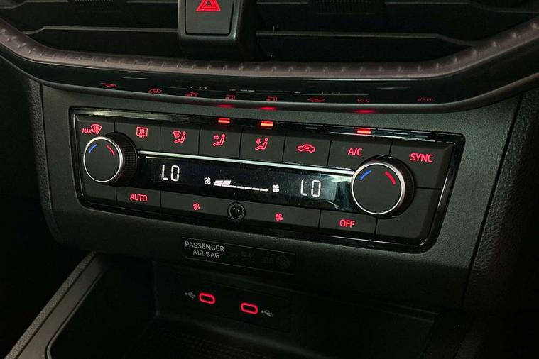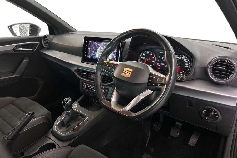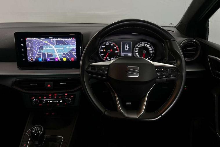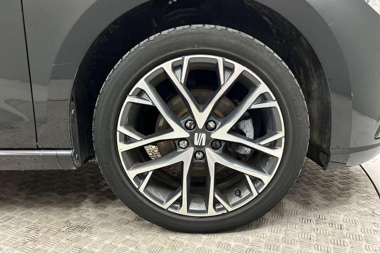 'Lights On' Reminder warning buzzer, 8" Digital cockpit, 9.2" touchscreen navigation system with type C USB socket, Voice control and DAB/AM/FM radio, Auto start and stop system, Bluetooth audio streaming with handsfree system, Digital clock, E-call, Full link smartphone integration with mirror link, wireless apple carplay, Google android auto + USB Type C cable for apple and android devices, Lane assist, Low fuel warning light, Outside temperature gauge, Power Steering, Rear parking sensor, Seat connect with safety, service, remote and online, SEAT logo boot release, Speed limiter, Trip computer, Comfort suspension, Auxiliary input socket, Radio/MP3 player, SD card slot, Steering wheel mounted controls, Anti theft roof antenna, Atom grey door mirrors, Auto dimming rear view mirror, Automatic rain sensing wipers, Body colour bumpers, Body colour door handles, Chrome window surround and upper grille surround, Dark tinted rear windows, Electric adjustable/heated/folding door mirrors, Electric front windows, Electric headlight adjustment, Electric rear windows, Front/rear fog lights, FULL LED automatic headlights with dynamic headlight range control, coming and leaving home, LED daytime running lights, LED tail lights, Rear side wing doors, Rear wiper, Third brake light, 3 seat bench in 2nd row, 60/40 split folding rear seat, Ambient interior lighting, Chrome detailing and black headlining, Comfort seats, Dual zone climate control with combination filter, Front centre armrest, Front courtesy lights, Front cupholders x 2, Front reading lights, Gear shift indicator, Glovebox, Height adjustable front and rear headrests (five), Height adjustable front seats, Height/reach adjust steering wheel, Illuminated air vent surrounds, Illuminated boot, Instrument lighting with brightness control, Isofix, Leather multifunction flat bottomed sports steering wheel, Microsuede cloth upholstery, Passenger sunvisor, Single front passenger seat, Storage pockets on back of front seats, Sunvisors with mirror and driver side card holder, 3 point seatbelts on all 3 rear seats, ABS, Active front headrests, Child locks on rear doors, Electronic stability control, Energy recovery system, Front assist forward collision warning and autonomous emergency braking, Front driver and passenger side airbags with curtain airbag and front passenger airbag deactivation, Hill hold control, Multi-Collision braking, Seat belt reminder for front and rear seats, Tiredness recognition system, Tyre pressure monitoring system, Electronic engine immobiliser, KESSY Keyless entry and go, Locking wheel bolts, Perimeter alarm and interior monitoring with backup horn and tow away protection, Remote central locking + deadlocks, 17" Dynamic machined alloy wheels in Nuclear grey,
