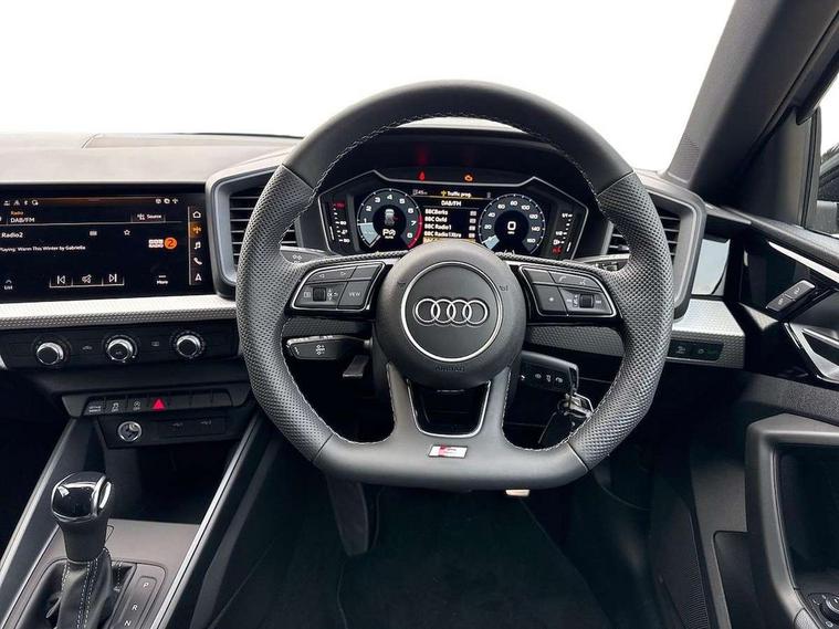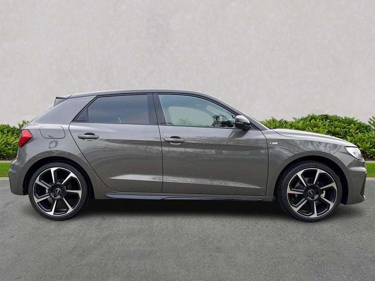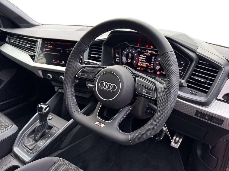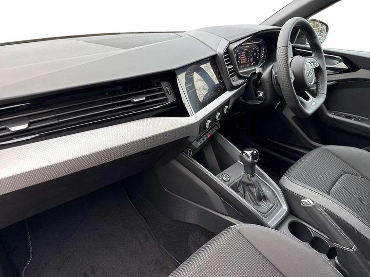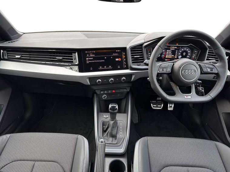 10.25" Digital instrument cluster display screen, Audi connect safety emergency and service including E-call, Audi smartphone interface, Automatic start/stop system, Bluetooth interface, Driver's information system, Electromechanical power steering, Lane departure warning system, Service interval indicator, Speed limiter, Voice control system, Washer fluid level indicator, Sports suspension, 1 x SDXC card reader, 1 x USB type C and 1 USB type A charging points, Audi music interface, Bluetooth audio streaming, DAB Digital radio, MMI radio plus with 8.8" colour MMI display screen and MMI touch, Adaptive brake lights, Auto dimming rear view mirror, Body colour side sill mouldings, Body coloured bumpers, Body coloured door mirrors, Door sills with aluminium inlays and S Line logo, Electric front and rear windows, Front side air inlets in grained matt black and C frame in titanium black, Heat insulating glass windscreen and side windows, Heated rear windscreen, LED headlights with LED rear lights + dynamic rear indicators, Matt aluminium silver tailpipe trim, Matt black radiator grille frame, Matt platinum grey in front spoiler clip and rear diffuser clip, Rain and light sensors, Rear fog lights, Rear wiper, S line badges on front wings, S line exterior bumpers, S line roof spoiler, Side air inlet frames titanium black, Side front spoiler lips in grained matt black, 12V socket in centre console with two cup holders, 3 rear seats, Black cloth headlining, Driver and passenger seat with manual height adjust with forward and backwards adjustment, Front and rear black floor mats with contrast stitching in fine silver, Front head restraints, Height and reach adjustable steering wheel, ISOFIX child seat mounting in front passenger and rear outer seats, Leather gear knob with aluminium trim, Leatherette handbrake grip, Luggage compartment light with front and rear reading lights, Lumbar adjustment for front seats, Rear head restraints, Split folding rear seats, Stainless steel pedals, 3x3 point rear seatbelts, Brake assist function, Driver and front passenger airbag with front side and head airbags, Electronic Stability Control including ABS, EBD, ASR and EDL, Front and rear seatbelt reminder, Front passenger airbag deactivation switch, Hill hold assist, Seatbelt height adjustment for front seats, Seatbelt monitoring, Tyre pressure warning light, Warning triangle and first aid kit, Anti theft alarm, Anti theft wheel bolts and loose wheel warning, Audi pre-sense front with pedestrain and cyclist recognition, Immobiliser, Remote central locking with 2 remote folding keys, Aluminium trim for control switches, air vents and digital instrument cluster, Silver grey inlays polygon structure in diamond paint finish, Structured grey accent areas including air vents, door handle recesses and centre console in quartz paint finish,