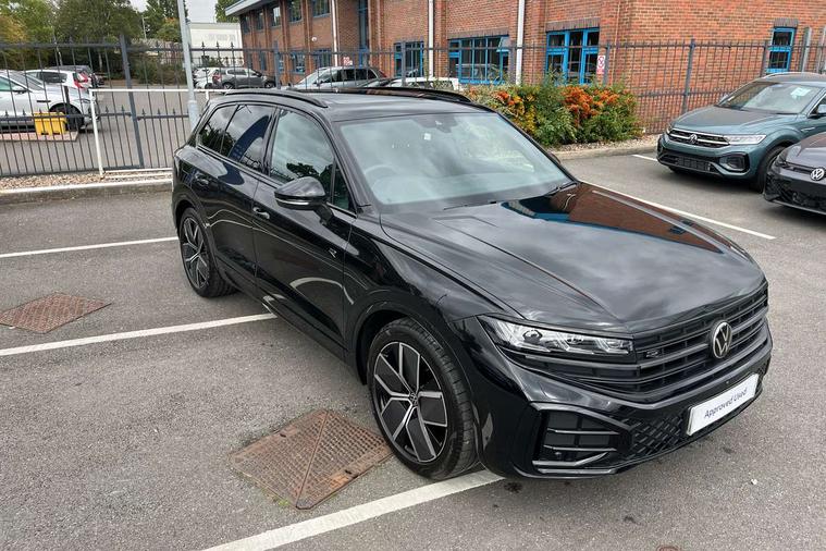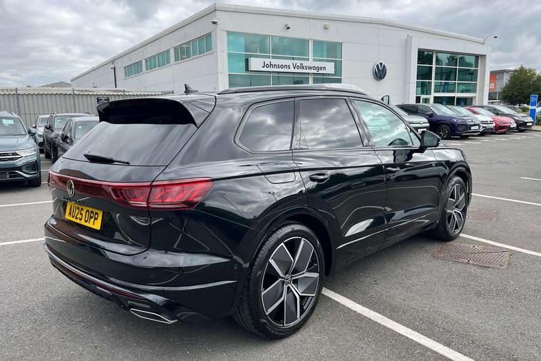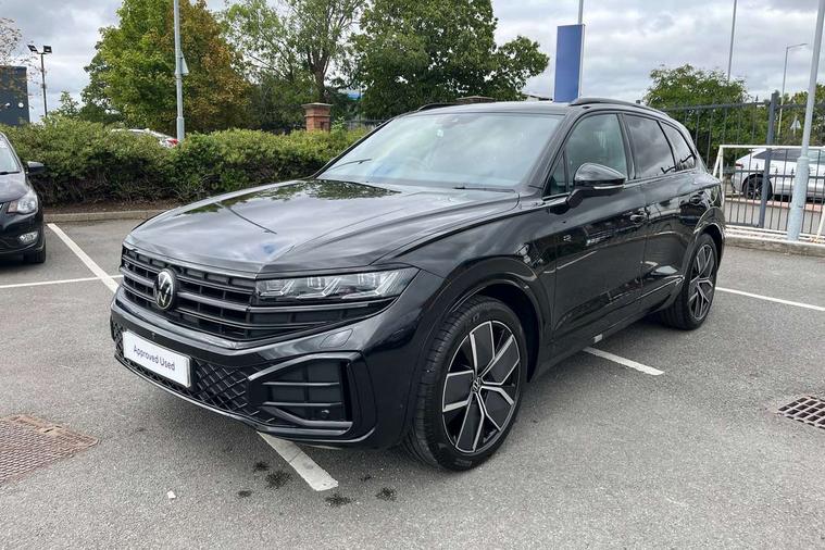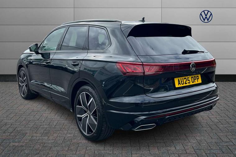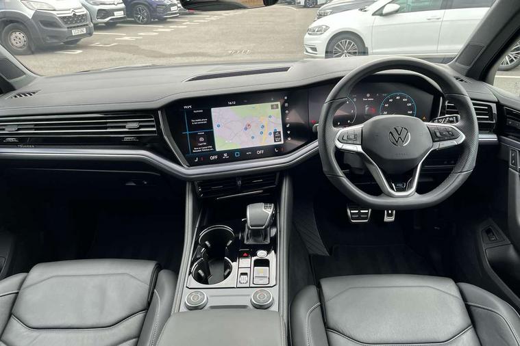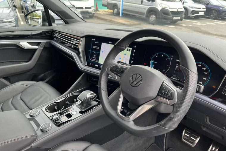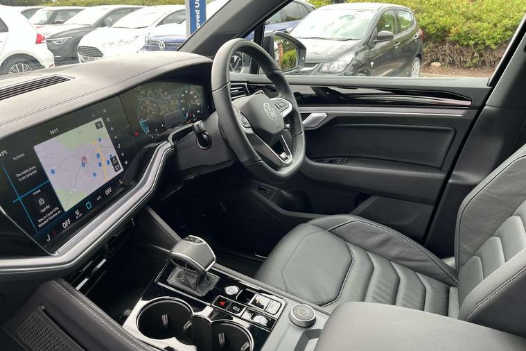 15" Screen Top infotainment system Premium (MIB3), Adaptive cruise control, Advanced driver attention and drowsiness monitor, Driver profile selection, Dynamic road sign display, E-Sim card for online connectivity, eCall emergency system, Innovision cockpit, Intelligent park assist, Mobile phone interface with inductive charging, Multi-colour Active Info display, Park Assist - Sensor controlled steering aid to assist parallel or bay parking, PAS, Warning signal and warning light for front and rear seatbelts not fastened, Wireless app connect, Adaptive chassis control, DAB Digital radio, Diversity antenna for AM/ FM reception, We Connect and We Connect Plus functionality, Automatic coming/leaving home lighting function, Automatic headlights, Black door mirrors, Black style comfort bumpers, Dynamic headlight range control with dynamic cornering light, Electric front tilt/slide panoramic sunroof and fixed rear sunroof, Electrically power adjustable, heated, folding, auto dimming, front passenger exterior door mirror lowering function, External USB type C socket and charging sockets, Gloss black roof rails, HD LED Matrix beam plus digital headlight projection with variable light distribution, Headlight washers, Highway light, LED 3rd brake light, LED daytime running lights, LED rear combination lamp with variable lighting functions and special styling, Poor weather light, Rain sensor, Rear exhaust tailpipe, Rear fog light with back up light on both sides, Rear light bar and illuminated logo, Rear side wing doors, Rear wiper, Stainless steel door sill protection, 12V socket in centre console, 3 rear headrests, 3 seat bench in 2nd row, 4 zone climate control, Airbag label on sun visor and B-pillar, Brushed stainless steel pedals, Double sun visors with illuminated vanity mirrors, Front + rear carpet mats, Front centre armrest, Leather wrapped multifunction sports steering wheel, heated, with touch control and shift paddles, Mechanical rear seat release, Power adjustable lumbar support in front, Power seats in front, right side with memory features and seat cushion depth adjustment, Rear seat backrest and split folding with center armrest, Single front passenger seat, Memory pack plus - Touareg, 3 point seatbelts, outer rear with ECE lable, ABS, Child locks on rear doors, Curtain airbags, Driver and front passenger safety-optimised head restraints, Driver/Front Passenger airbags, Extended pedestrian protection measures, Front assist, Front seat side impact airbags, Generative braking with start and stop system, Height adjustable 3 point front seatbelts with pre tensioners, Passenger airbag deactivate switch, Three 3 point rear seatbelts, Two tone horn, Tyre pressure loss indicator, Warning triangle and first aid kit, Alarm system with interior protection, Easy open and close sensor controlled luggage compartment opening and closing with remote unlocking, Keyless Access Keyless locking and starting system with SAFELOCK, Aluminium decorative inserts, Black decorative trims, Gloss black decorative inserts in centre console, Tool kit,