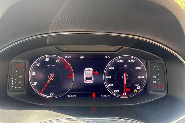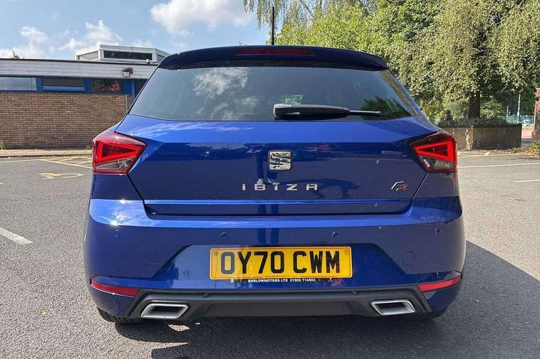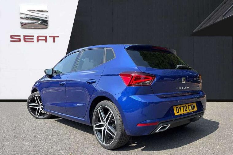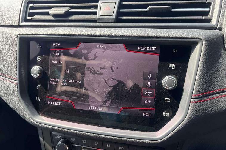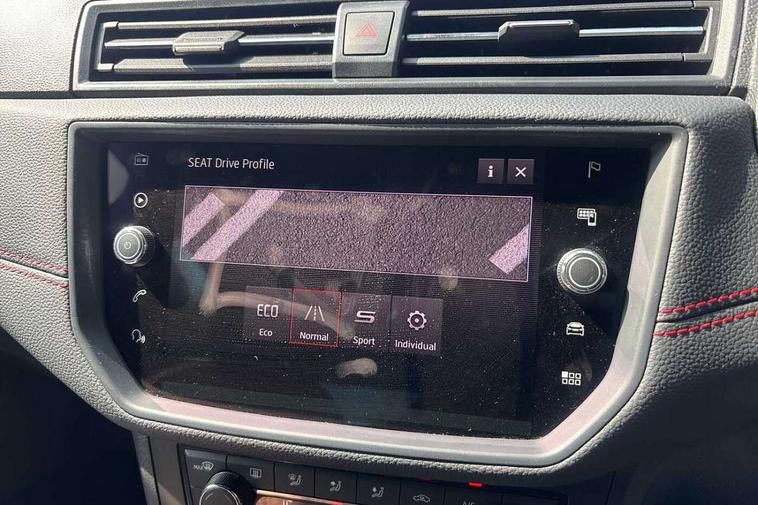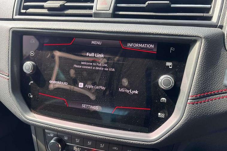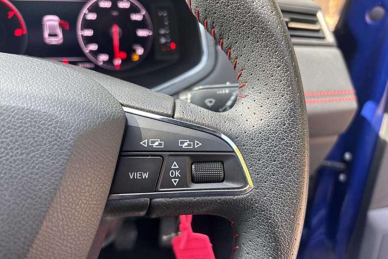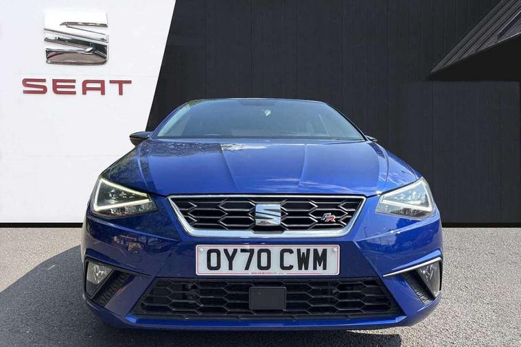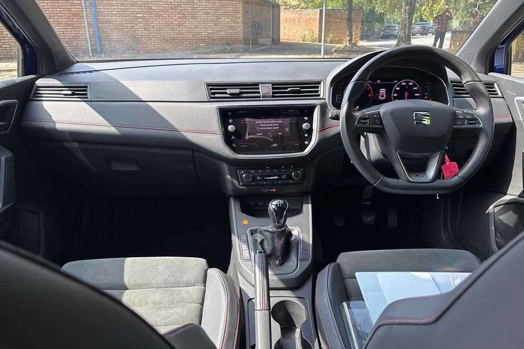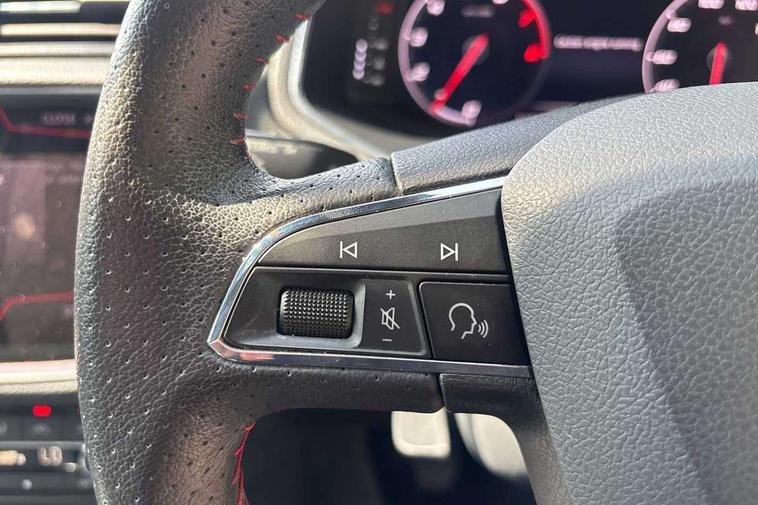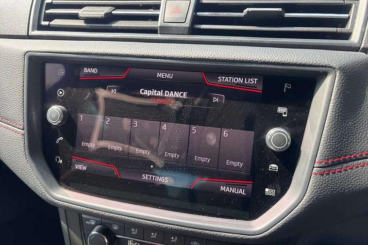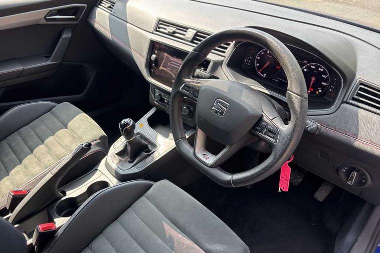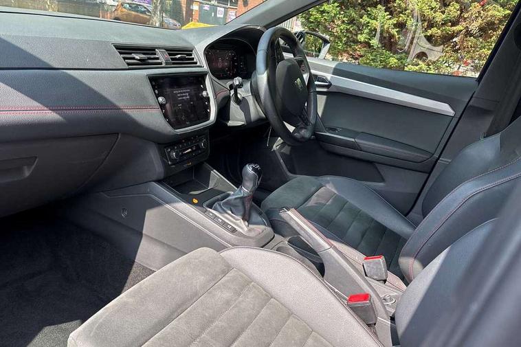 'Lights On' Reminder warning buzzer, Bluetooth Handsfree Phone Connection, Cruise control, Digital clock, Digital cockpit, Full Link Smartphone Integration with Mirror Link, Apple Car Play, Google Android Auto, Low fuel warning light, Outside temperature gauge, Power Steering, Satellite navigation system with 3D mapping, 8" touch screen, voice control and additional USB port, SEAT Drive profile, SEAT logo boot release, Trip computer, Sports suspension, 6 speakers, Auxiliary input socket, CD player, Digital Audio Broadcast (DAB) Tuner, Radio/MP3 player, SD card slot, SEAT USB media cable, Steering wheel mounted controls, USB port, Anti theft roof antenna, Auto dimming rear view mirror, Automatic headlights, Automatic rain sensing wipers, Body colour bumpers, Body colour door handles, Brilliant black door mirrors, Chrome front grille frame, Chrome grille, Coming/leaving home lighting function, Cornering front fog lights, Dark tinted rear windows, Electric folding door mirrors, Electric front windows, Electric headlight adjustment, Electrically adjustable and heated door mirrors, Exclusive FR rear bumper, Full LED headlights, LED daytime running lights, LED tail lights, Rear fog lights, Twin exhaust pipes, 3 rear headrests, 60/40 split folding rear seat, Door and steering wheel ice metal decorative inserts, Driver's sunvisor with ticket holder/vanity mirror, Dual zone climate control, Dust/pollen filter, Flat bottomed perforated leather steering wheel with red stitching and FR logo, Front courtesy lights, Front cupholders x 2, Front reading lights, Gear shift indicator, Glovebox, Height adjustable driver's seat, Height adjustable front/rear head restraints, Height adjustable passenger seat, Height/reach adjust steering wheel, Illuminated boot, Instrument lighting with brightness control, Leather handbrake, Microsuede cloth upholstery, Multi-colour ambient interior lighting, Passenger sunvisor, Rear top tether child seat ISOFIX attachment, Sports seats, Full LED headlight pack - Ibiza, 3 point seatbelts on all 3 rear seats, ABS, Active front headrests, Child locks on rear doors, Curtain airbags, Driver/Front Passenger airbags, ESP+EBA, Front assist (AEB), Front passenger airbag deactivation, Front side airbags, Hill hold control, Multi-Collision braking, Seatbelt warning, Tiredness recognition system, Tyre pressure monitoring system, Electronic engine immobiliser, Locking wheel bolts, Remote central locking + deadlocks, Volumetric alarm with back up horn, Leather dashboard, 18" Performance machined bi-colour alloy wheels,