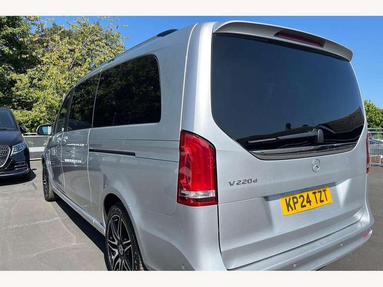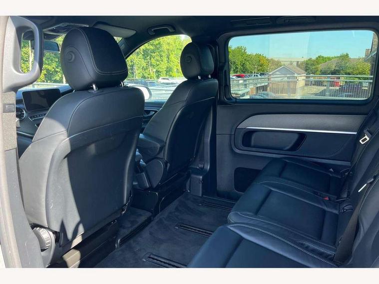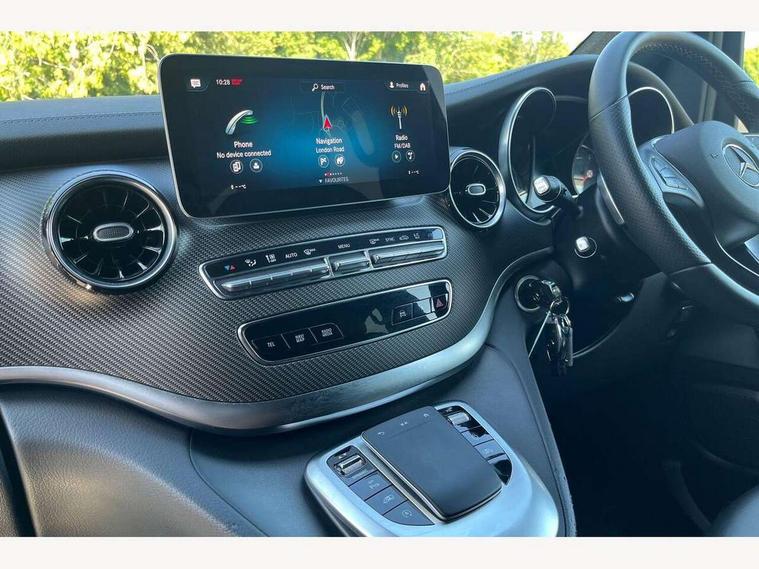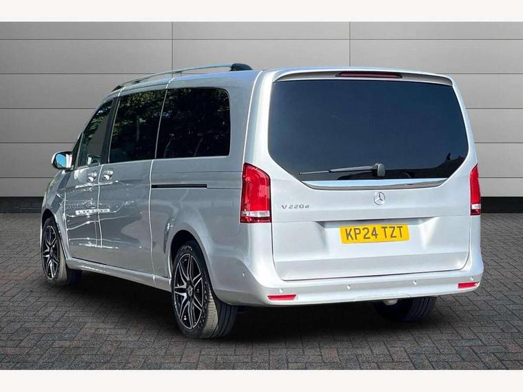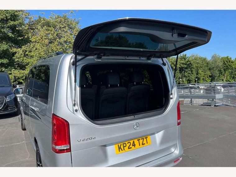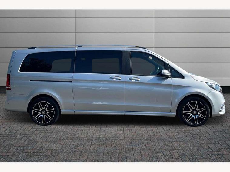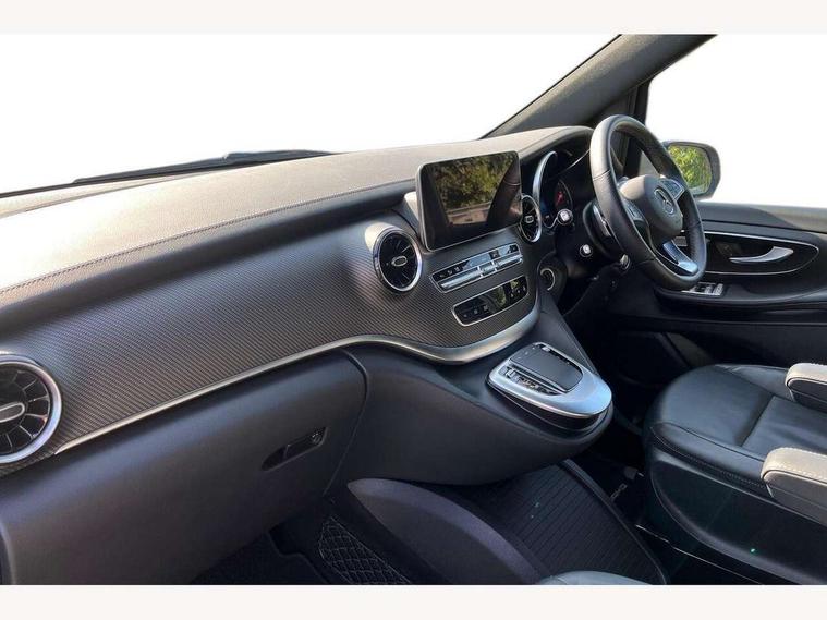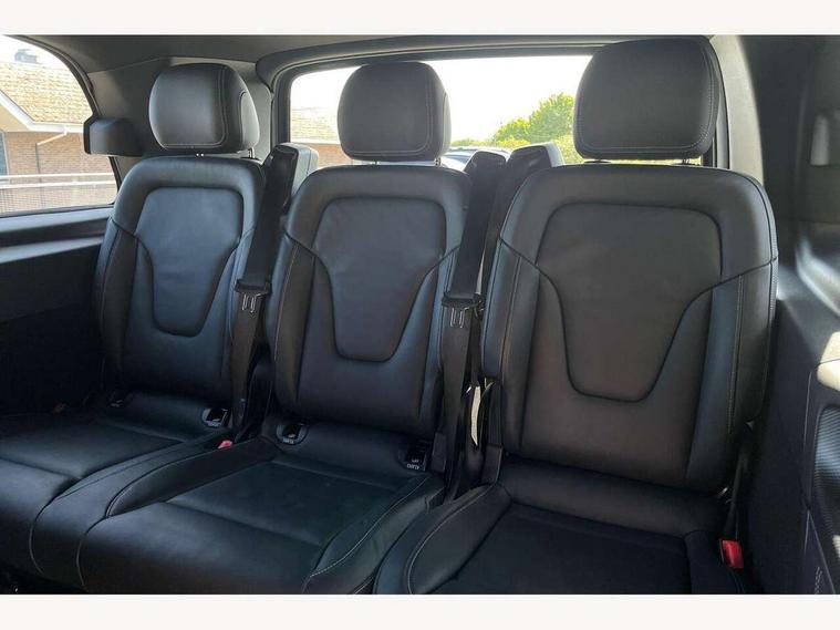 Active parking assist, Agility select with a choice of driving modes (Comfort, ECO, Sport, Individual), Attention assist, Brake wear warning display, Cruise control with speedtronic variable speed limiter, Direct steer speed sensitive steering, Easy-pack tailgate - Powered opening/closing automatically, ECO start/stop function, Instrument cluster with 5.5 inch colour display trip computer, MBUX multimedia nav with 10.25" touchscreen, Hey Mercedes intelligent voice control, 2 USB-C ports and mobile connectivity for up to 15 devices, MBUX personalised vehicle profiles, MBUX touchpad, Mercedes me connect including emergency call system, accident recovery, breakdown and maintenance management, Outside temperature display, Service indicator (ASSYST), Side wind assist system, Status display for rear seat belts in instrument cluster, 25 litres large AdBlue tank, 9G TRONIC 9 speed automatic transmission, Agility control comfort suspension, Diesel particulate filter, Audio 20 CD with integrated media interface, DAB Digital radio, Integrated radio aerial, iPod/iPhone + Bluetooth interface with handsfree function, Two USB ports and one SD Card slot in centre console, Adaptive brake lights, AMG bodystyling front apron and rear roof spoiler, AMG bodystyling front apron and rear spoiler, AMG bodystyling rear apron, AMG bodystyling side skirts, Anodised roof rails, Automated headlamp assist, Automatically dimming exterior driver's mirror, Black tinted rear windows, Body colour bumpers, Body colour door mirrors, Chrome pins diamond radiator grille with integrated stars, Chrome trim to front bumper, Electric folding door mirrors + auto dimming rear view mirror, Electric front windows, one touch / obstruction sensor, Electric sliding door in both side, Electric ventilation windows in passenger compartment, Heated windscreen washers, Illuminated front door sill panels with Mercedes-Benz lettering, LED intelligent light system including integral LED daytime running lamps, LED tail lamps/brake lamps and indicators, Logo projection, Metallic paint, Privacy glass, Rain sensing windscreen wipers, Rear wiper, Split tailgate in opening rear window with chrome handle, 12V socket in boot/load compartment and rear passenger compartment, 3 colours ambient lighting, 3 seat bench in 2nd row, 3 seat bench in 3rd row, 3 spoke nappa leather steering wheel, Adjustable front seat head restraints, ARTICO leather upper dashboard with contrast stitching, Carpet floor covering in passenger compartment, Comfort driver and front passenger seats including armrest, Driver + front passenger lumbar support, Electric air heater system - 1.2 kW output, Extended seat rails, Footwell lighting with reading light and illuminated handle in rear compartment, Height/reach adjustable steering column, Lockable glove compartment, Luxury centre console with retractable cover + two cup holder + 12V socket + multimedia box, Multifunction steering wheel with audio controls and onboard settings, Nappa leather upholstery, Rear head restraints, Seat occupancy sensor for front passenger seat, Single front passenger seat, Sports pedals in brushed stainless steel with rubber studs, Stowage nets behind individual seats, Sunvisors with illuminated vanity mirrors, Thermatic 3 zone automatic climate control, Three stage heated front seats, Seat comfort pack - V Class, Towing pack - V Class, Urban Guard protection pack - V Class, 3 point seatbelts on all seats, Active brake assist, Adaptive brake system with HOLD function and brake drying in the wet, Airbags - sidebag for driver and front passenger with combined thorax/pelvis bag, Airbags - windowbag for driver and front passenger, Anti-lock braking system (ABS), Electric parking brake, Electronic Stability Programme, Hill start assist, Perforated front brake discs and brake calipers with Mercedes-Benz lettering, Rear child proof door locks, Tyre pressure monitoring system, Warning triangle and first aid kit, Central locking with interior switch, Chrome surround electric key, Carbon look trim, Chrome air vent surrounds, 19" AMG 7 twin spoke alloy wheels, Space saver spare wheel with jack, Summer tyres,