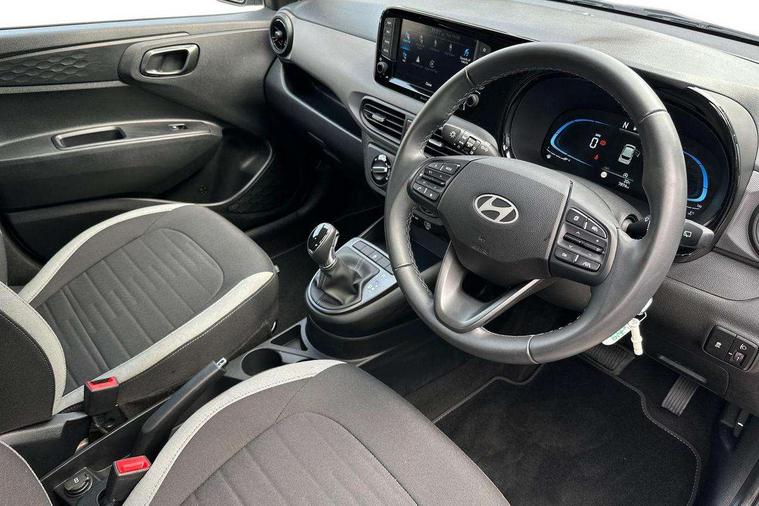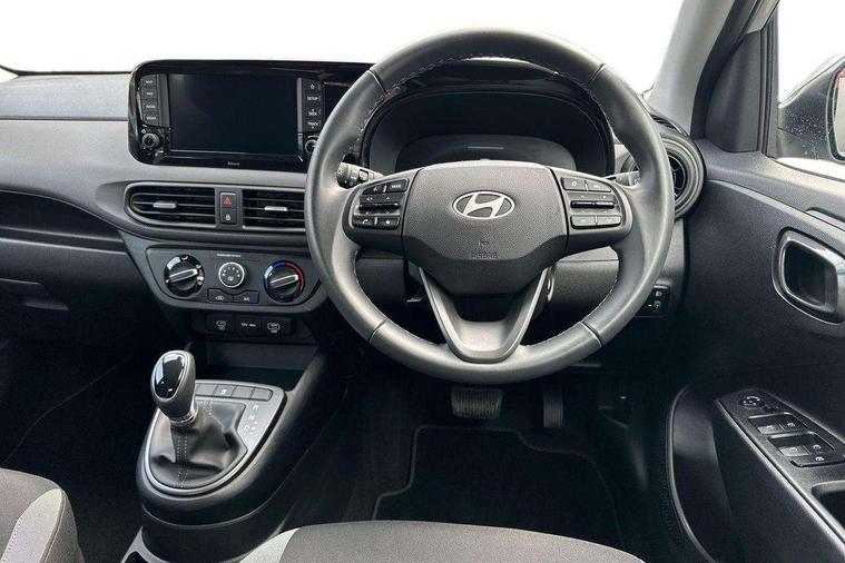 12.5" touchscreen centre console display audio with navigation, mapcare and live services, Apple car play/Android Auto, Bluelink mobile remote connectivity, Bluetooth connectivity with voice recognition, Cruise control, Driver attention alert system, eCall emergency call system, Forward Collision-Avoidance Assist (FCA) - Pedestrian/Cyclist, Front USB-C charging and USB-A data, Full-width 4.2" LCD instrument cluster, Intelligent speed limit assist, Lane departure warning system with lane keep assist - LKAS, Lane follow assist, PAS, Rear parking sensors, Rear view camera with guidelines, Roadside assistance, Start/Stop function, Tailgate, Trip computer, 2 front/2 rear speakers, Rear USB-C device charger, Steering wheel audio, phone and cruise controls, 1 speed non intermittent rear windscreen wiper, Black finish on B pillars, Body colour door handles, Body coloured bumpers, Body coloured door mirrors, Electric front windows, Electric rear windows, Electrically adjustable and heated door mirrors, Flat metal emblem, Front grille in matte black, Front intermittent wipers, Halogen daytime running lights, Halogen headlights, Headlights inner with Black Blade design, Heated rear window, High beam assist, Indicator light on door mirrors, Rear roof spoiler with integrated LED brake light, Rear side wing doors, 12v power outlet - front, 3 seat bench in 2nd row, 60/40 split folding flat to floor rear seats, Air conditioning, Auto light control, Bottle holders in front/rear doors + front centre console, Cabin and luggage compartment interior lighting, Cloth upholstery, Driver + passenger vanity mirrors, Driver's seat height adjustment, Driver/passenger sunvisors with ticket holders, Floor mats, Front door pockets, Front Head Restraints - Vertical and Horizontal Adjustment, Glove compartment, Height adjustable steering column, Isofix child seat preparation, Leather multifunction steering wheel, Rear door pockets, Single front passenger seat, Vertical adjustment rear head restraints, 3x3 point rear seatbelts, Airbags - front, front side and curtain airbags, Anti-lock brake system (ABS), Autonomous emergency braking (AEB) with forward collision warning system, Brake assist function, Childproof rear door locks, Electronic stability control, Front and rear seatbelt reminder, Front seatbelt pretensioners, Hill start assist control (HAC), Passenger airbag deactivate switch, Traction control, Tyre pressure monitoring system, Immobiliser, Perimeter alarm, Rear occupant alert, Remote central locking, Second remote key, Speed sensitive auto door locking, 15" Alloy wheels, Tyre repair kit,