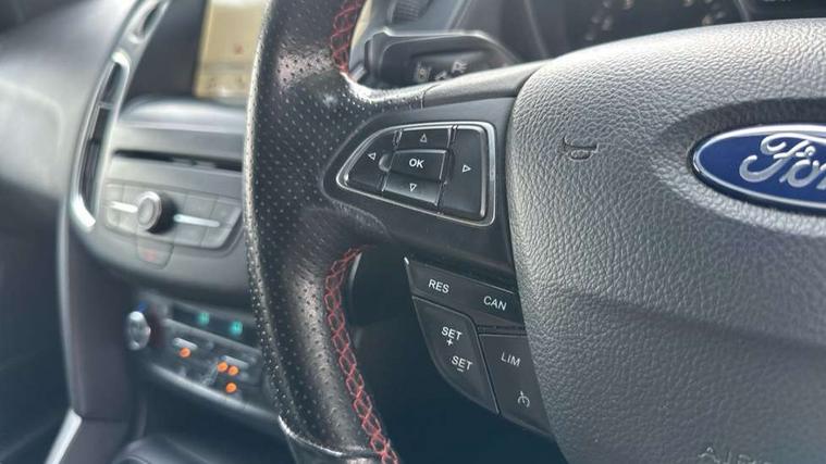 Cruise control + speed limiter, Digital clock, Easy fuel capless refuelling system, Eco mode, Electric boot release, PAS, SYNC 3 nav system with DAB radio/CD, 8" colour touch screen, bluetooth, emergency assistance, advanced voice control and 6 speakers, TFT cluster screen, Trip computer, Sports suspension, Aux input, Steering column with mounted audio controls, USB connection, 'Quickclear' heated windscreen/heated washer jets, Auto dimming rear view mirror, Automatic headlights, Automatic rain sensing wipers, Black honeycomb front grille, Black roof rails, Body colour bumpers, Body colour door handles, Body colour door mirrors, Body colour side skirt, Body styling kit, Chrome finish on upper door line, Electric adjustable heated door mirrors, Electric front and rear windows + one touch + global open/closing, Front fog lights, Front variable intermittent wipers with electric wash, Heated rear window, LED daytime running lights, Rear LED lights, Rear privacy glass, Tailgate wash/wipe, 3 spoke leather multifunction sports steering wheel with red stitching, 60/40 split back and cushion rear seats with 2 height adjustable headrests, Black headlining, Centre console with sliding front armrest, Cloth upholstery, Driver's seat manual height adjust, Driver's seat with adjustable lumbar support, Dual electronic automatic temperature control air conditioning - CFC-free, Floor mats with red stitching, Height adjustable front headrests, Isofix child seat preparation, Reach + rake adjustable steering column, Red stitching on handbrake lever, Sport leather gear knob, Sports pedals, Sports style front seats, Stainless Steel Scuff Plates, Tonneau cover, ABS+Electronic Brake force Distribution, Driver airbag, ESP with traction control + emergency brake assist, Front inertia reel height adjustable seatbelts with pre-tensioners, Front passenger airbag, Front side airbags, Hill start assist, Red brake calipers, Side curtain airbags, Three rear inertia reel lap/diagonal seatbelts, Torque vectoring brake, Tyre pressure monitoring system, Immobiliser-Passive Anti-Theft System (PATS), Keyless Start, MyKey system, Remote central double locking, Thatcham Cat.1 alarm, Contrast stitching - Red, 18" 5 spoke rock metallic alloy wheels, Mini steel spare wheel,