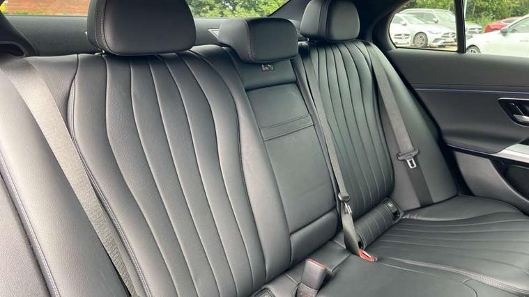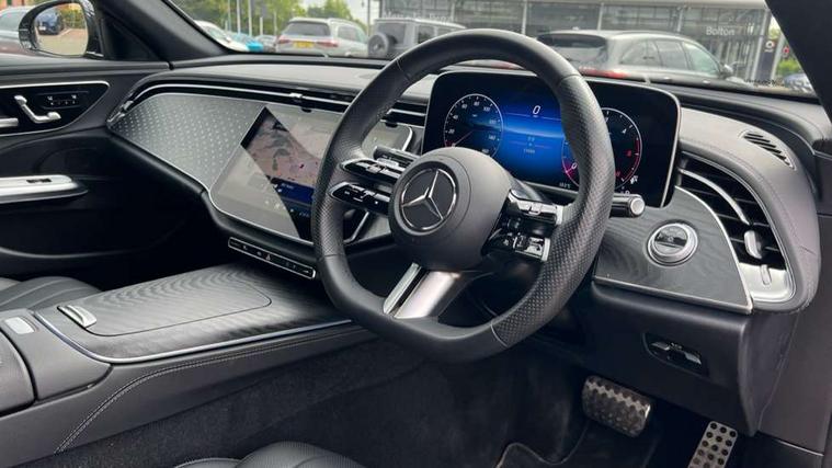 12.3" Driver display screen, 14.4" central media display, 5G Communications module, Attention assist, Augmented reality navigation, Blind spot assist, Brake wear warning display, Direct steer speed sensitive steering, ECO start/stop function, Emergency call assistance, Evasive manoeuvre support, Fluorescent jacket for driver, Hard disc navigation, Head up Display, MBUX navigation premium, MBUX voice control, Mercedes connect me, Outside temperature display, Preinstallation for live traffic, Remote Services Premium, Service indicator (ASSYST), Status display for rear seat belts in instrument cluster, Trip computer in multifunction display showing current fuel consumption, Wireless charging, Wireless smartphone integration with Apple CarPlay and Android auto, 48V Mild hybrid technology, 66 litre fuel tank, 9G TRONIC automatic transmission, Agility control suspension with selective damping and lowering, Bluetec emission control, Diesel particulate filter, Integrated starter generator Gen 2, Sporty engine sound system, DAB Digital radio, Preinstallation for MBUX Entertainment Plus, 3rd brake light, Adaptive brake lights, Aerial integrated in rear window, AMG bodystyling, Auto dimming driver's door mirror, Auto dimming rear view mirror, Black radiator grille, Digital air vent control, Electric folding door mirrors, Electric windows with one touch opening/closing and obstruction sensors, Electrically adjustable and heated door mirrors, Heat insulating privacy glass, LED daytime running lights, LED digital light with adaptive highbeam assist plus, Pre-installation for roof rail systems, Rear boot, Rear side wing doors, Surround lighting with logo projection, 3 seat bench in 2nd row, 4 way lumbar support, Ambient lighting, AMG brushed stainless steel sports pedals with rubber studs, AMG floor mats, AMG line interior, Automatic child seat recognition sensor, Central stowage compartment with USB socket for use with Android Auto and Apple CarPlay, Comfort seats, Courtesy lights in rear grab handles with reading light functionality, Folding rear seat backrest, Front centre armrest with stowage compartment, Glove compartment - lockable, air conditioned and illuminated, Head restraints for driver and front passenger (four-way adjustability) and in rear (two-way), Heated front seats, Illuminated door sills, Multifunction sports steering wheel in nappa leather, Roof liner in black fabric, Seat occupancy sensor for front passenger seat, Single front passenger seat, Sunvisors with illuminated vanity mirrors, Thermotronic 4 zone climate control, Leather package - E Class, Memory package - E Class, Parking package with 360 degree camera - E Class, USB plus package - E Class, 3x3 point rear seatbelts, Active bonnet pedestrian safety measure which detects an impact and raises bonnet, Adaptive brake system with HOLD function and brake drying in the wet, Anti-lock braking system (ABS), Automatic front passenger airbag deactivation, Central airbag, Childproof locks manually operated for rear doors and electrically operated for rear power windows, Driver and adaptive front passenger airbags, Electronic parking brake, Electronic Stability Programme, Hill start assist, ISOFIX child seat attachment points two outer rear seats, Knee airbags, Pedestrian protection, Pre-Safe anticipatory safety system, Tyre pressure monitoring system, Warning triangle and first aid kit, Window airbags, Alarm system with interior monitoring, Central locking with interior switch, automatic locking and crash sensor with emergency opening function, Dashcam, Digital vehicle key, Guard 360 degree vehicle protection plus, Increased anti theft protection, Keyless Go, Urban guard vehicle protection plus, Open pore black ash backlit wood trim with laser cut Mercedes Benz star pattern and open pore black ash wood centre console, 19" AMG 5 twin spoke alloy wheels, Summer tyres, Tirefit,